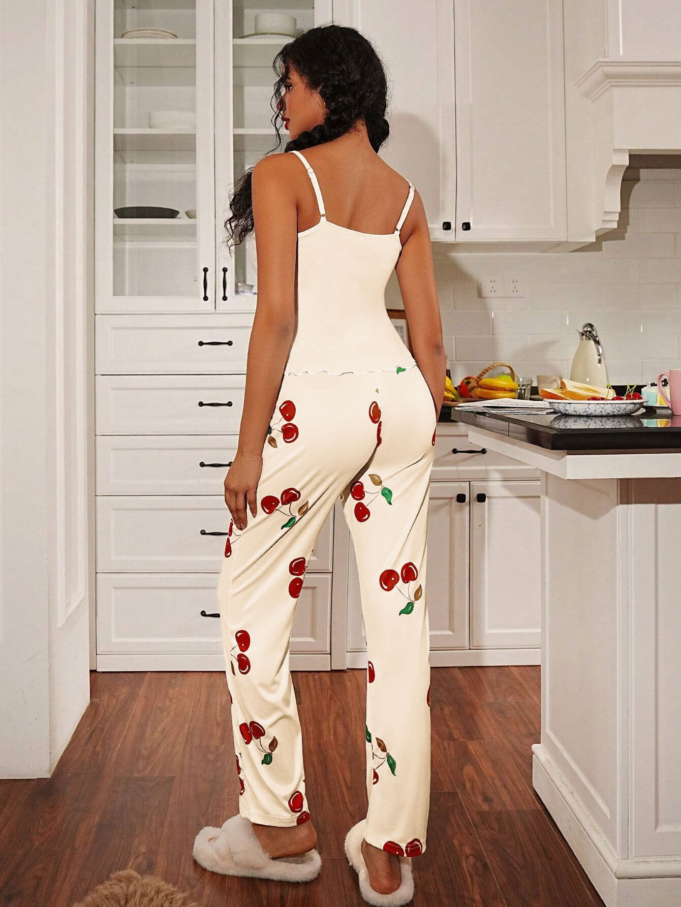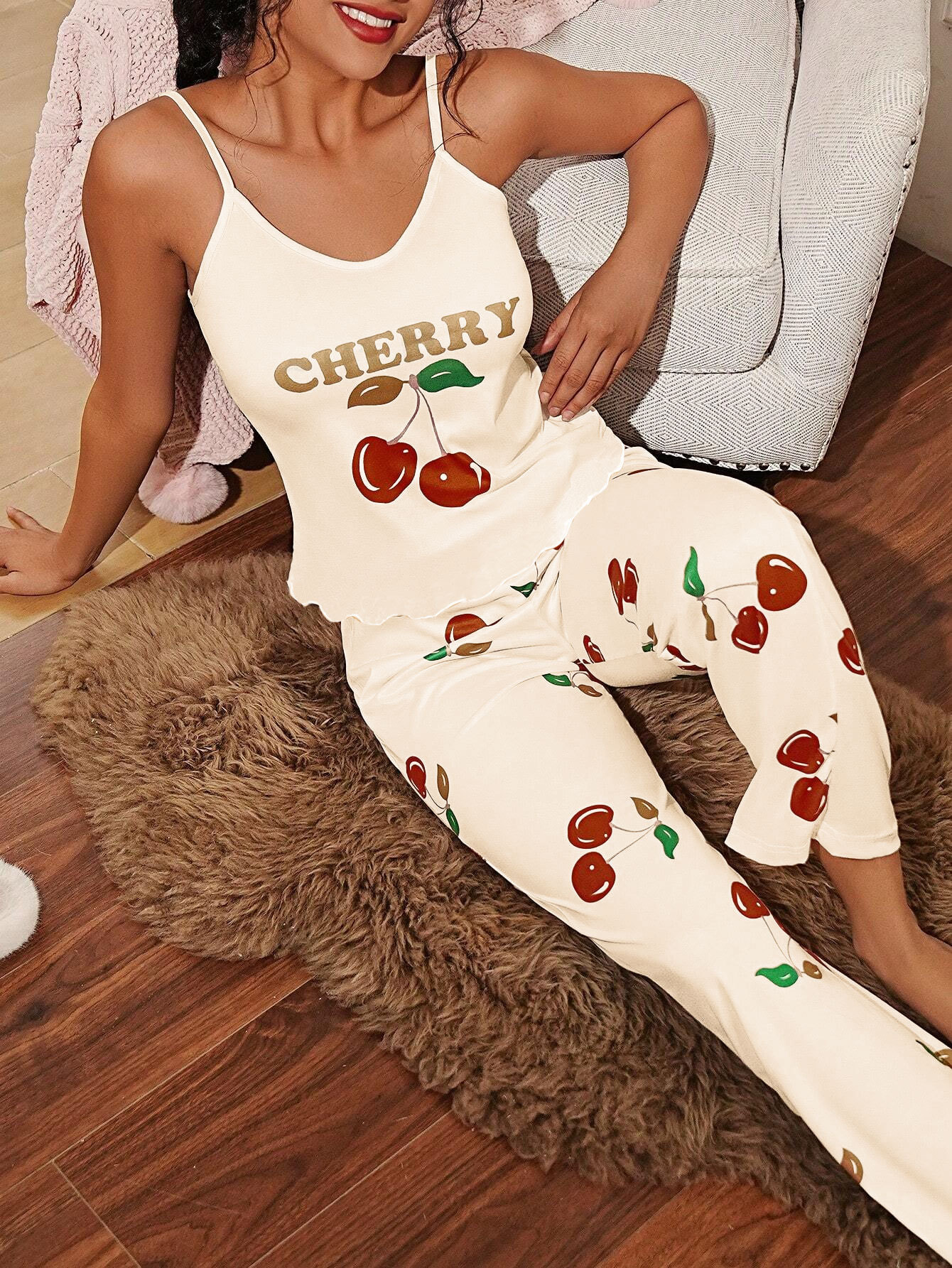 국경 간 홈 의류 프린트 슬링 스트랩 롱 바지 세트 편안한 홈 캐주얼 섹시한 여성 잠옷