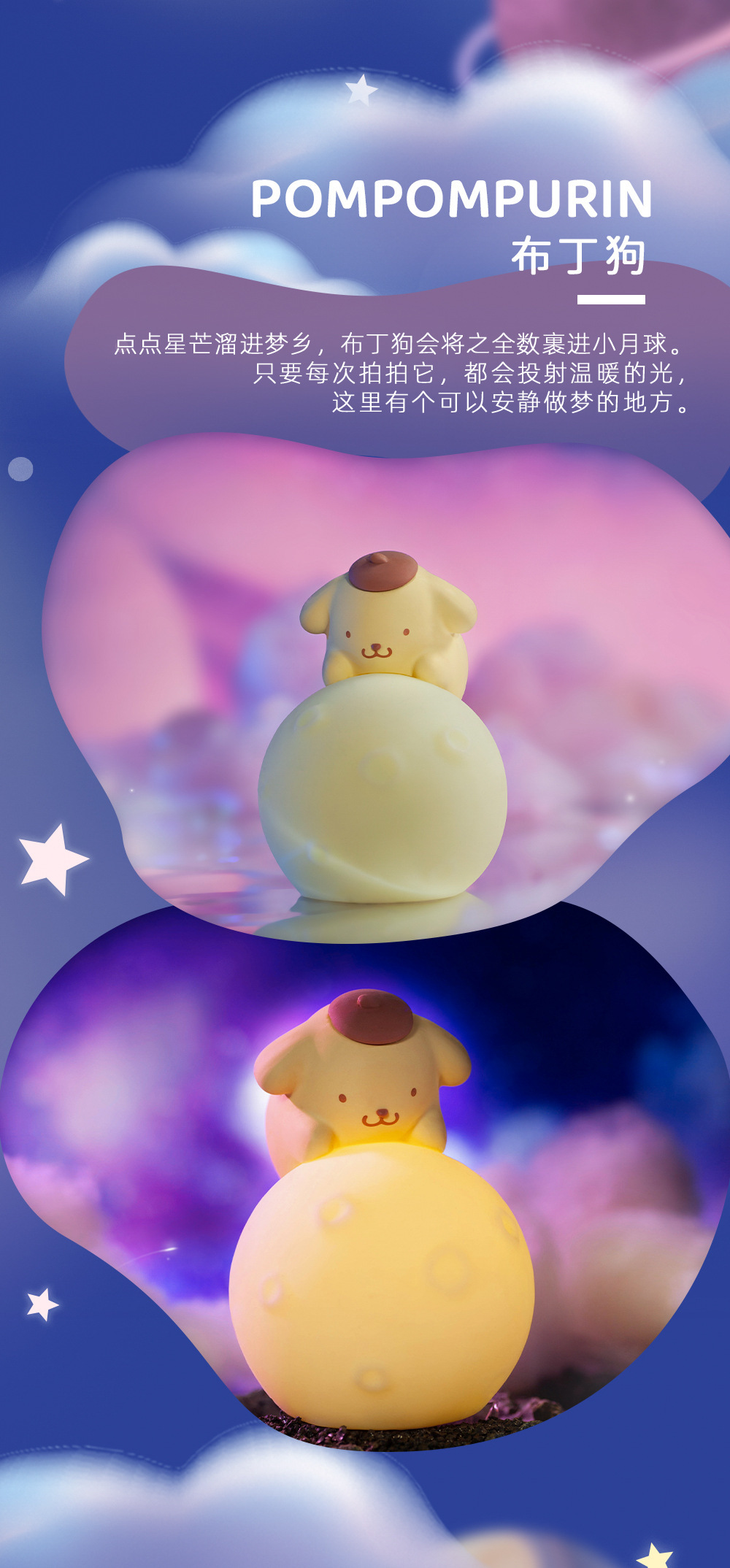 정품 인터넷 유명인 산리오 문 시리즈 야간 조명 장식 실리콘 만화 창조적 인 선물 귀여운 야간 조명스토어 가기