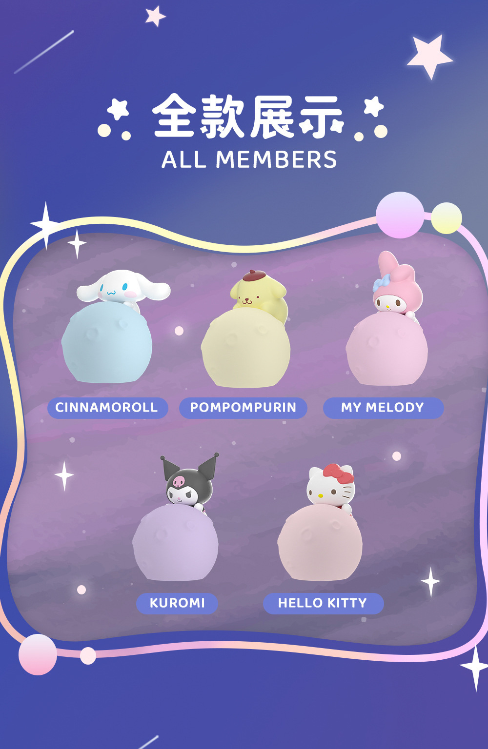 정품 인터넷 유명인 산리오 문 시리즈 야간 조명 장식 실리콘 만화 창조적 인 선물 귀여운 야간 조명