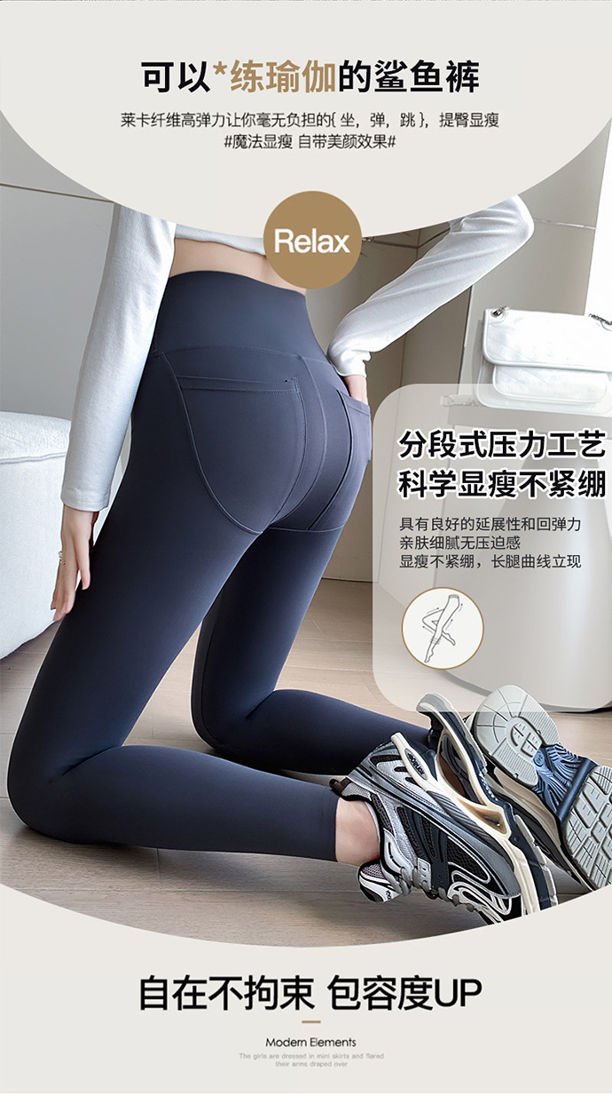 뒷주머니 상어 바지 여성용 겉옷 포켓 2024 새로운 높은 허리 복숭아 엉덩이 매트 바비 요가 레깅스스토어 가기