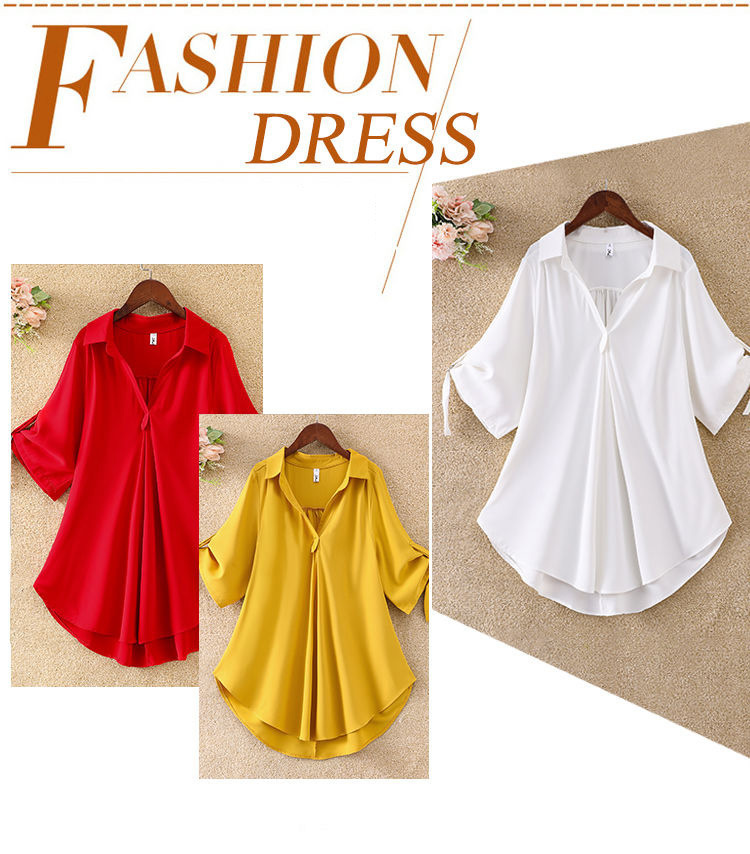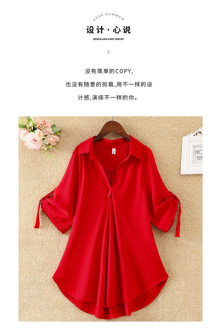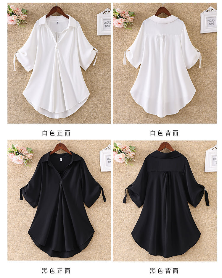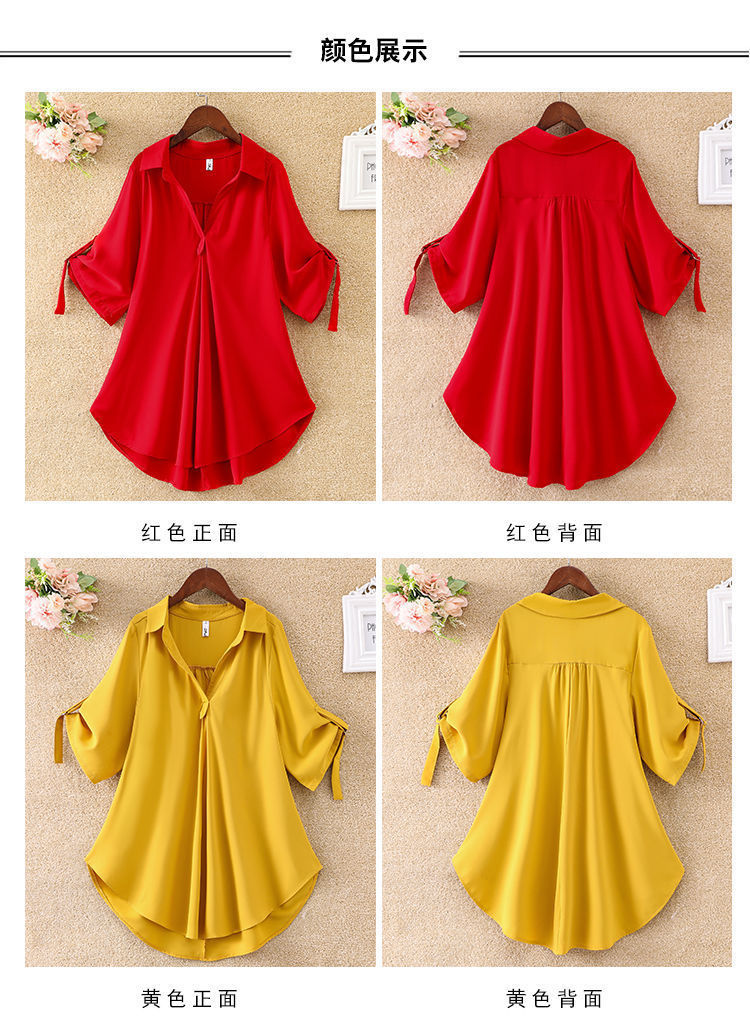 중간 길이의 반팔 쉬폰 셔츠 여성용 2025 여름 신상품 대형 사이즈 루즈핏 허리 슬리밍 쉬폰 셔츠 여성용스토어 가기