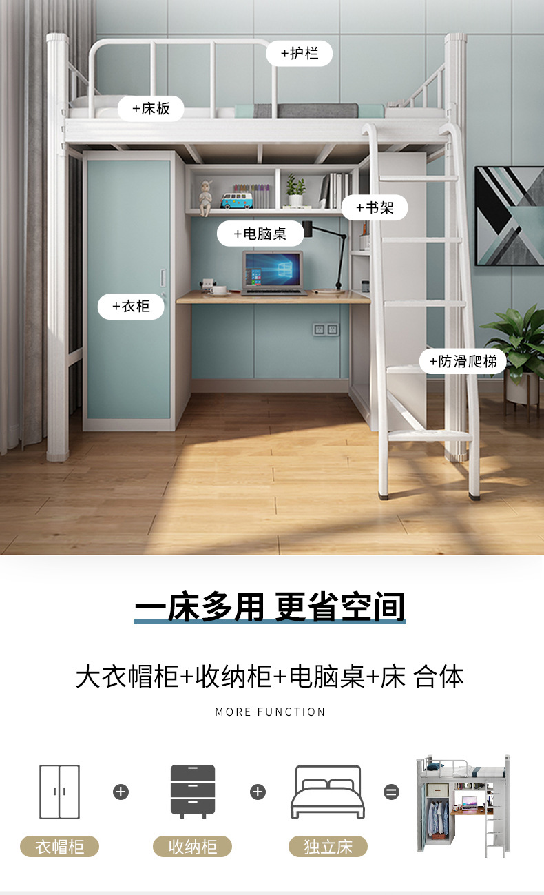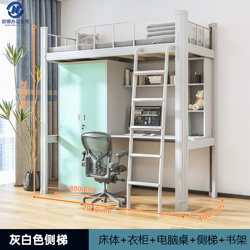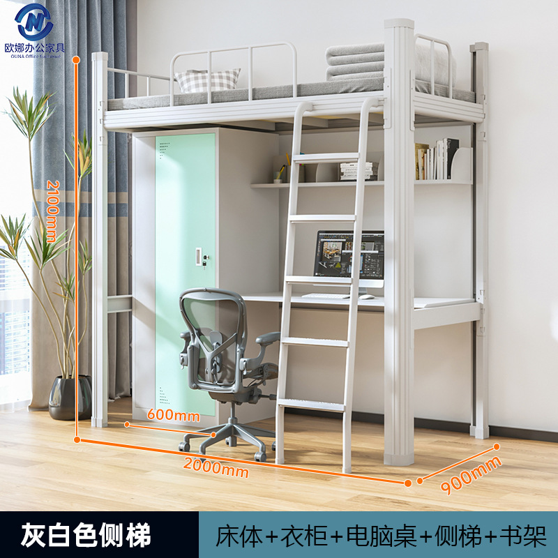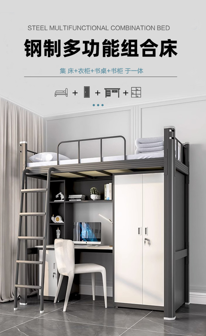 침대 위에 테이블이 있는 콤비네이션 침대, 대학생 기숙사 침대, 학교 기숙사 로프트 침대, 싱글 상층 아파트 침대, 철제 침대