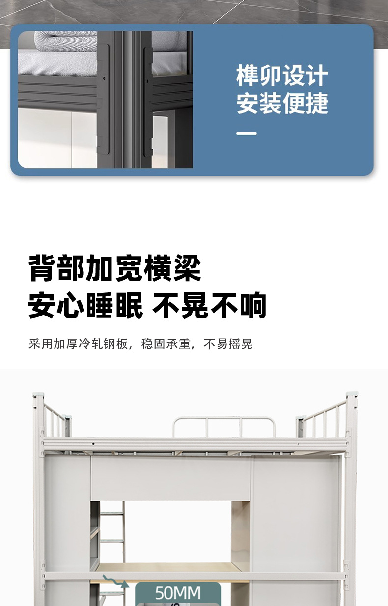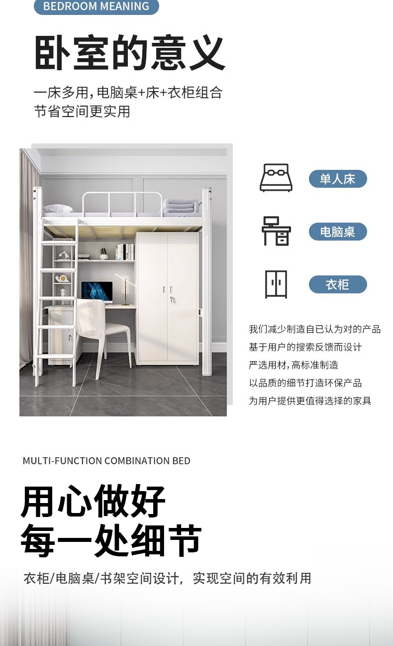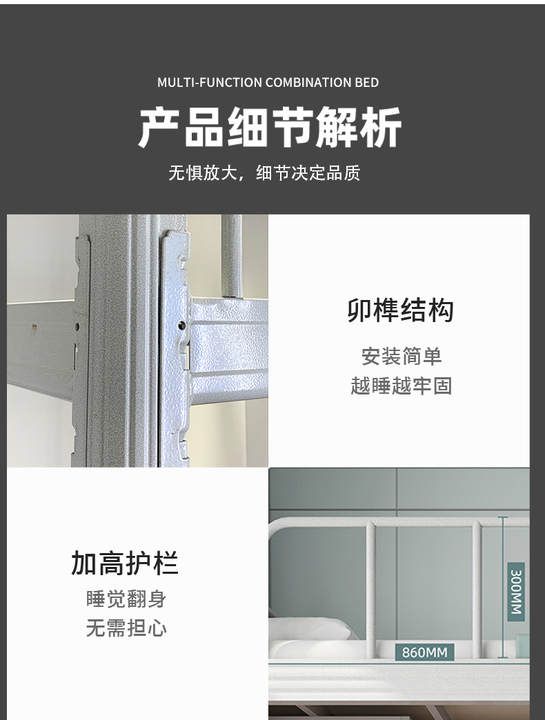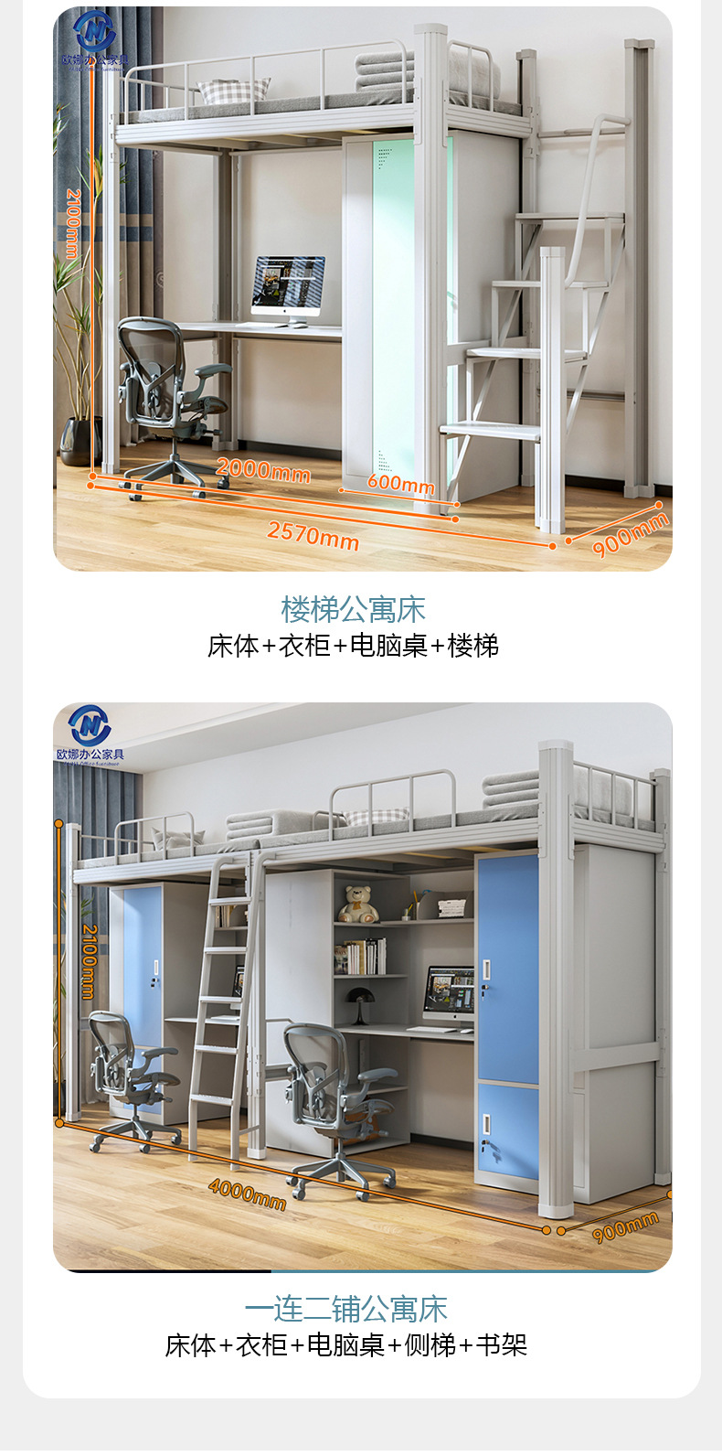 침대 위에 테이블이 있는 콤비네이션 침대, 대학생 기숙사 침대, 학교 기숙사 로프트 침대, 싱글 상층 아파트 침대, 철제 침대