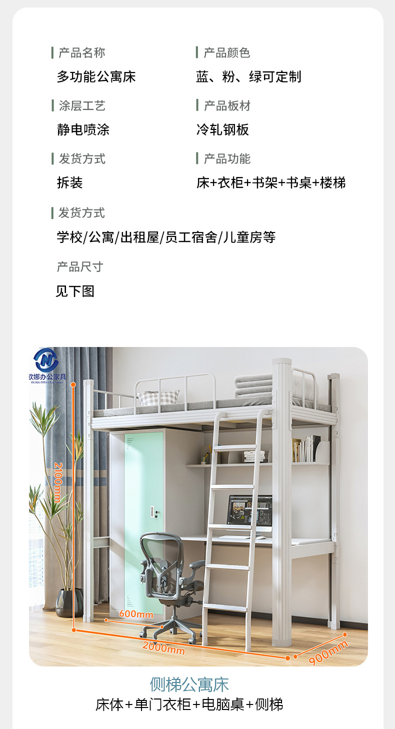 침대 위에 테이블이 있는 콤비네이션 침대, 대학생 기숙사 침대, 학교 기숙사 로프트 침대, 싱글 상층 아파트 침대, 철제 침대스토어 가기