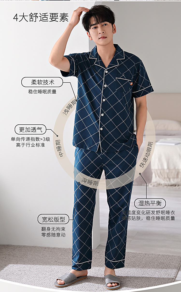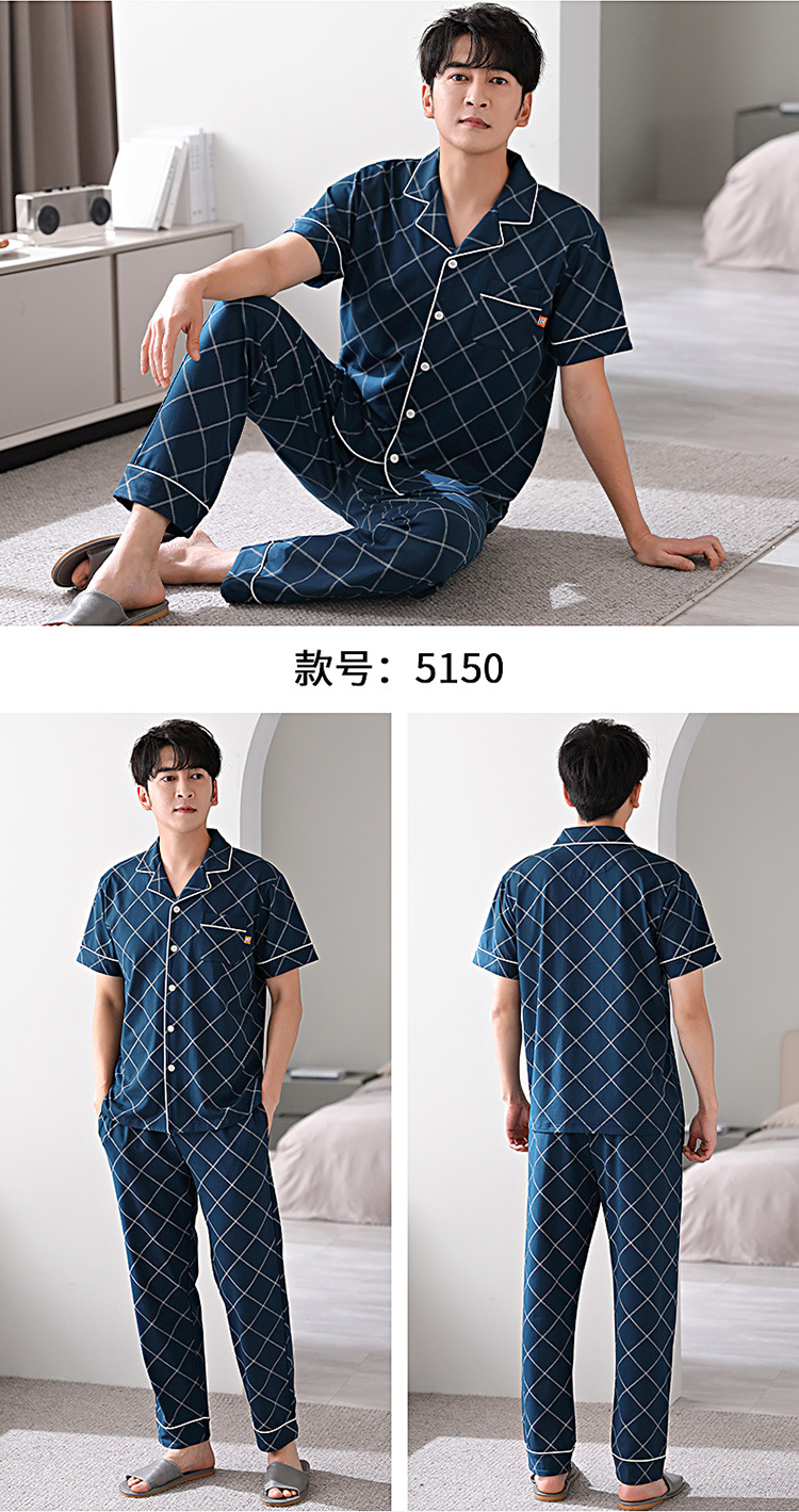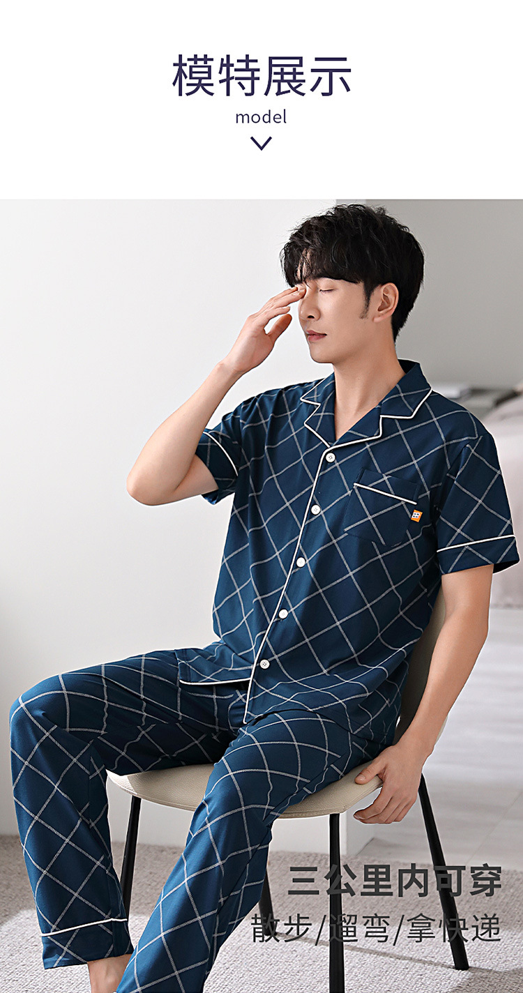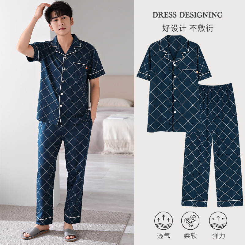 여름 신입 남성면 파자마 반팔 바지 플러스 사이즈 느슨한 캐주얼 얇은 카디건 홈웨어 세트 남성스토어 가기
