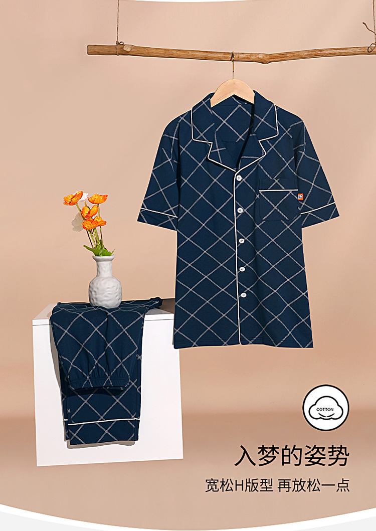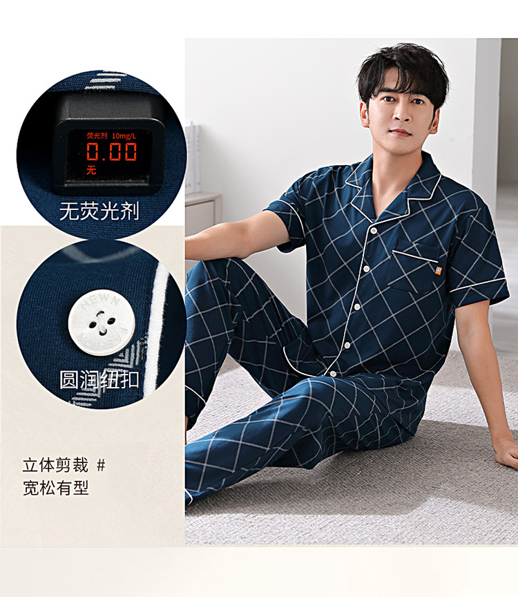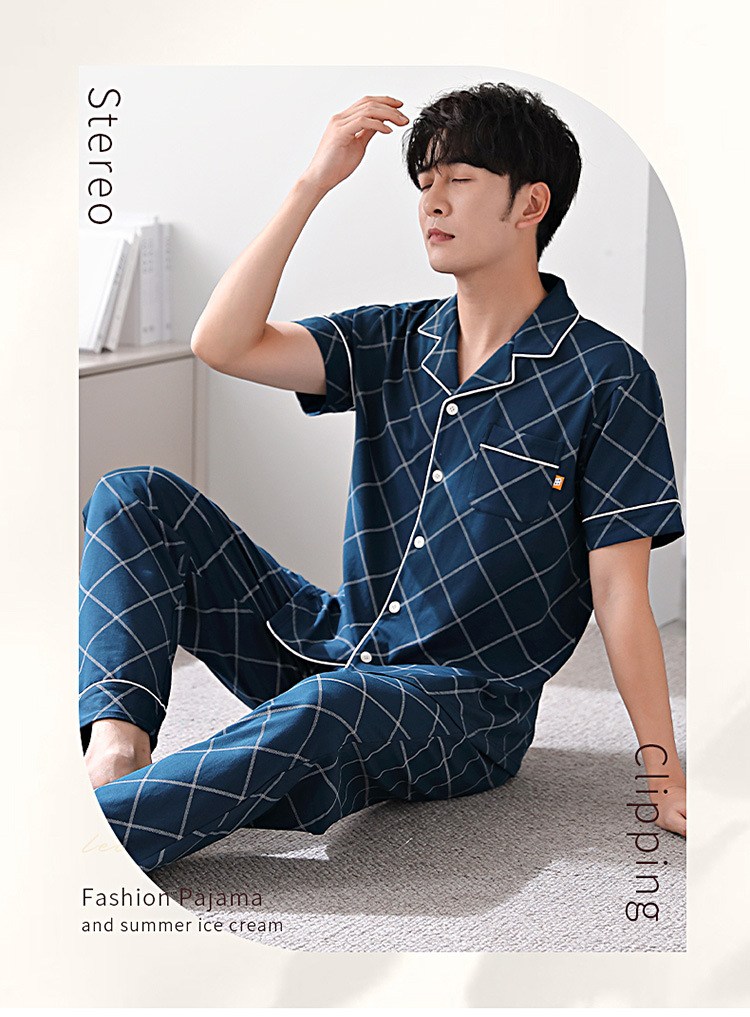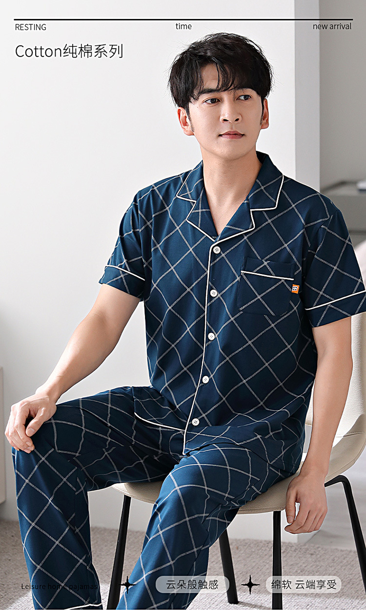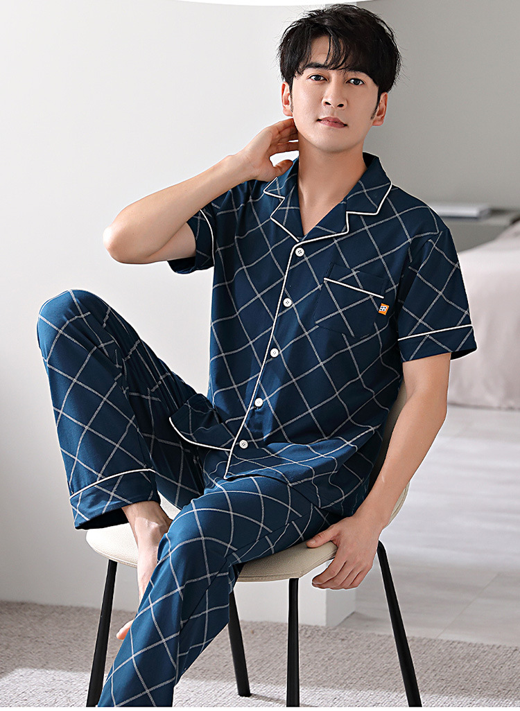 여름 신입 남성면 파자마 반팔 바지 플러스 사이즈 느슨한 캐주얼 얇은 카디건 홈웨어 세트 남성스토어 가기
