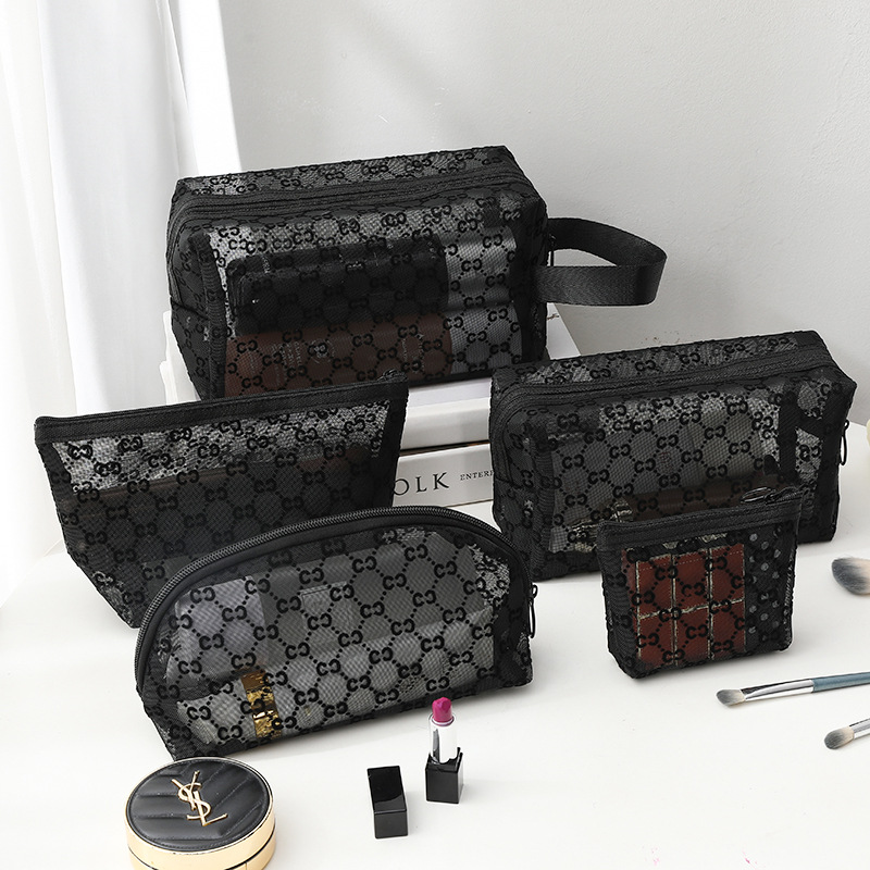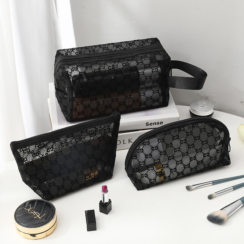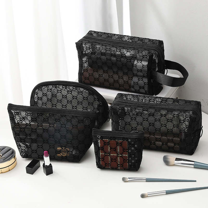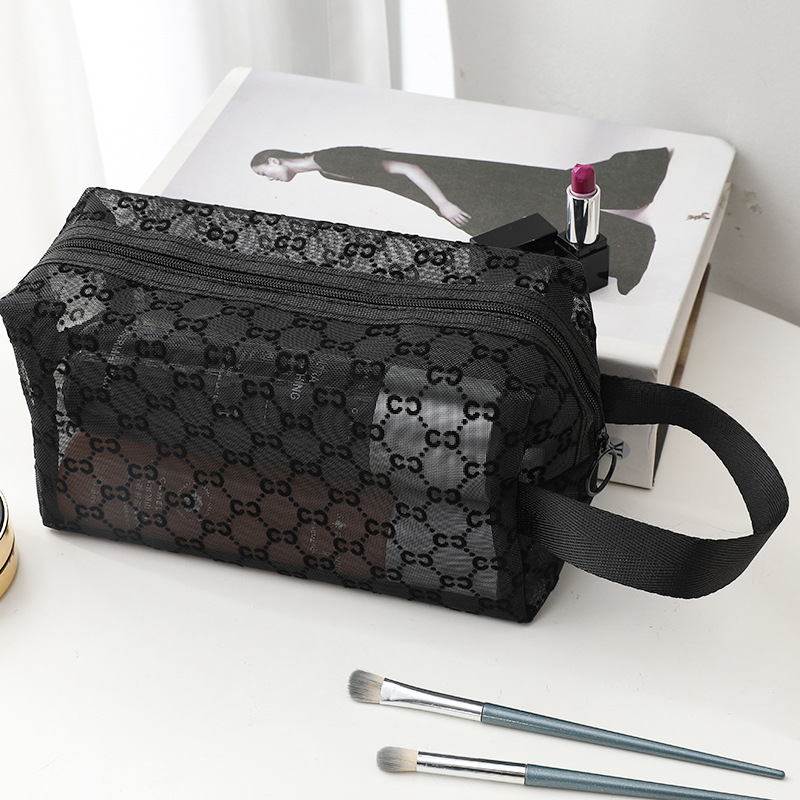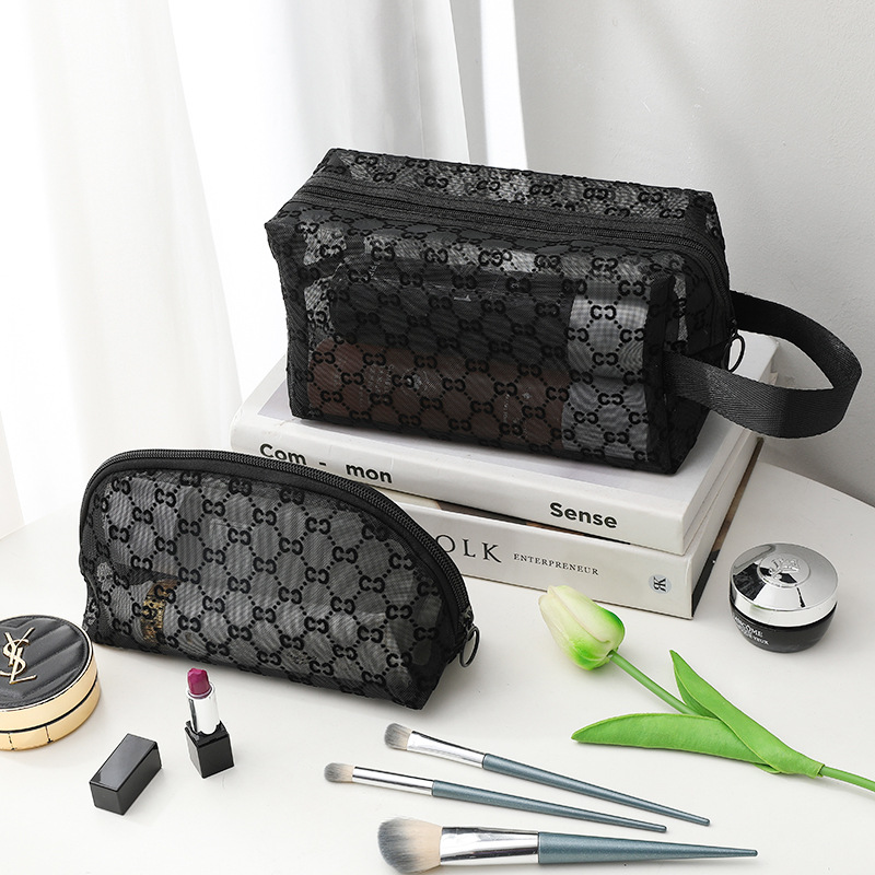 외출용 메이크업 가방, 인스타 감성 메쉬 벨벳 CC 세면도구 수납 휴대용 화장품 가방, 대용량 통기성, 인스타 스타일