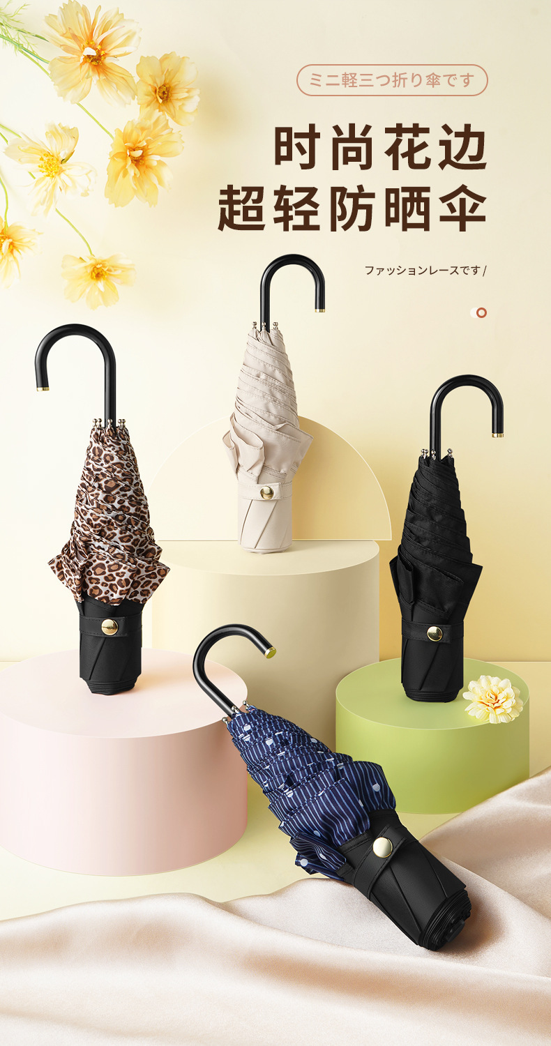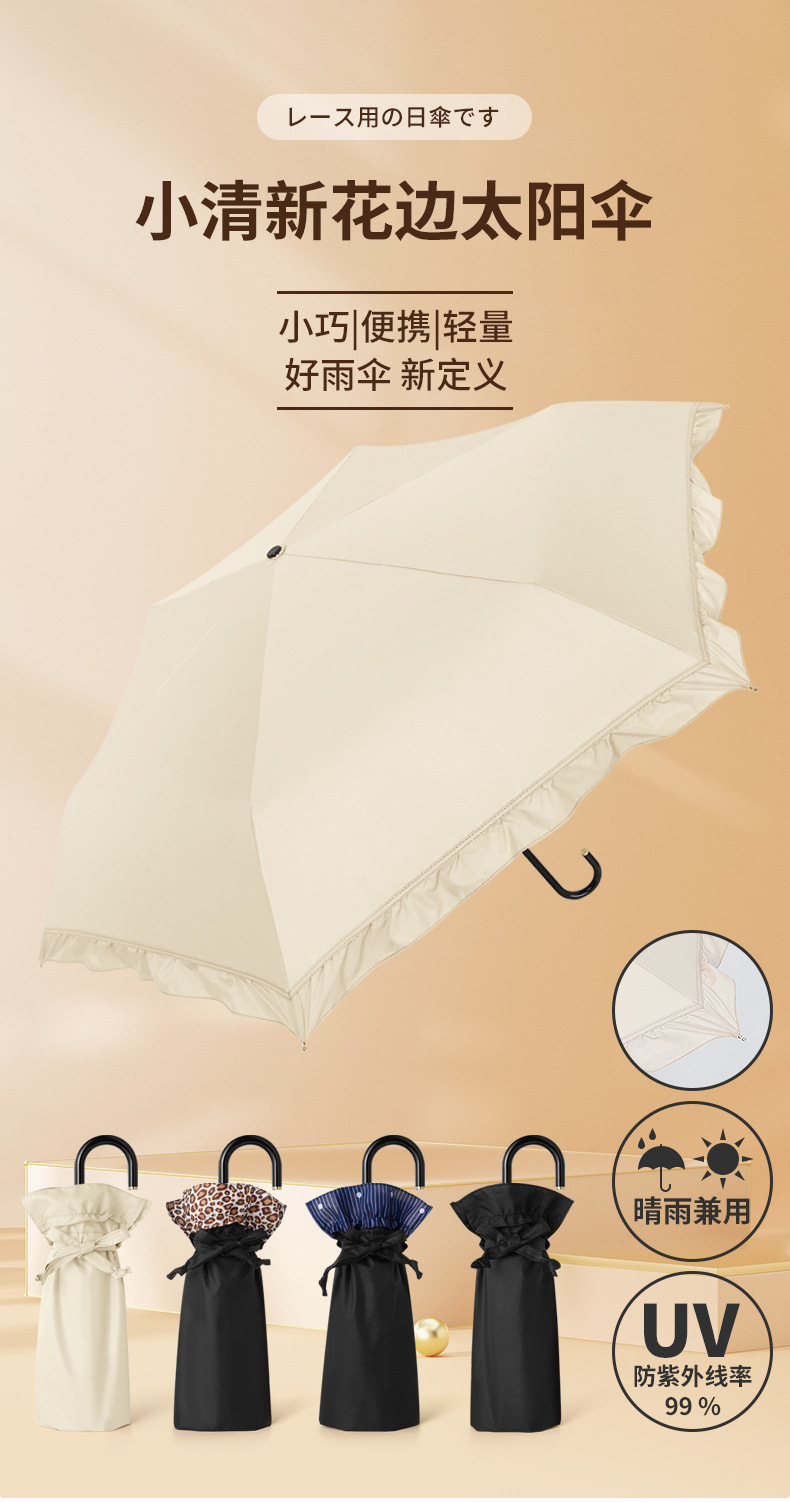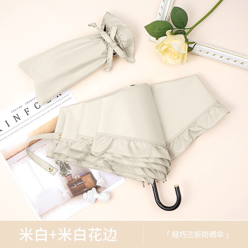 새로운 일본식 3 배 레이스 우산 여성 빛 고급 태양 보호 태양 우산 초경량 휴대용 내풍 태양 우산 비와 비 이중 사용
