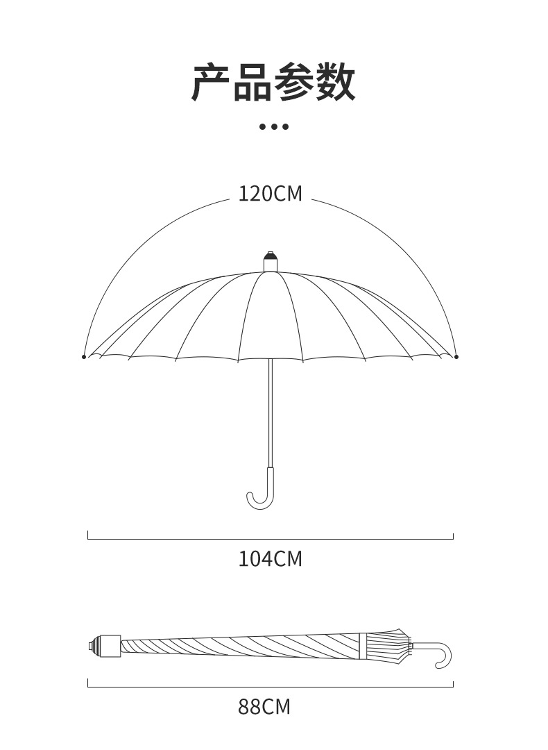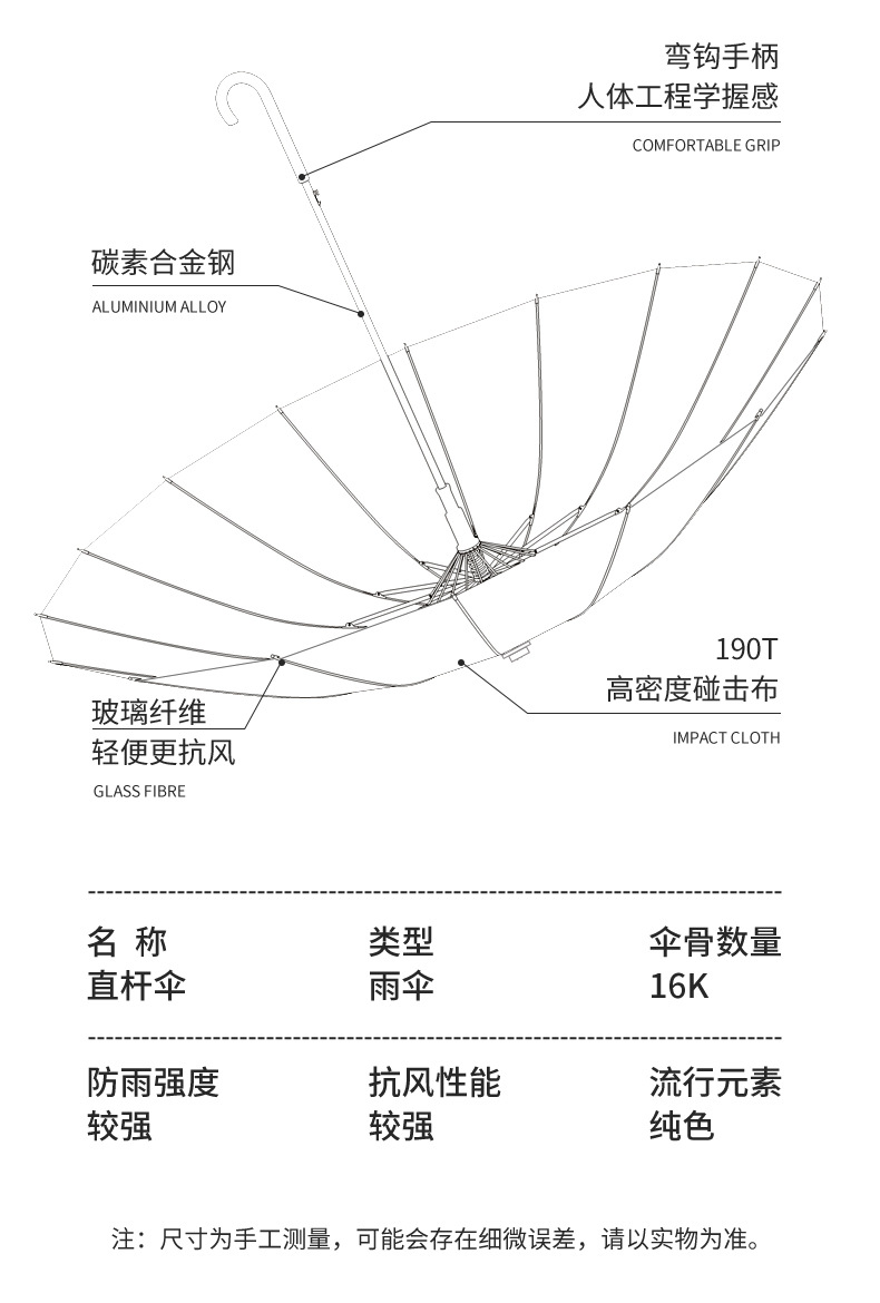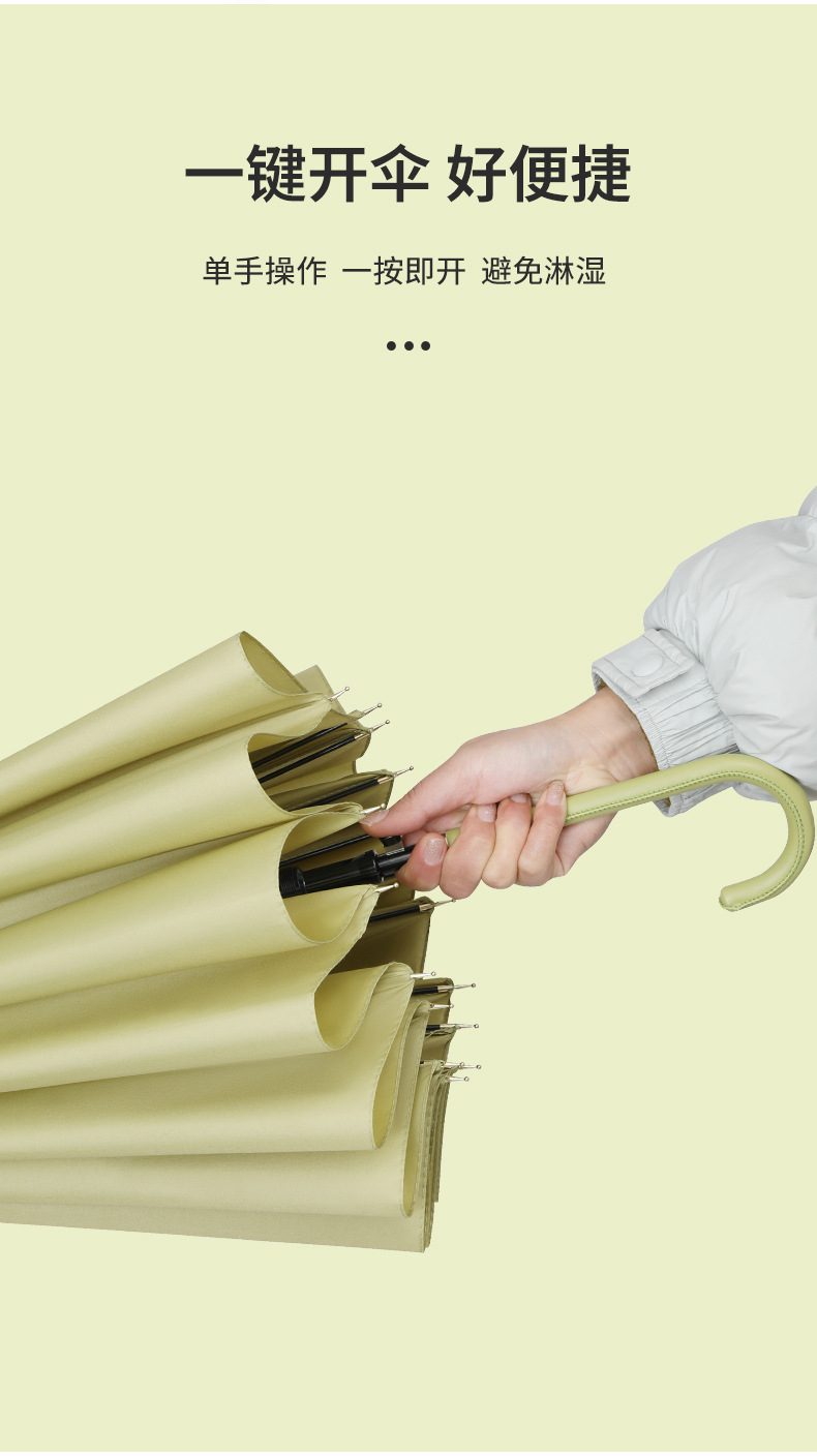 일본식 16본 간결한 디자인 긴 손잡이 우산, 큰 사이즈, 방풍, 방수 커버 포함, 자동 개폐식, 비즈니스용 직선형 우산