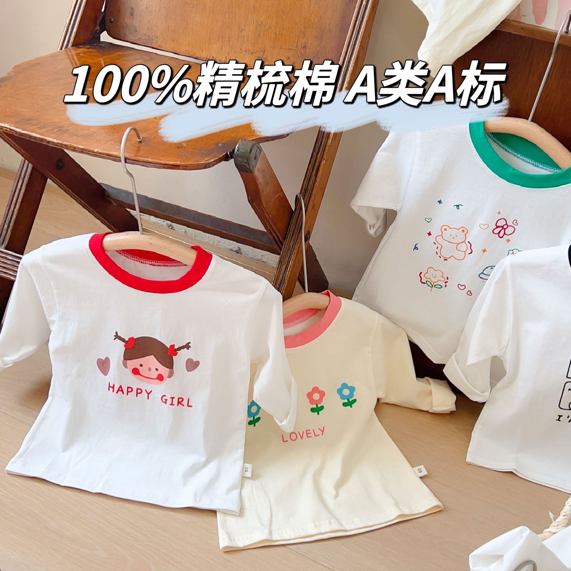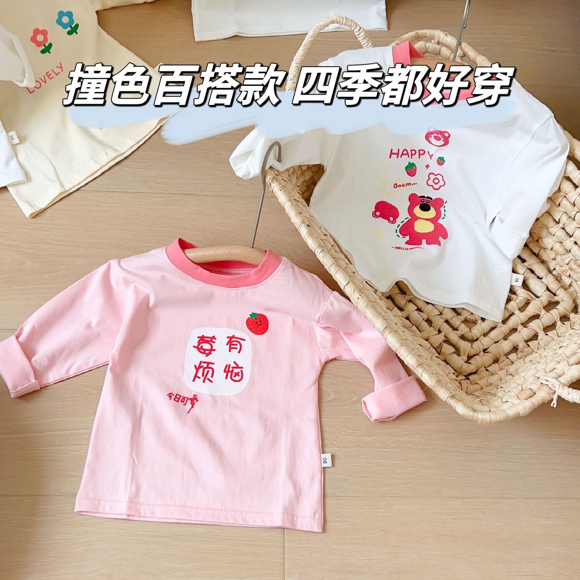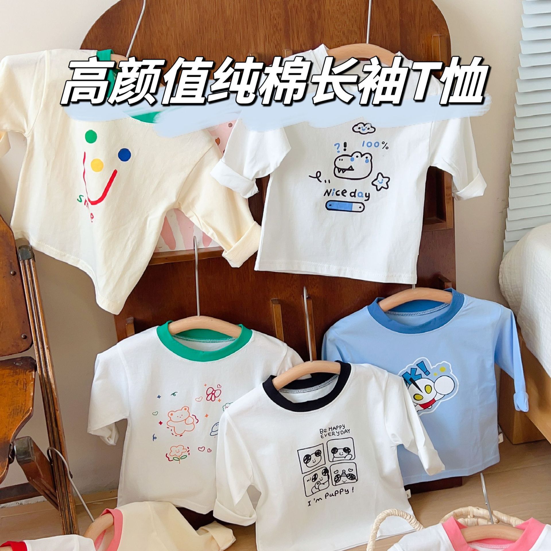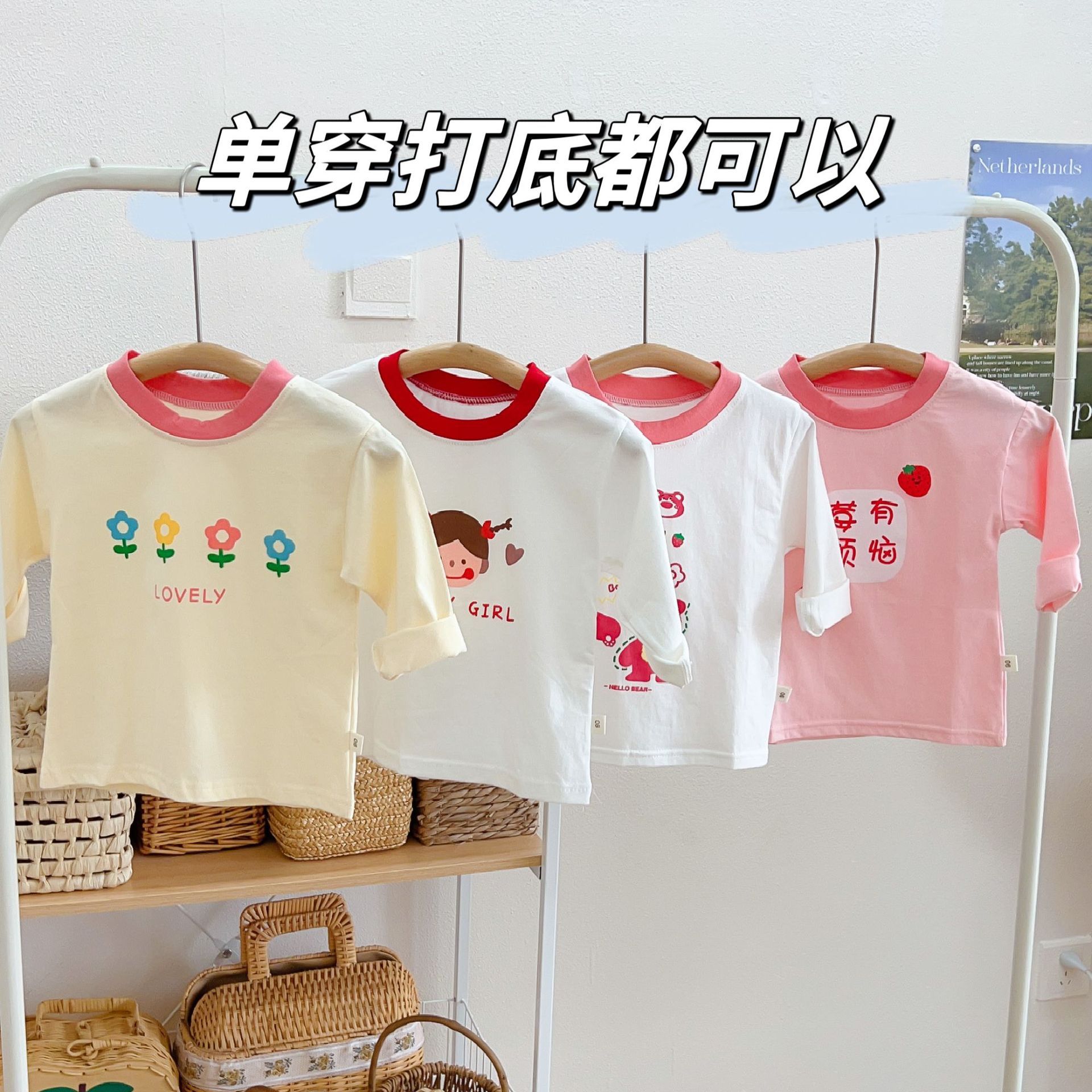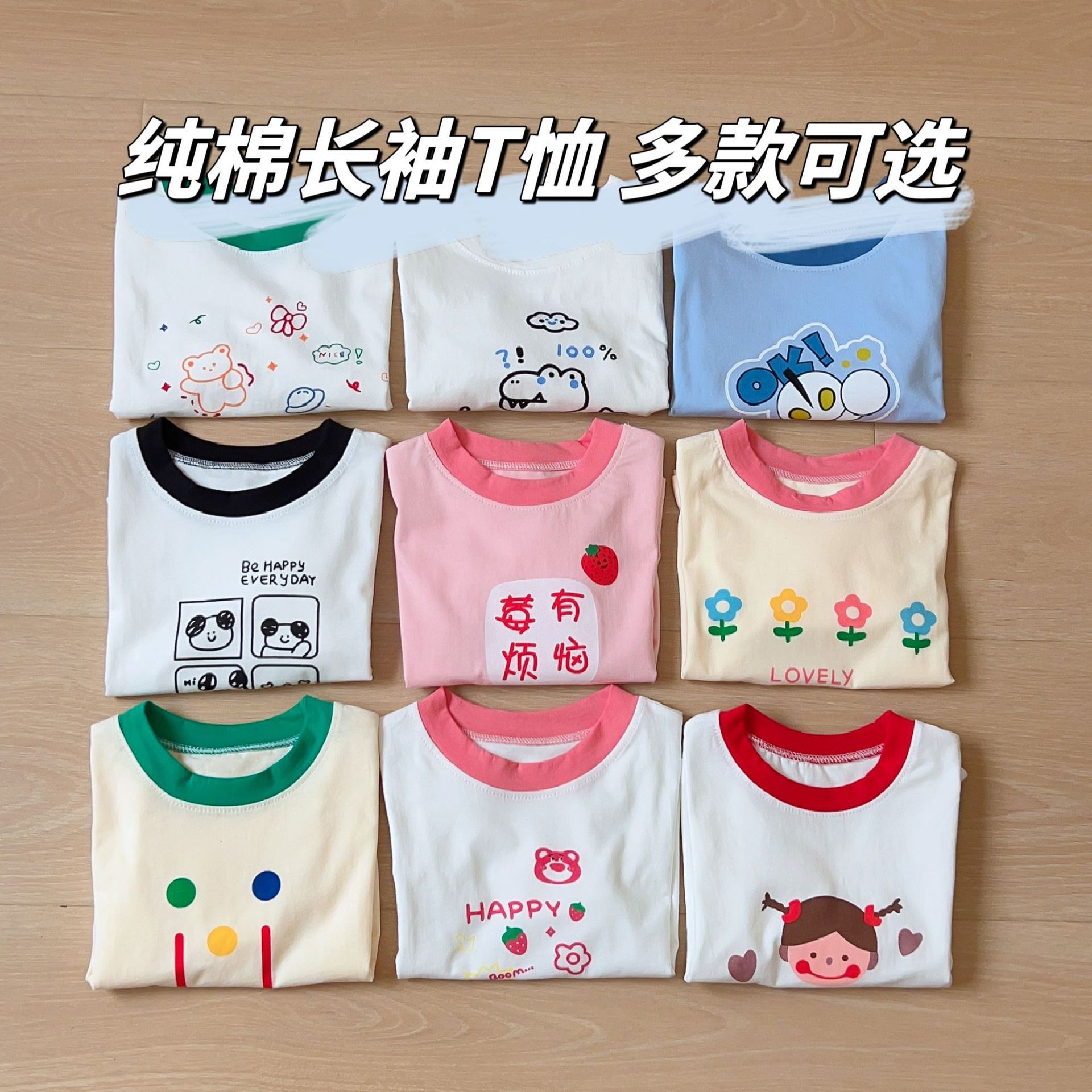 2025 봄 아동용 긴팔 티셔츠 순면 남아 여아 이너웨어 어린이용 순면 가을옷 만화 다용도스토어 가기