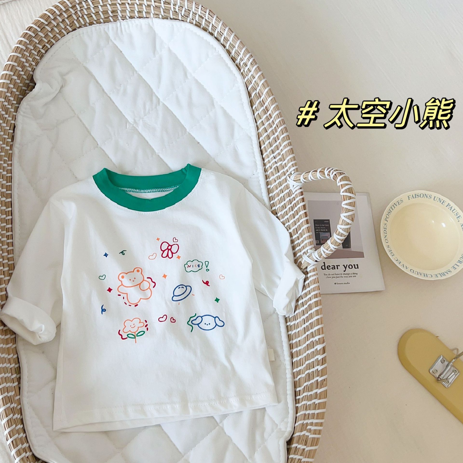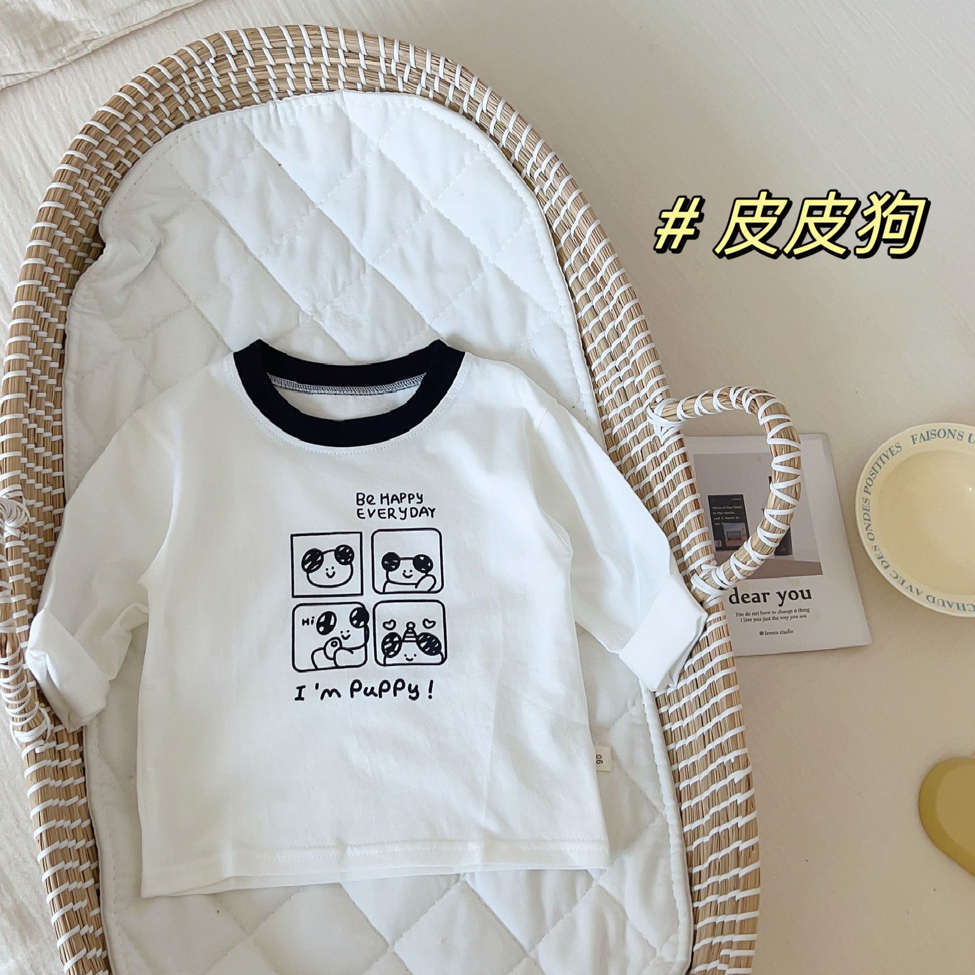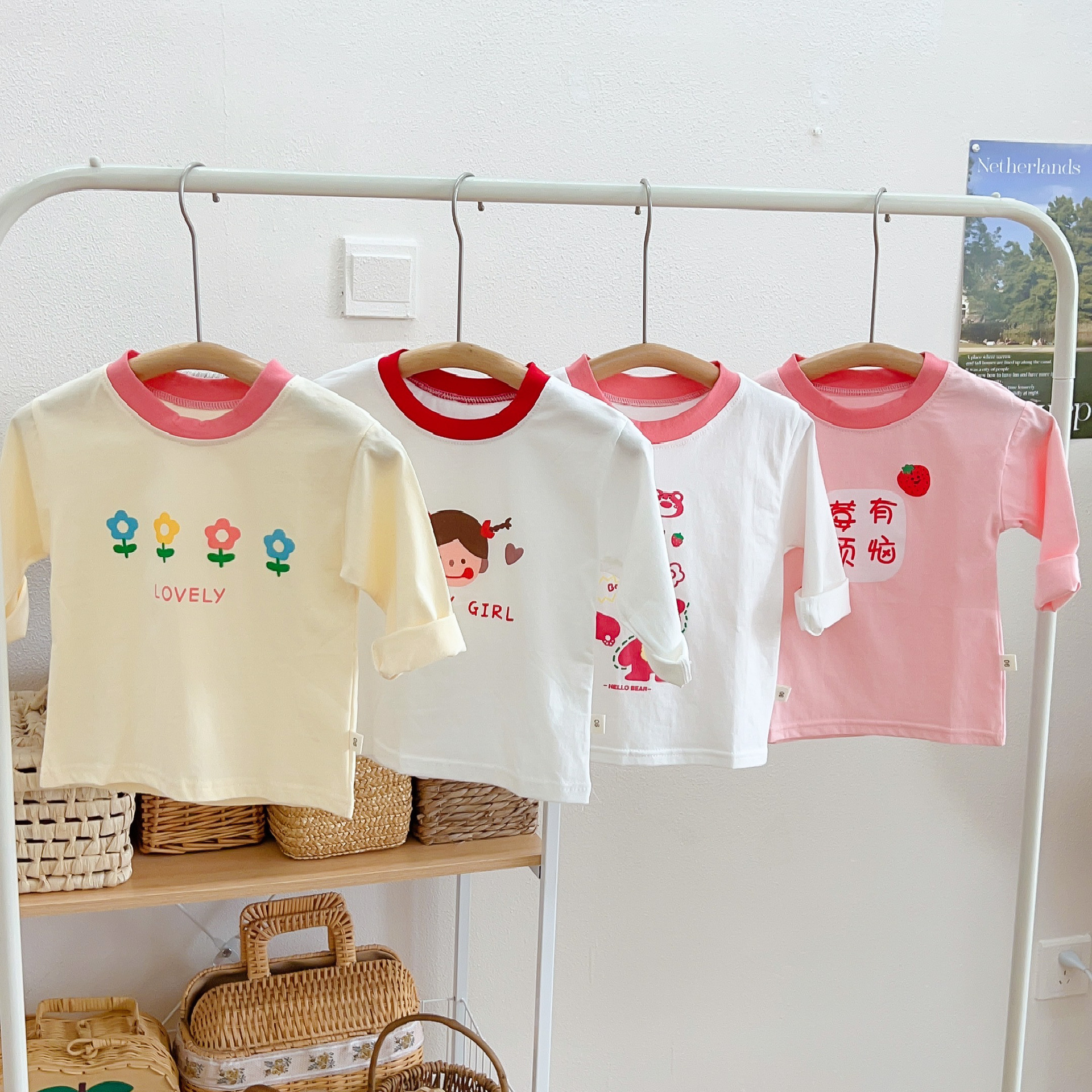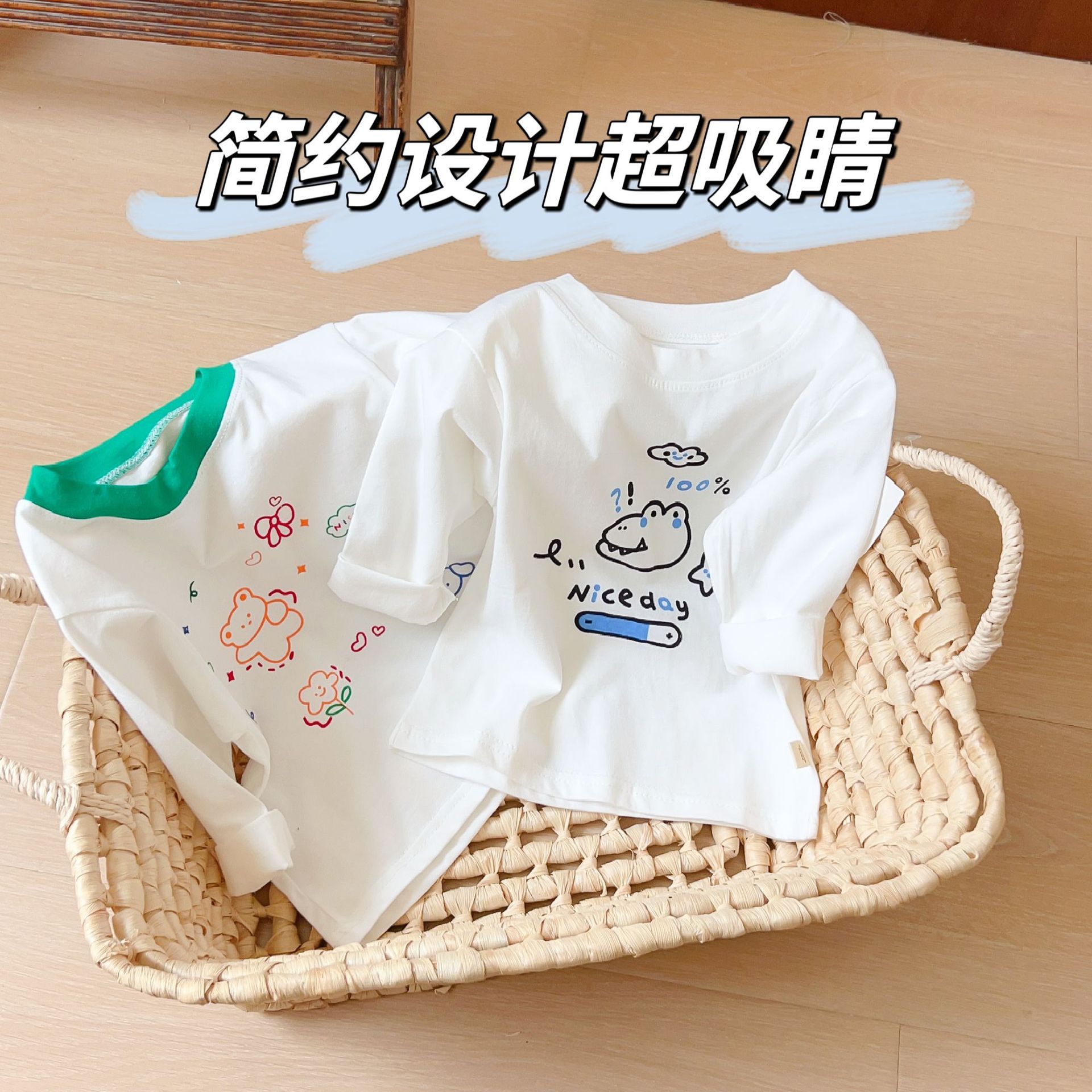 2025 봄 아동용 긴팔 티셔츠 순면 남아 여아 이너웨어 어린이용 순면 가을옷 만화 다용도스토어 가기