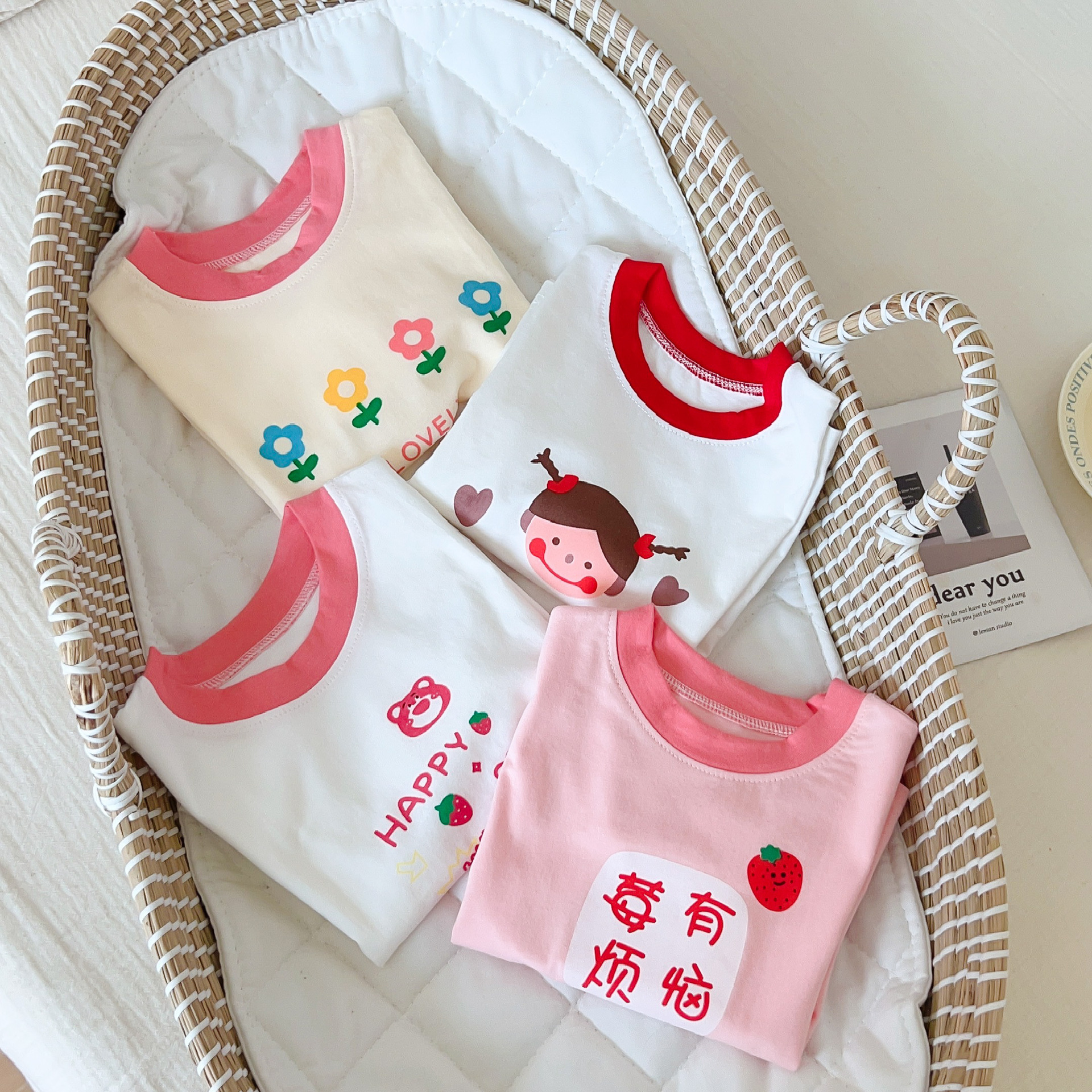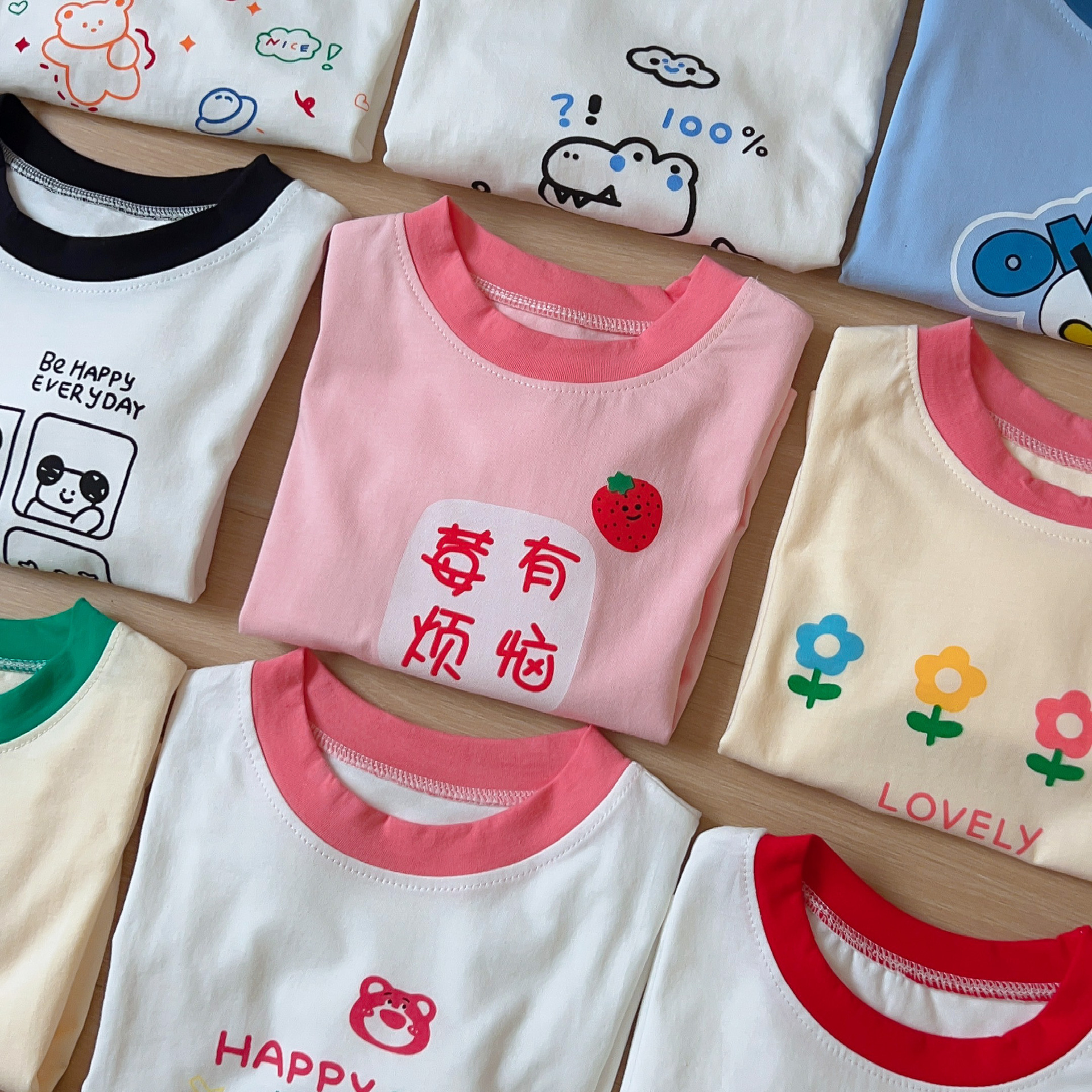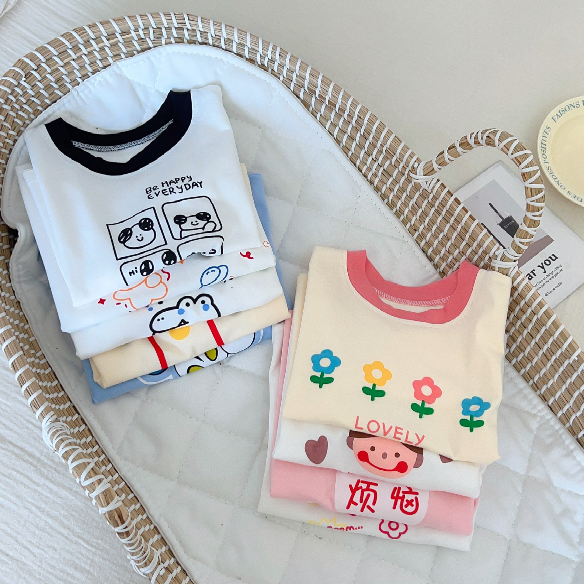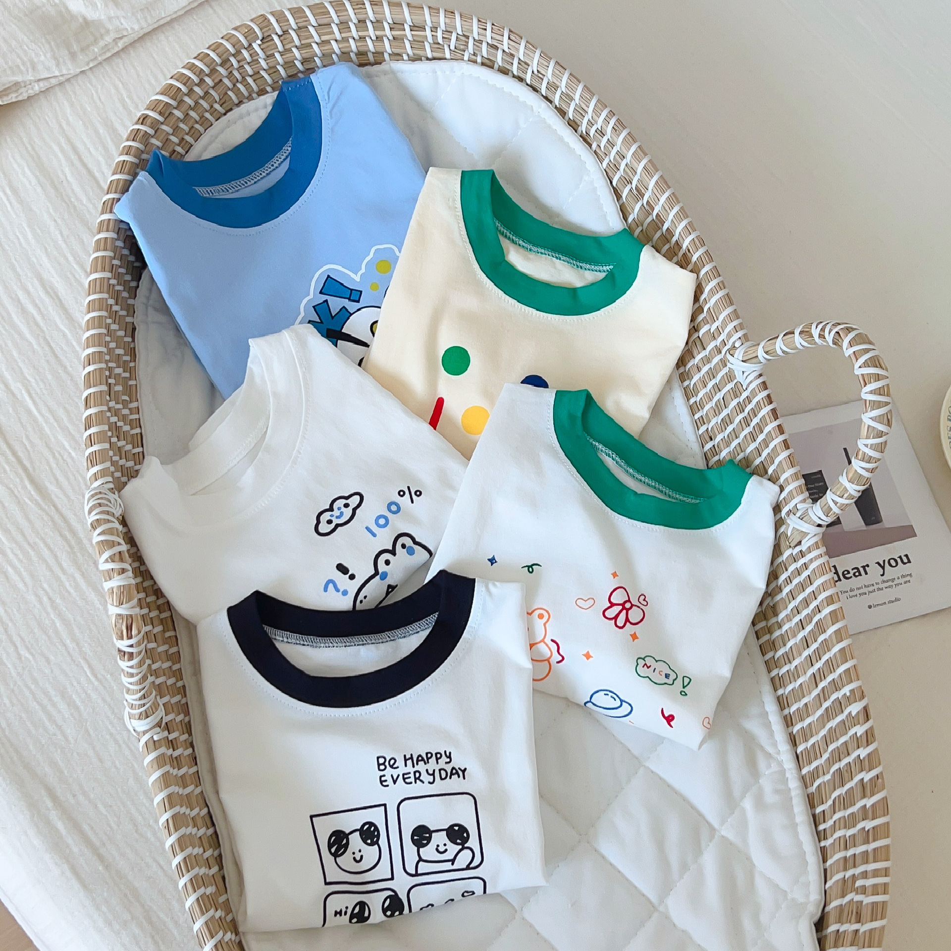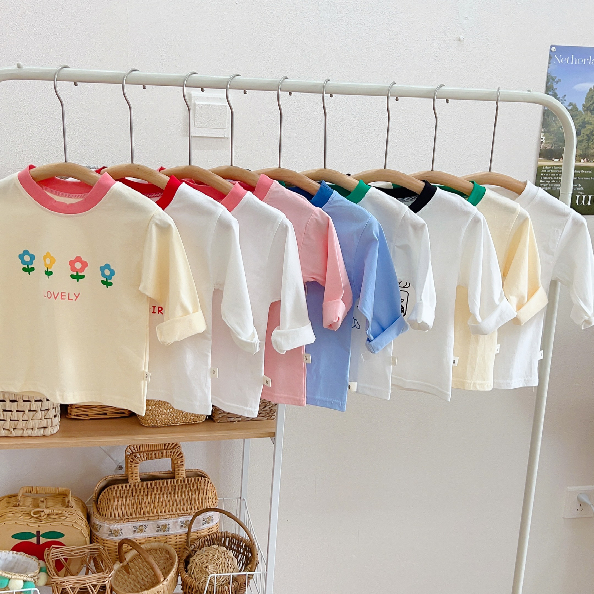 2025 봄 아동용 긴팔 티셔츠 순면 남아 여아 이너웨어 어린이용 순면 가을옷 만화 다용도스토어 가기