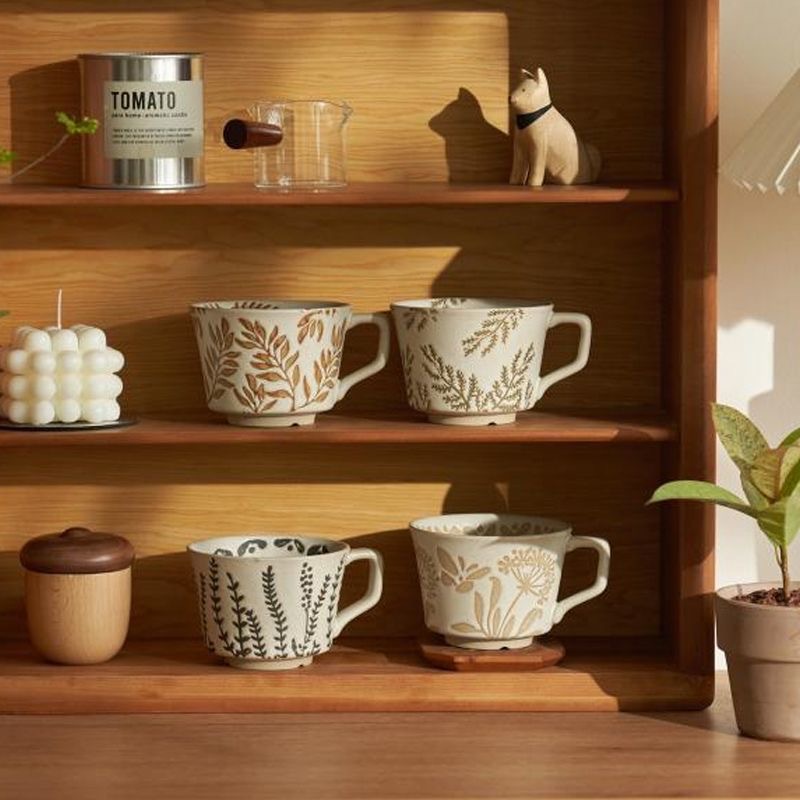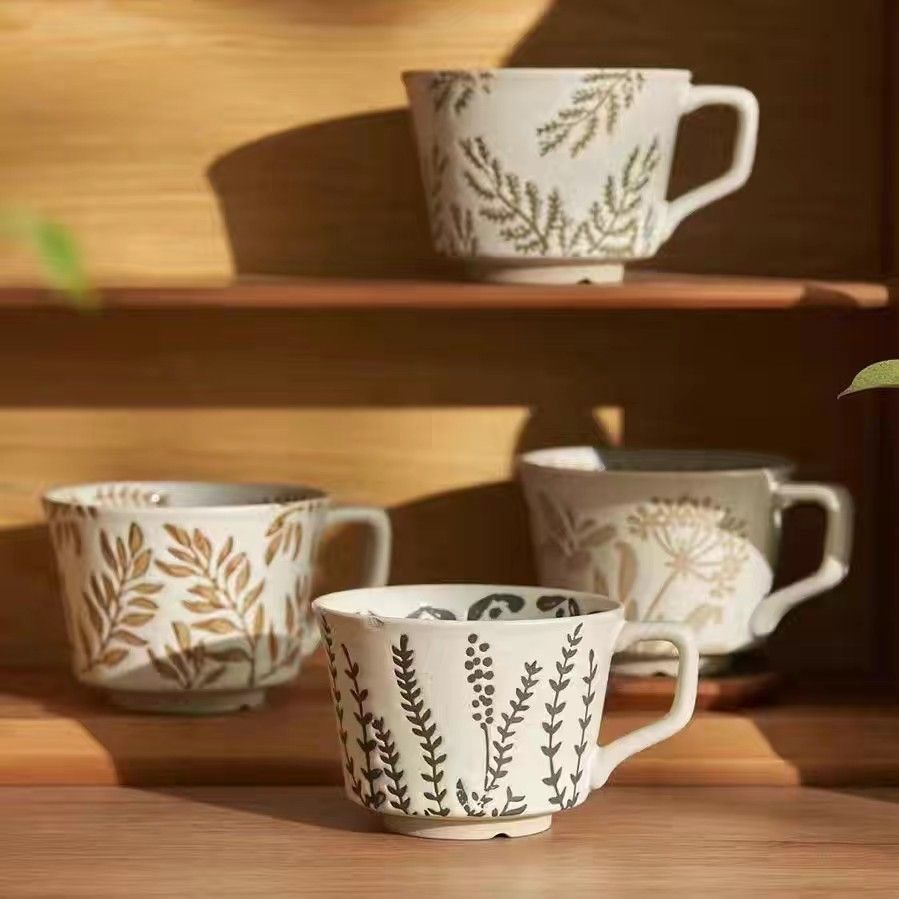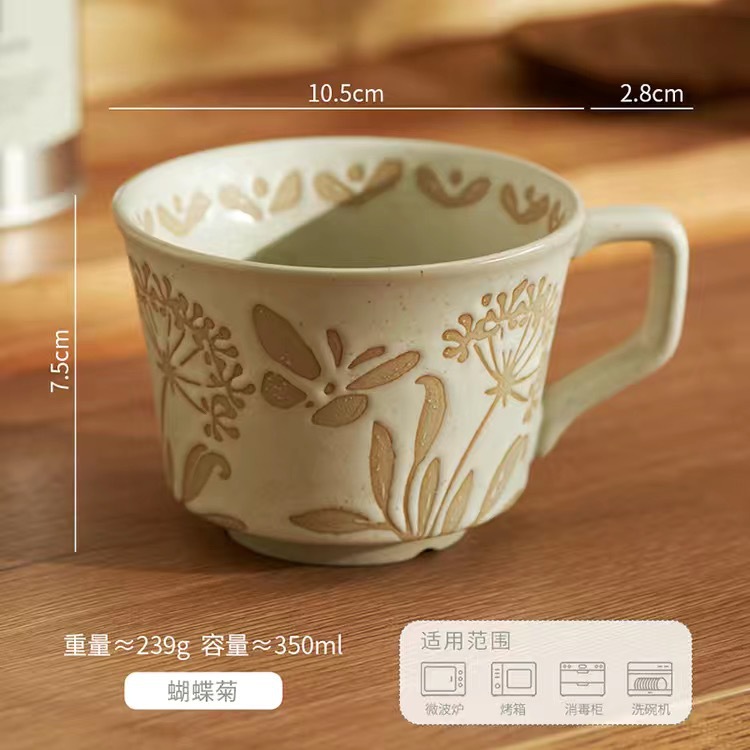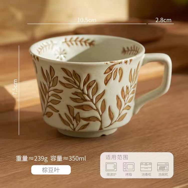 세라믹 양각 아침 식사 컵 오트밀 머그잔 작은 신선한 물 컵 커피 컵 도매 유럽 복고풍 세라믹 가정스토어 가기