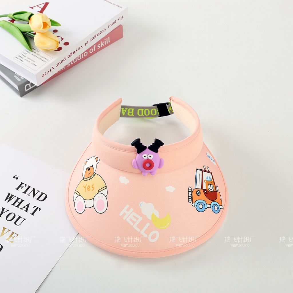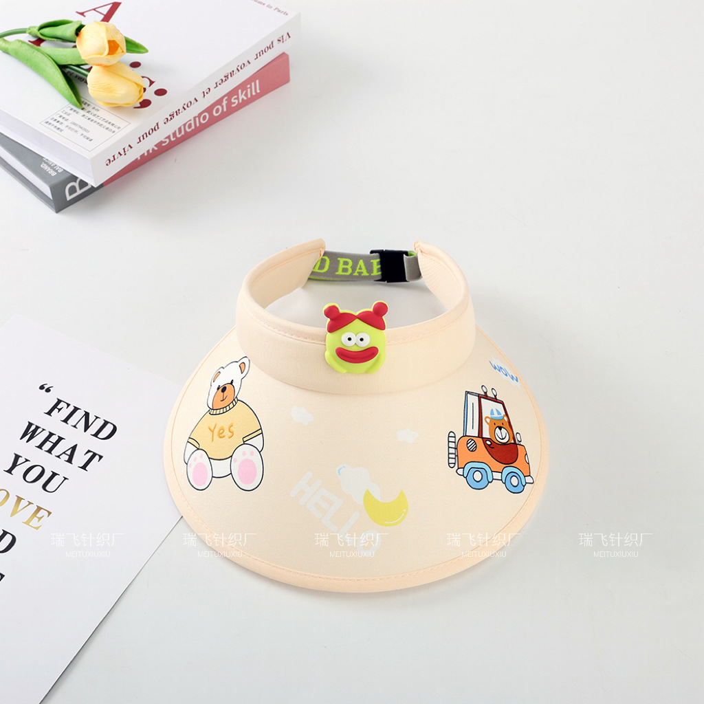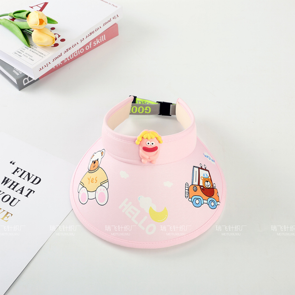 어린이 태양 모자 여름 통기성 빈 탑 접이식 모자 만화 귀여운 태양 모자 큰 테두리 태양 모자 커버 얼굴스토어 가기