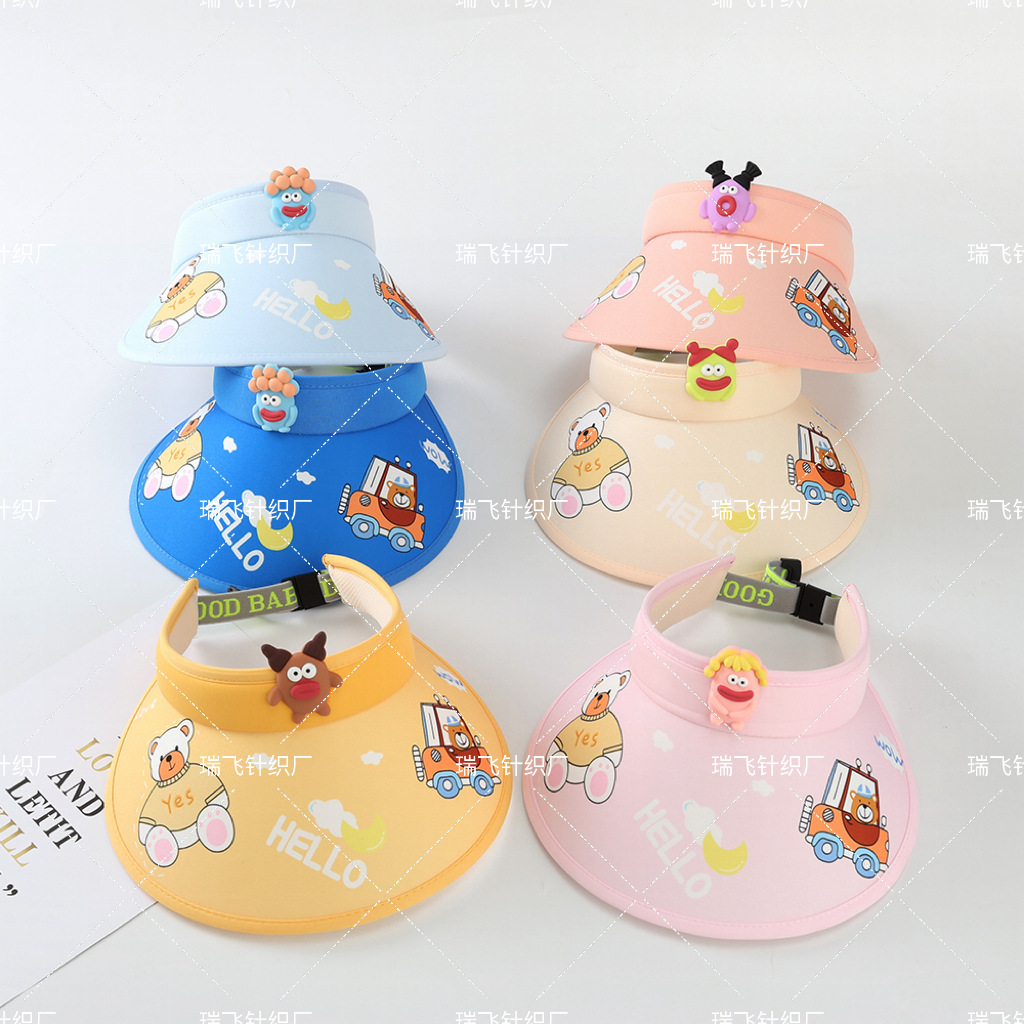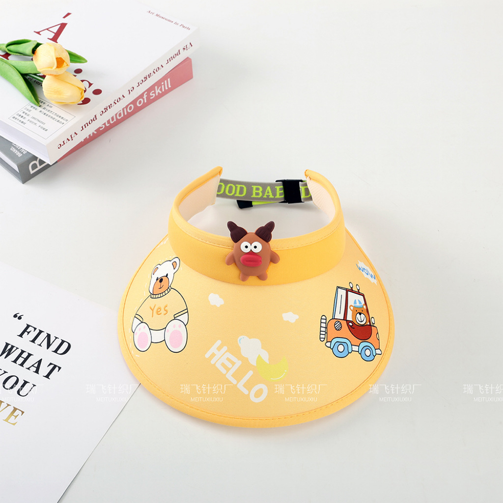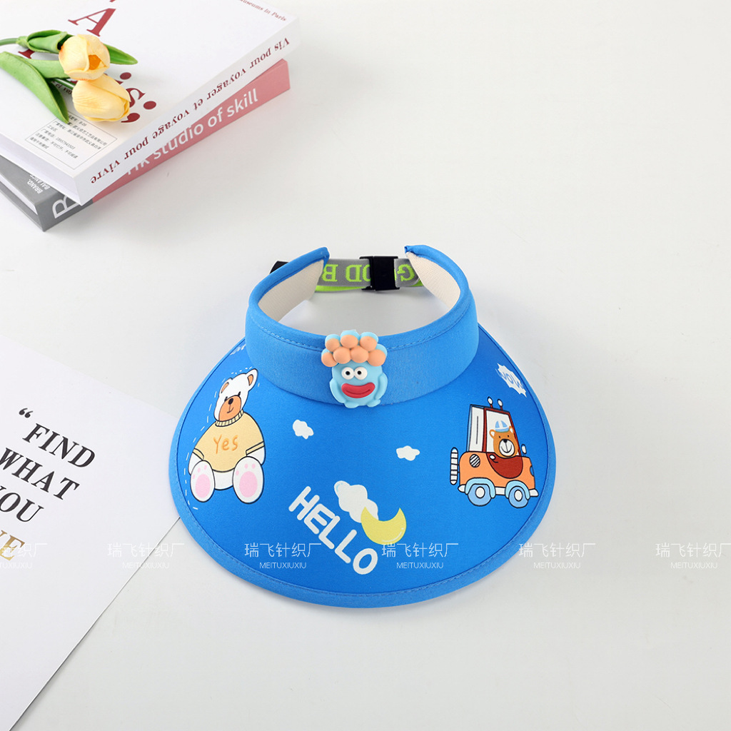 어린이 태양 모자 여름 통기성 빈 탑 접이식 모자 만화 귀여운 태양 모자 큰 테두리 태양 모자 커버 얼굴스토어 가기