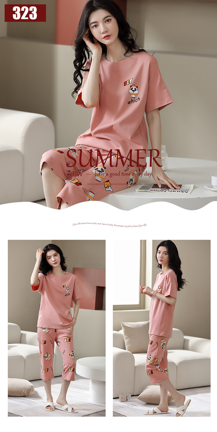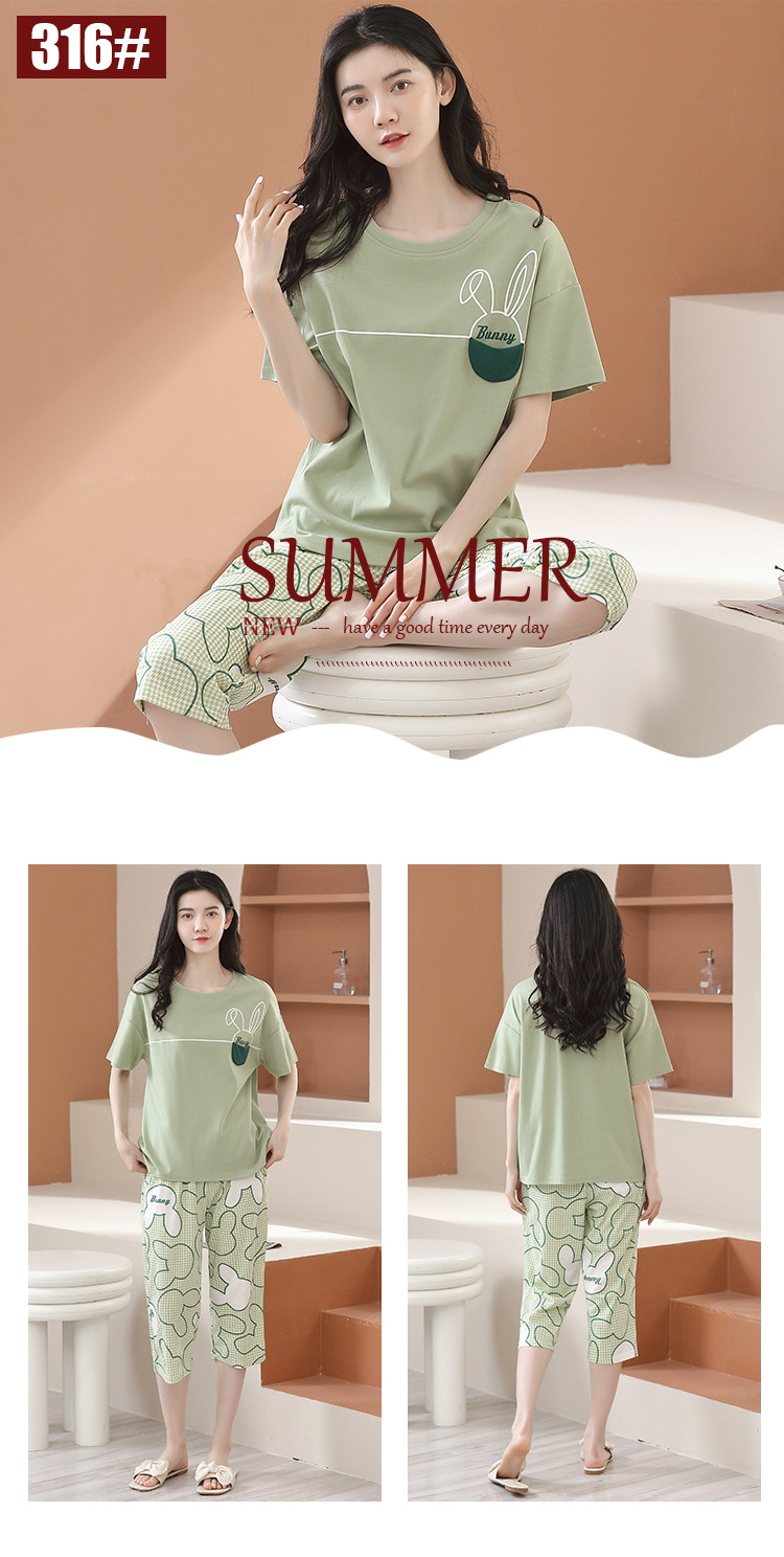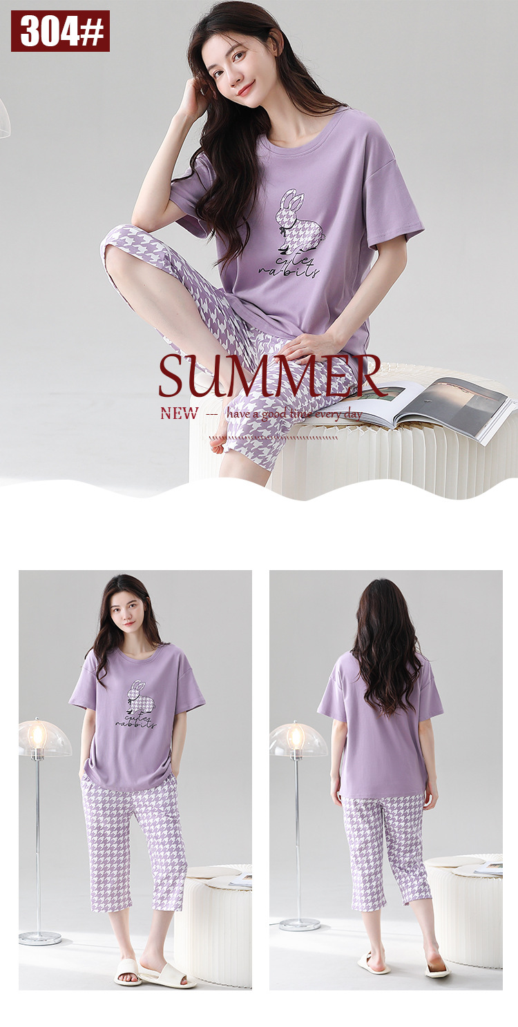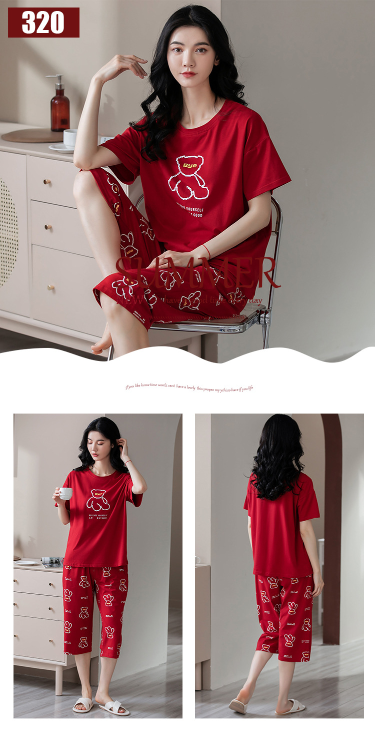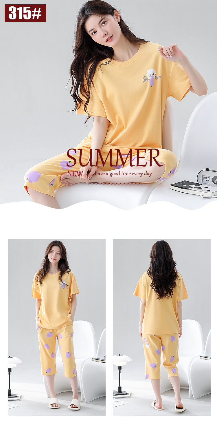 가슴 패드가 있는 여성용 100% 면 잠옷, 순면 여름용 얇은 라운드넥 반팔 7부 바지, 여름철 외출복으로도 착용 가능한 홈웨어스토어 가기