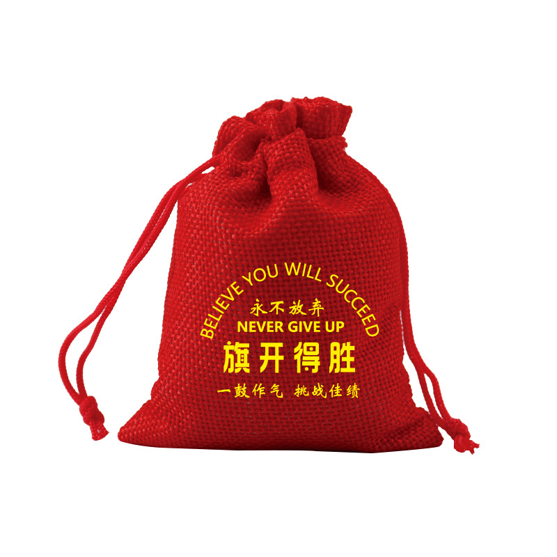 • 성공적인 시작, 큰 붉은 삼베 가방, 13x18cm