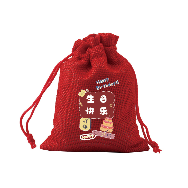 • 생일 축하해요; 큰 빨간 삼베 가방; 13x18cm