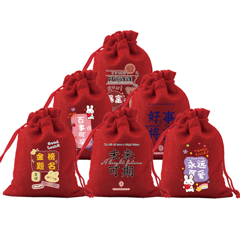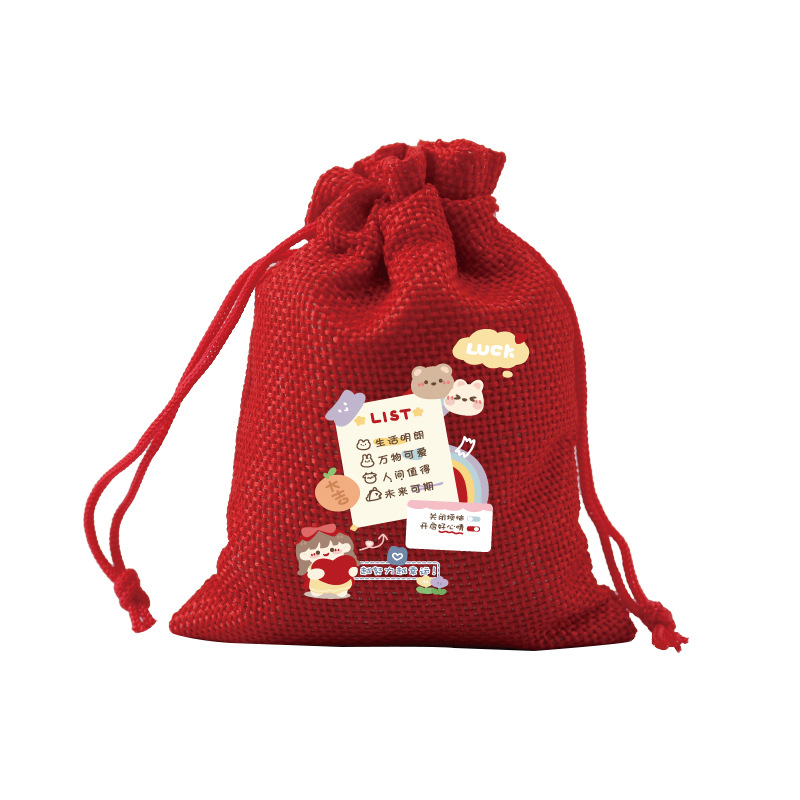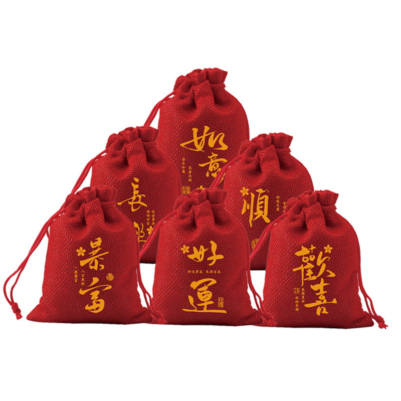 • 행운을 빌어요; 큰 빨간 삼베 가방; 13x18cm