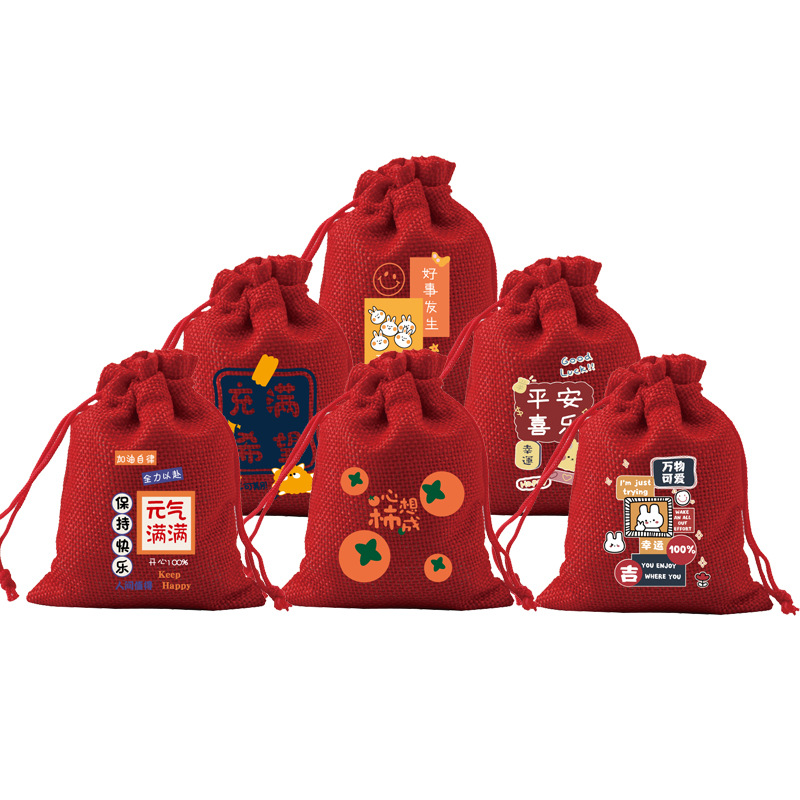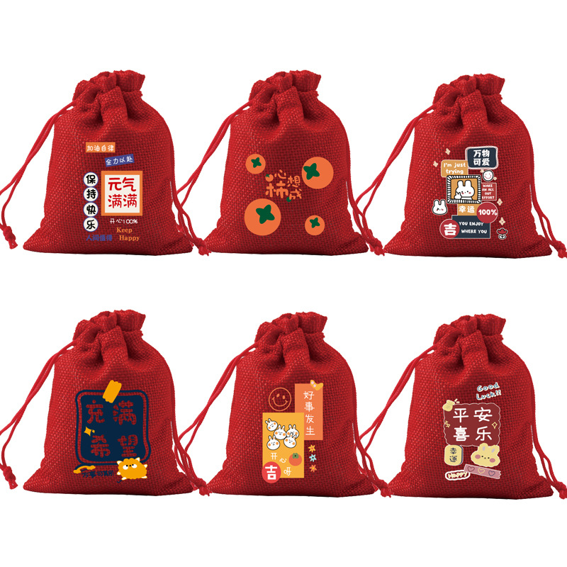 스팟 축복 빅 레드 린넨 선물 가방 학생 사탕 보관 가방 선물 졸라 매는 끈 포장 가방 반환 선물 가방