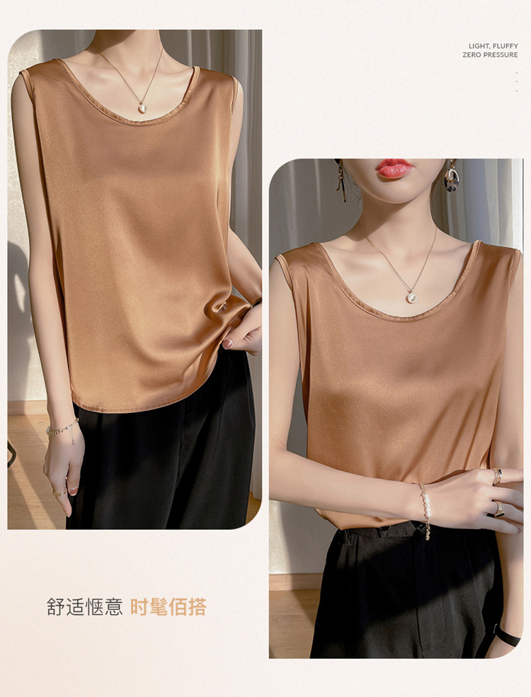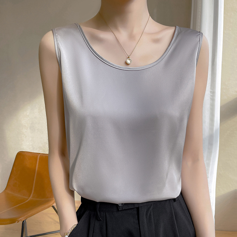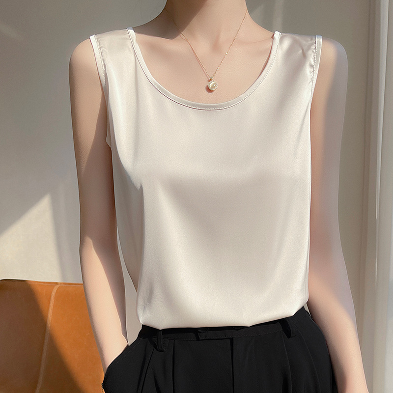 여성용 크로스보더 라운드넥 민소매 탑, 정장 이너웨어 또는 아우터웨어로 착용 가능, 프렌치 스타일, 2025년 여름스토어 가기