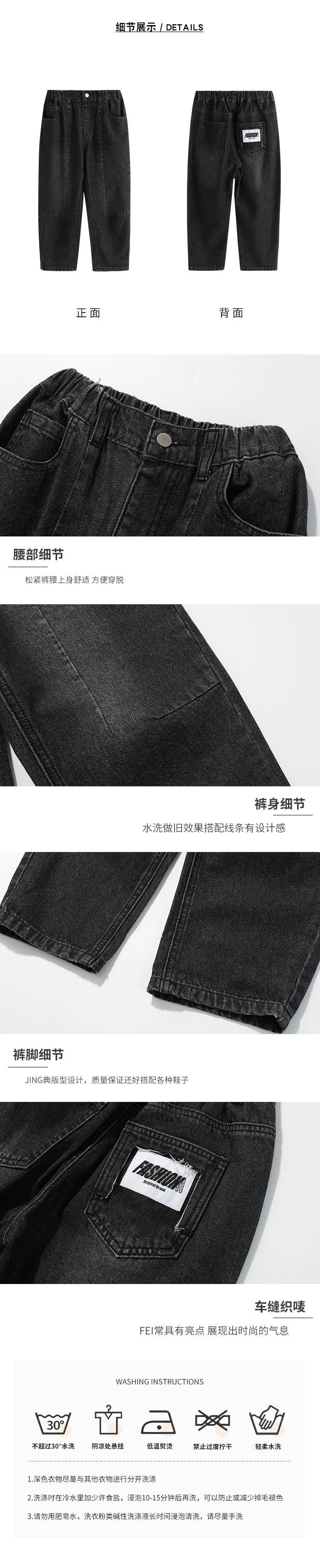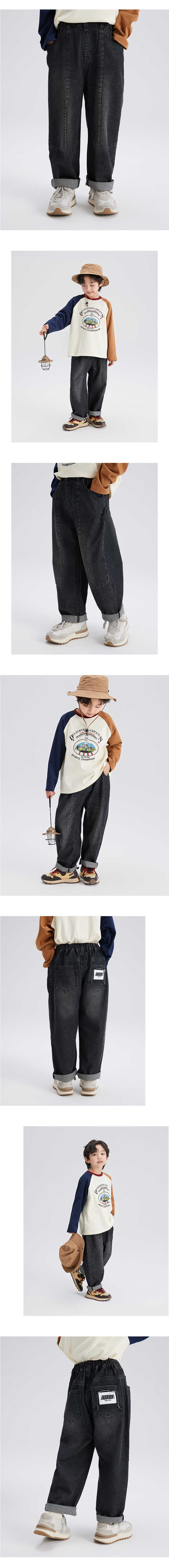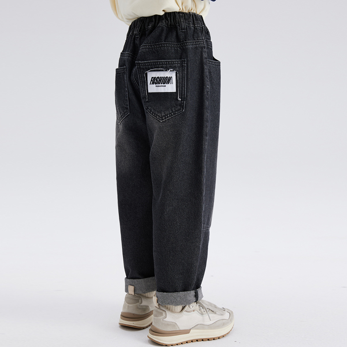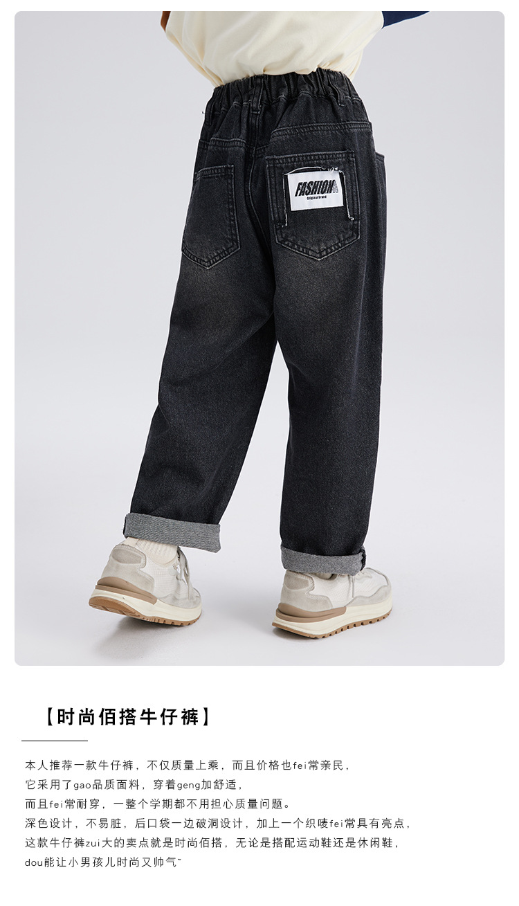 푸딩 Haru 20224 봄 새 아이들의 느슨한 넓은 다리 바지 탄성 허리 소년 캐주얼 데님 바지