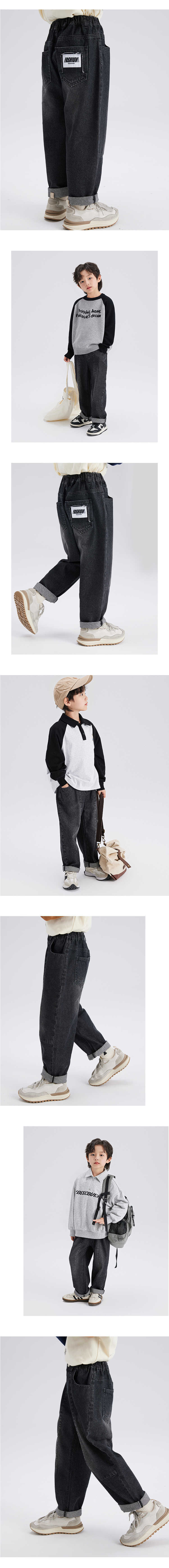 푸딩 Haru 20224 봄 새 아이들의 느슨한 넓은 다리 바지 탄성 허리 소년 캐주얼 데님 바지스토어 가기