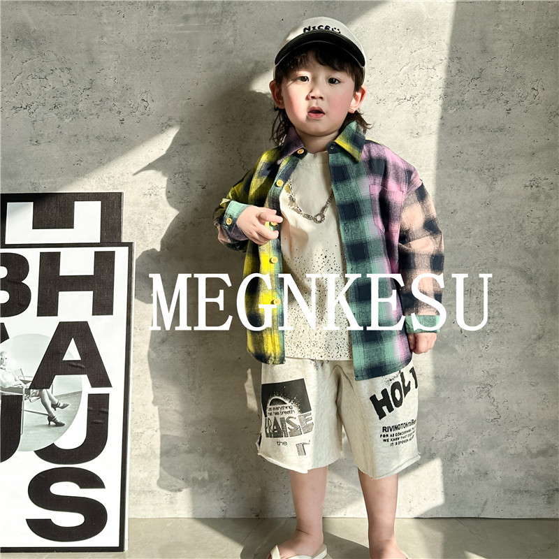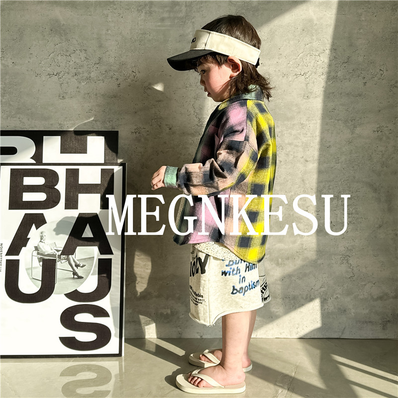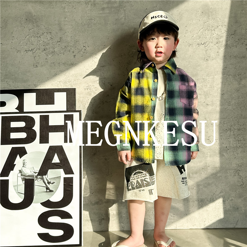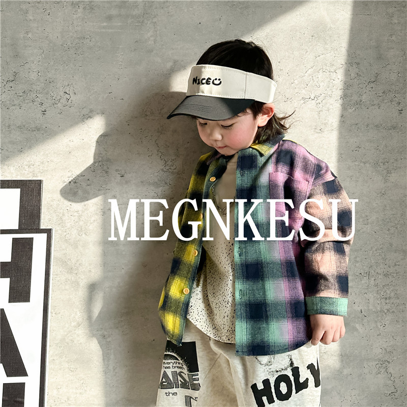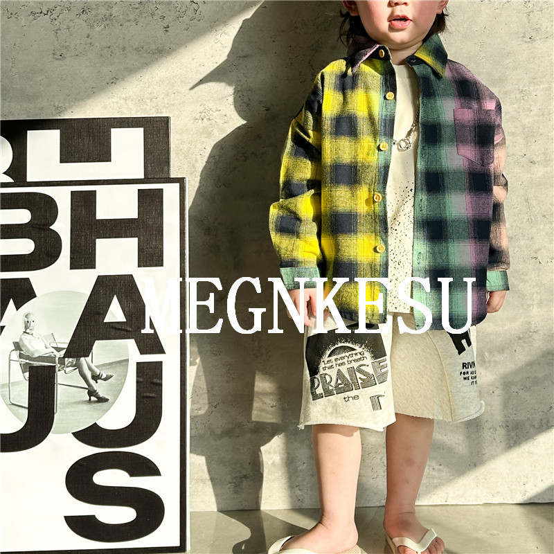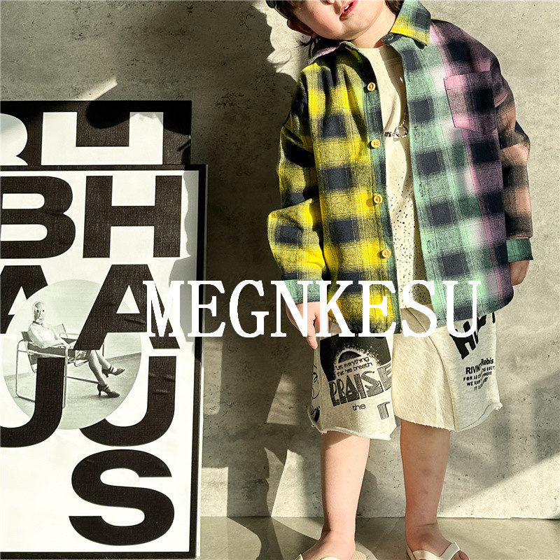 Mengkesu 어린이 긴팔 셔츠 2024 봄과 여름 새로운 색상과 일치하는 아기 태양 보호 셔츠 소년 격자 무늬 셔츠스토어 가기