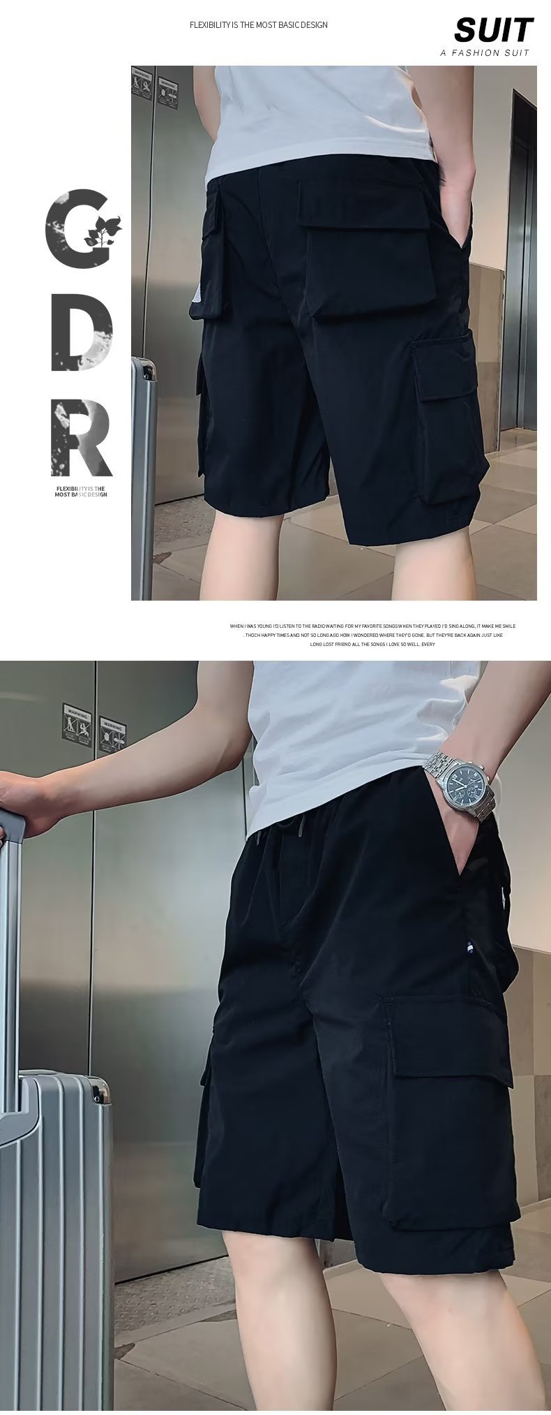 남성 반바지 여름 얇은 2024 새로운 캐주얼 툴링 5 점 패션 브랜드 비치 반바지 중형 바지 겉옷스토어 가기
