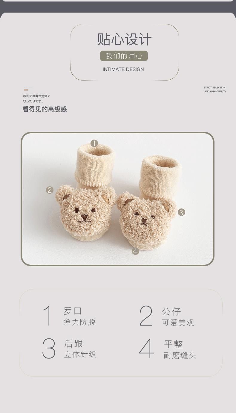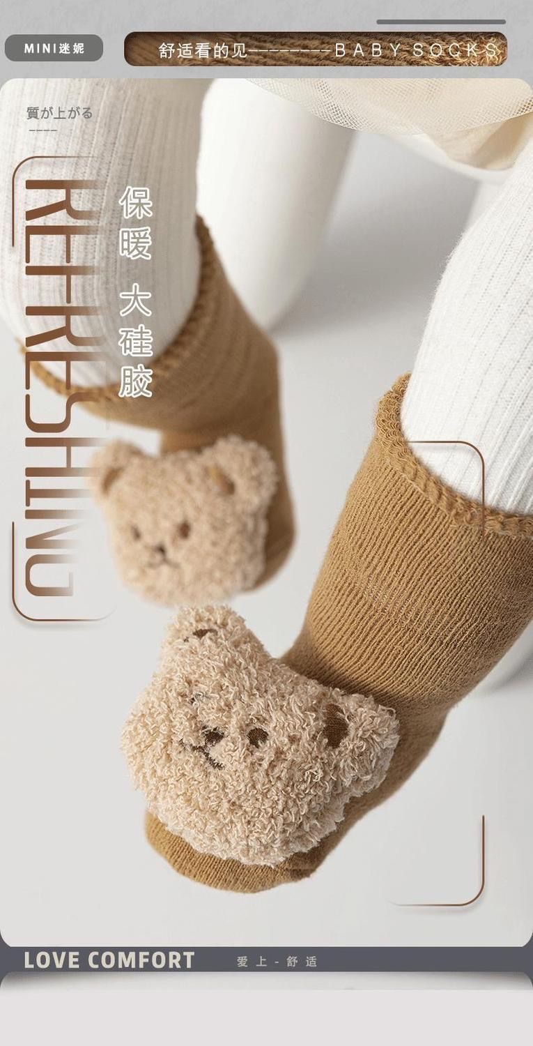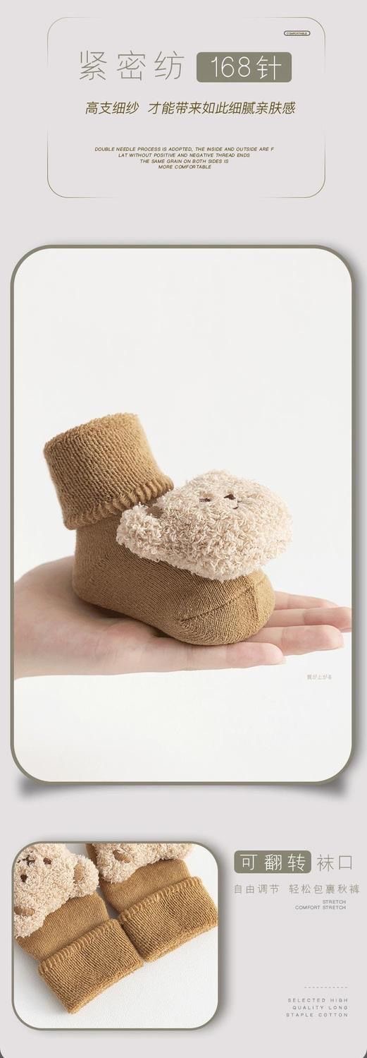아기 양말 3 차원 인형 테리 기모 두꺼운 가을과 겨울 중반 송아지 미끄럼 방지 바닥 양말 유아 양말 도매스토어 가기