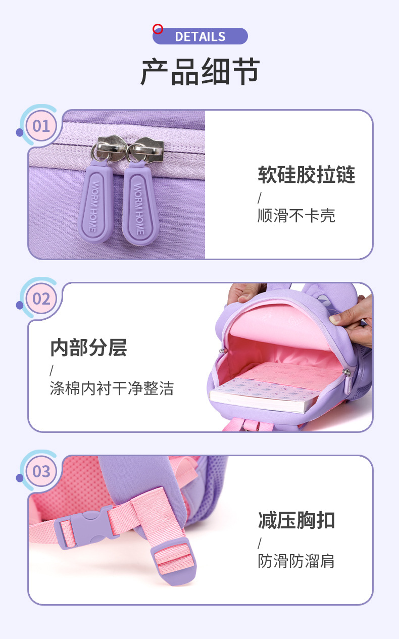 유치원 가방, 남아 여아 아기용, 귀엽고 가벼운 1-3-6세 어린이 외출용 백팩, 여행용 배낭