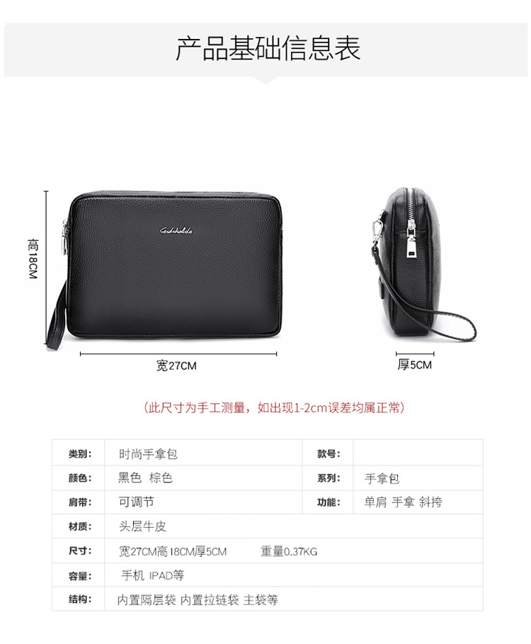 새로운 남성 휴대용 클러치 간단한 비즈니스 캐주얼 핸드백 경량 대용량 고감도 휴대 전화 가방스토어 가기