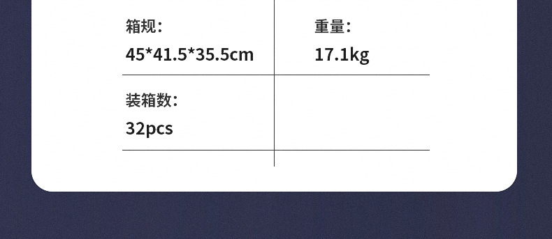 箱规:45*41.5*35.5cm 32pcs 17.2kg