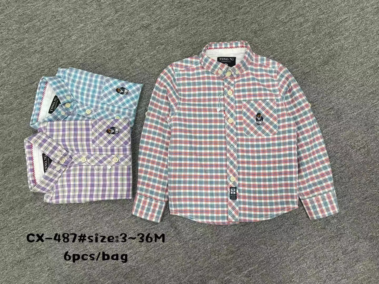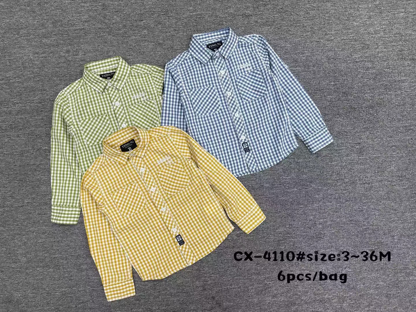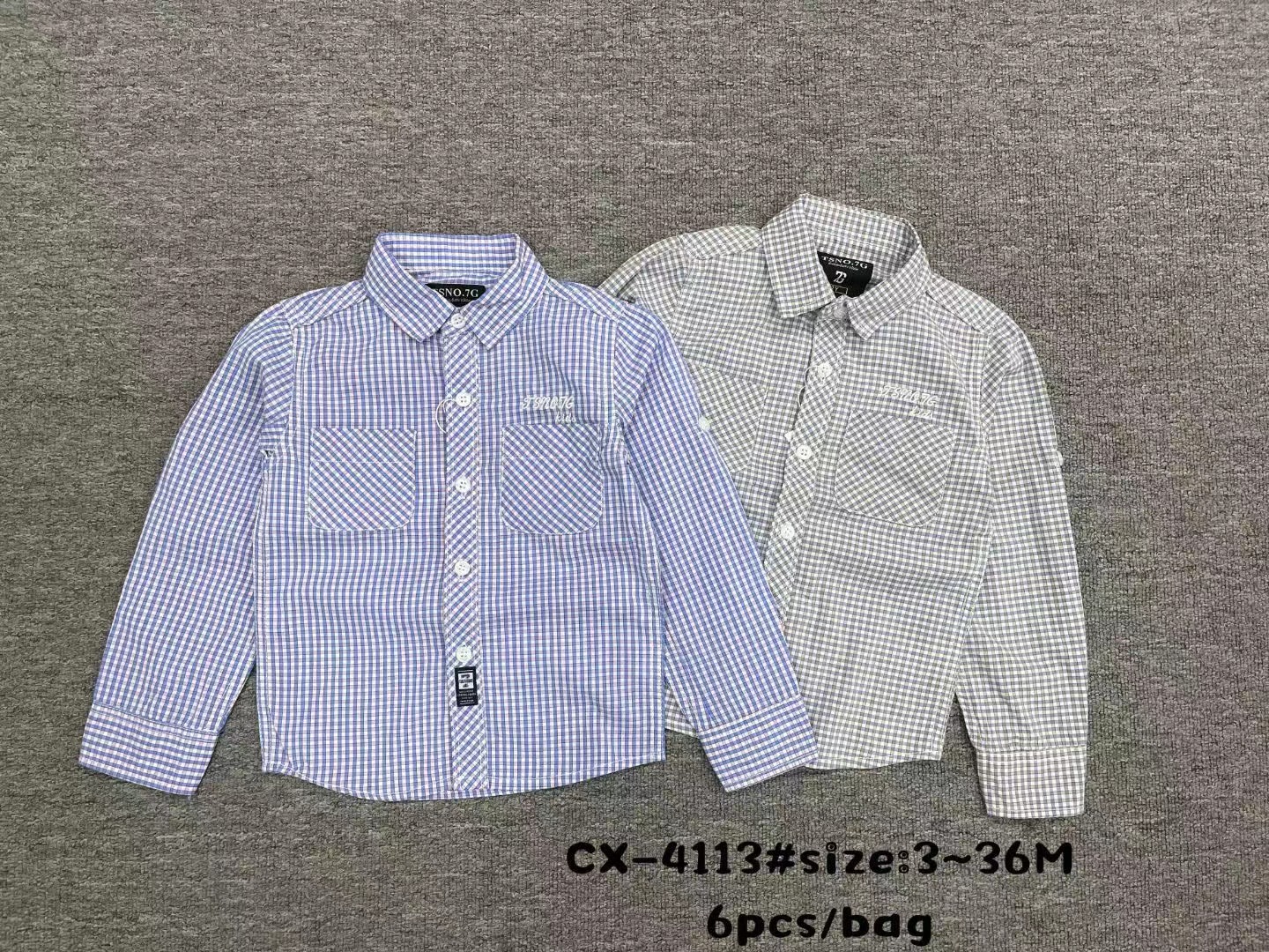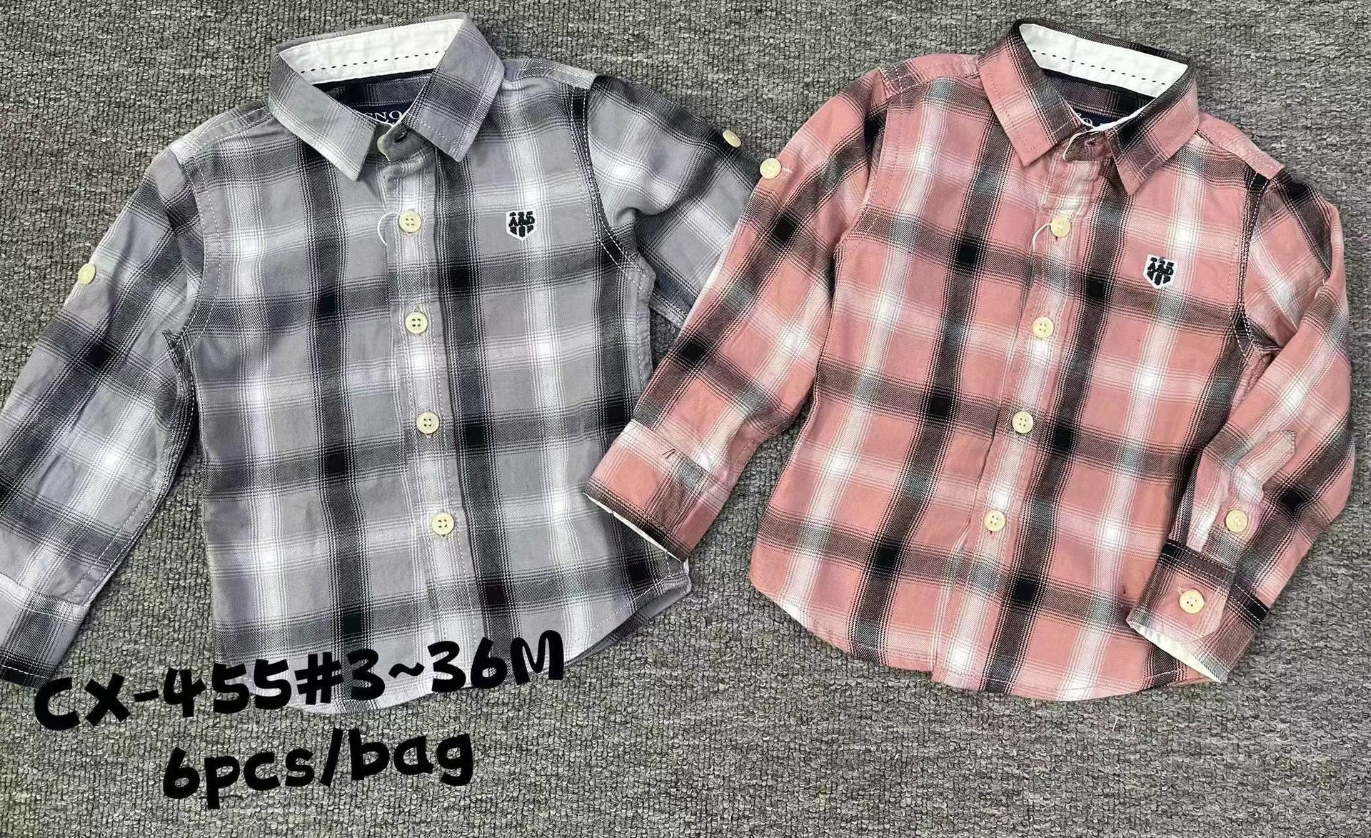 새로운 대외 무역 셔츠 긴 소매 어린이 가을과 겨울 3-36M 면 셔츠 포켓 인쇄 자수 옷깃 버튼 CX447스토어 가기