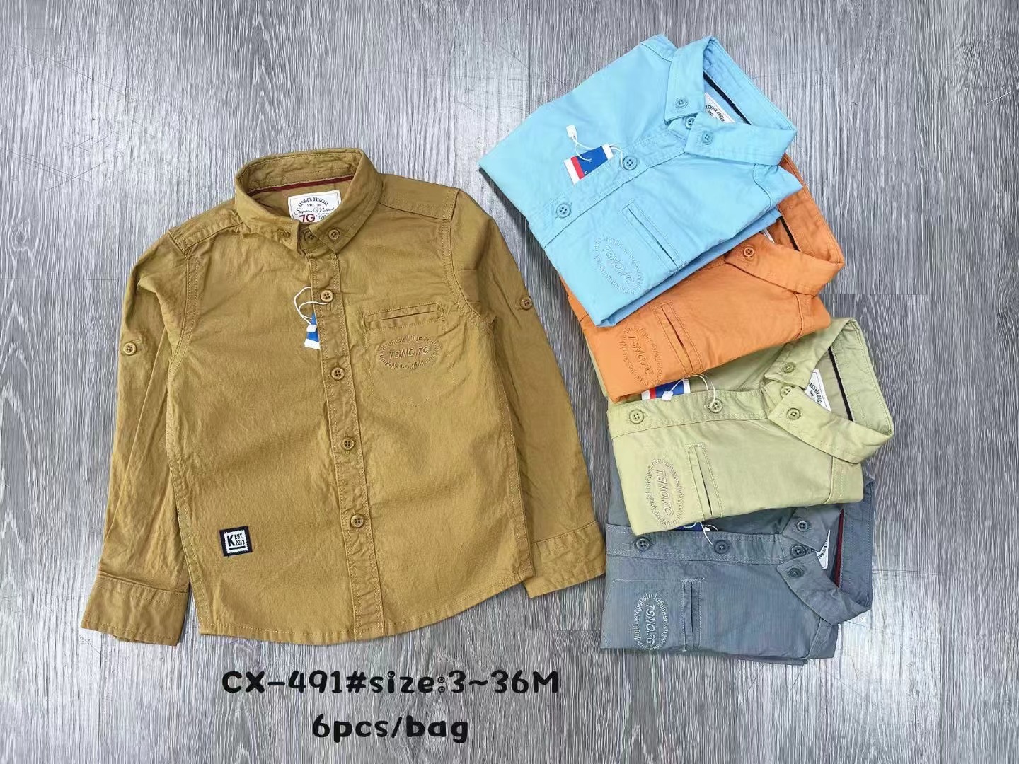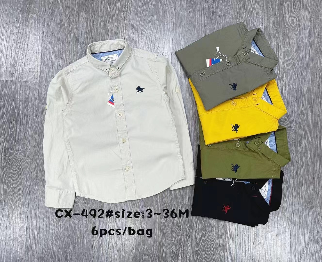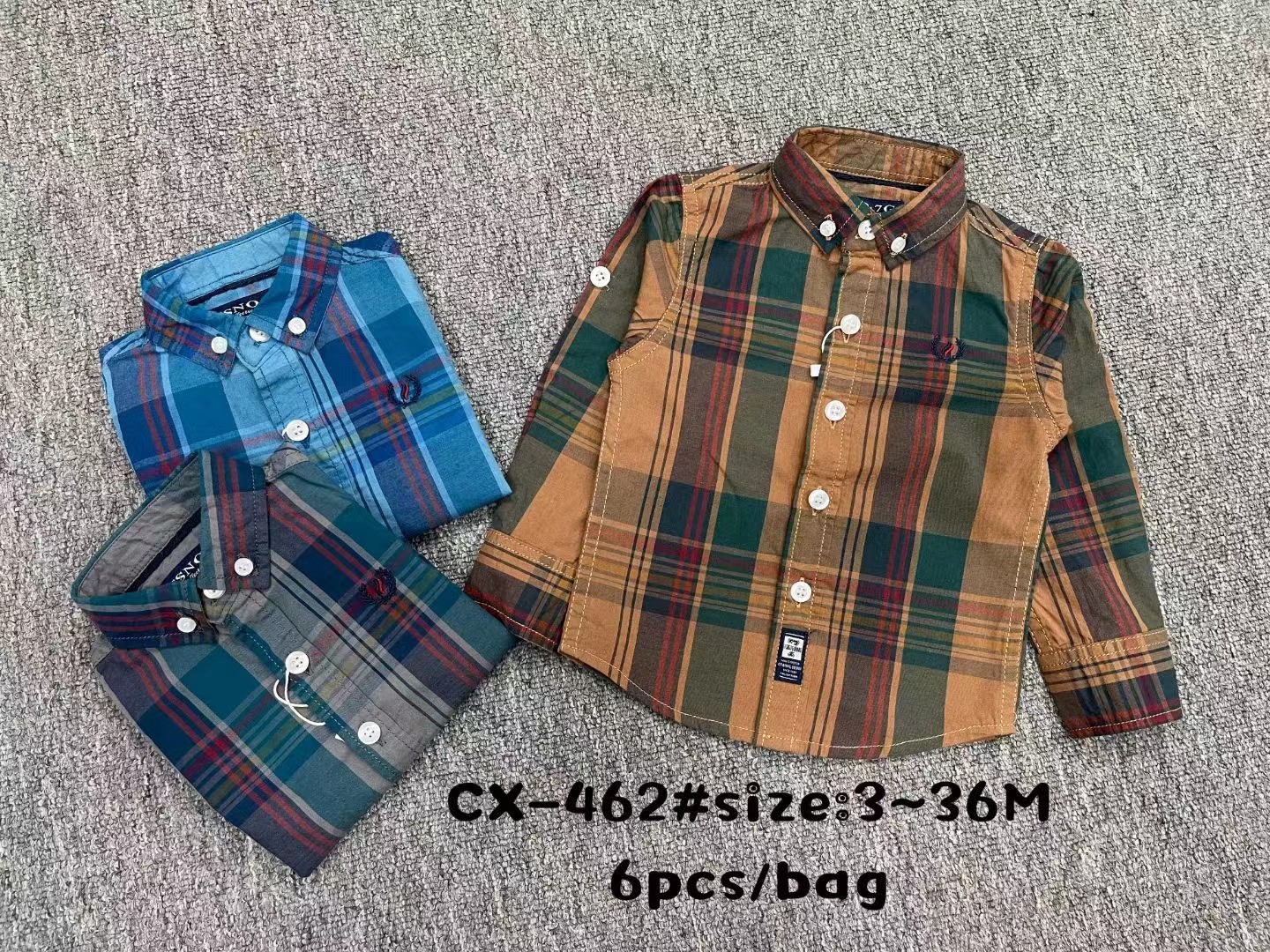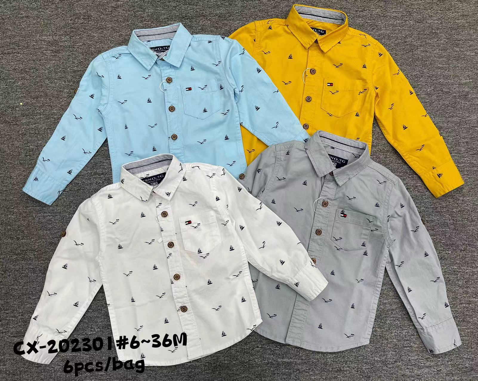 새로운 대외 무역 셔츠 긴 소매 어린이 가을과 겨울 3-36M 면 셔츠 포켓 인쇄 자수 옷깃 버튼 CX447스토어 가기