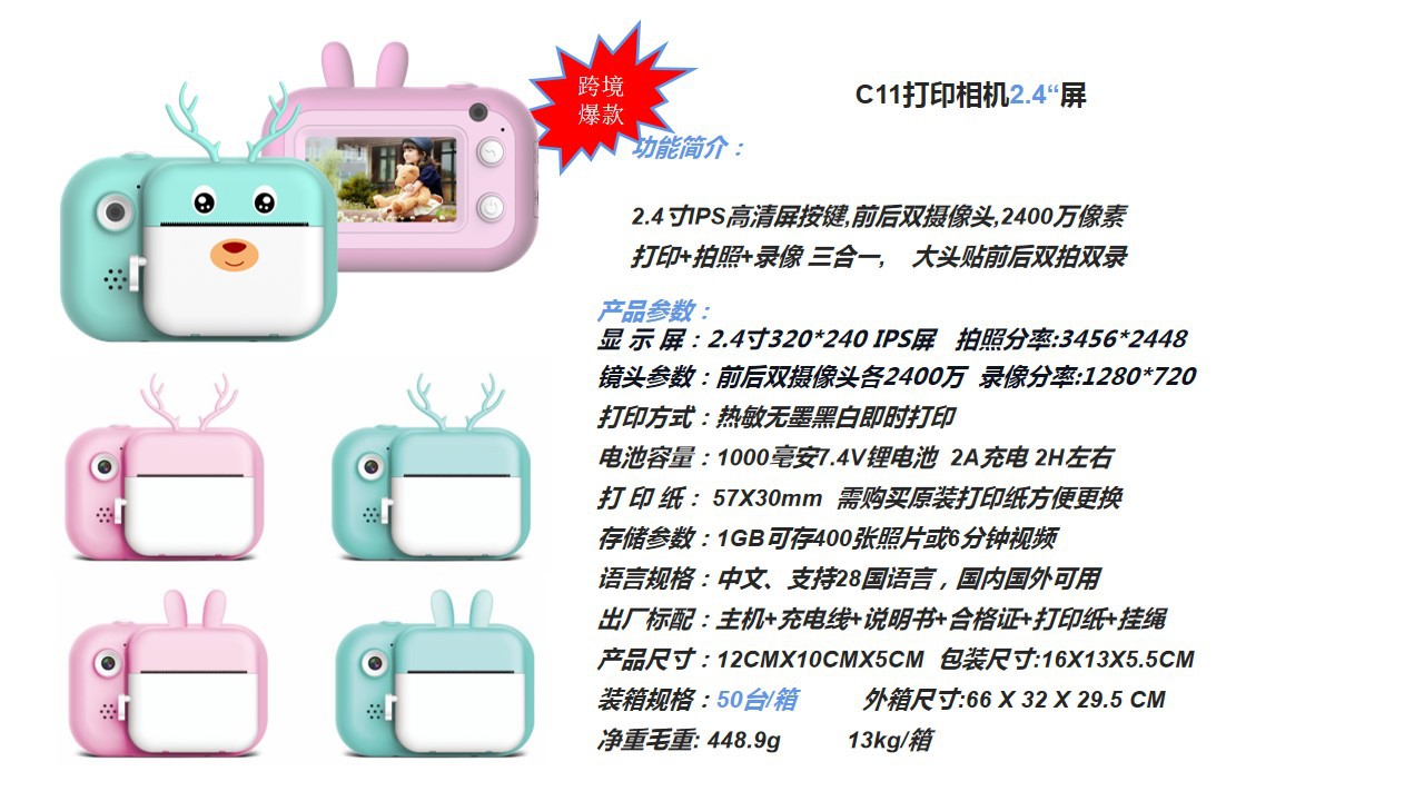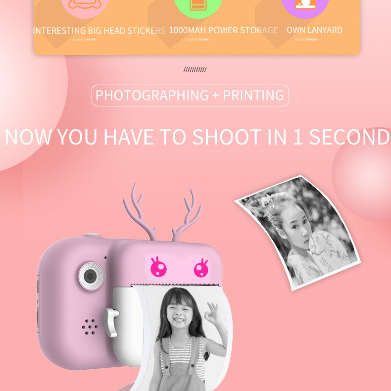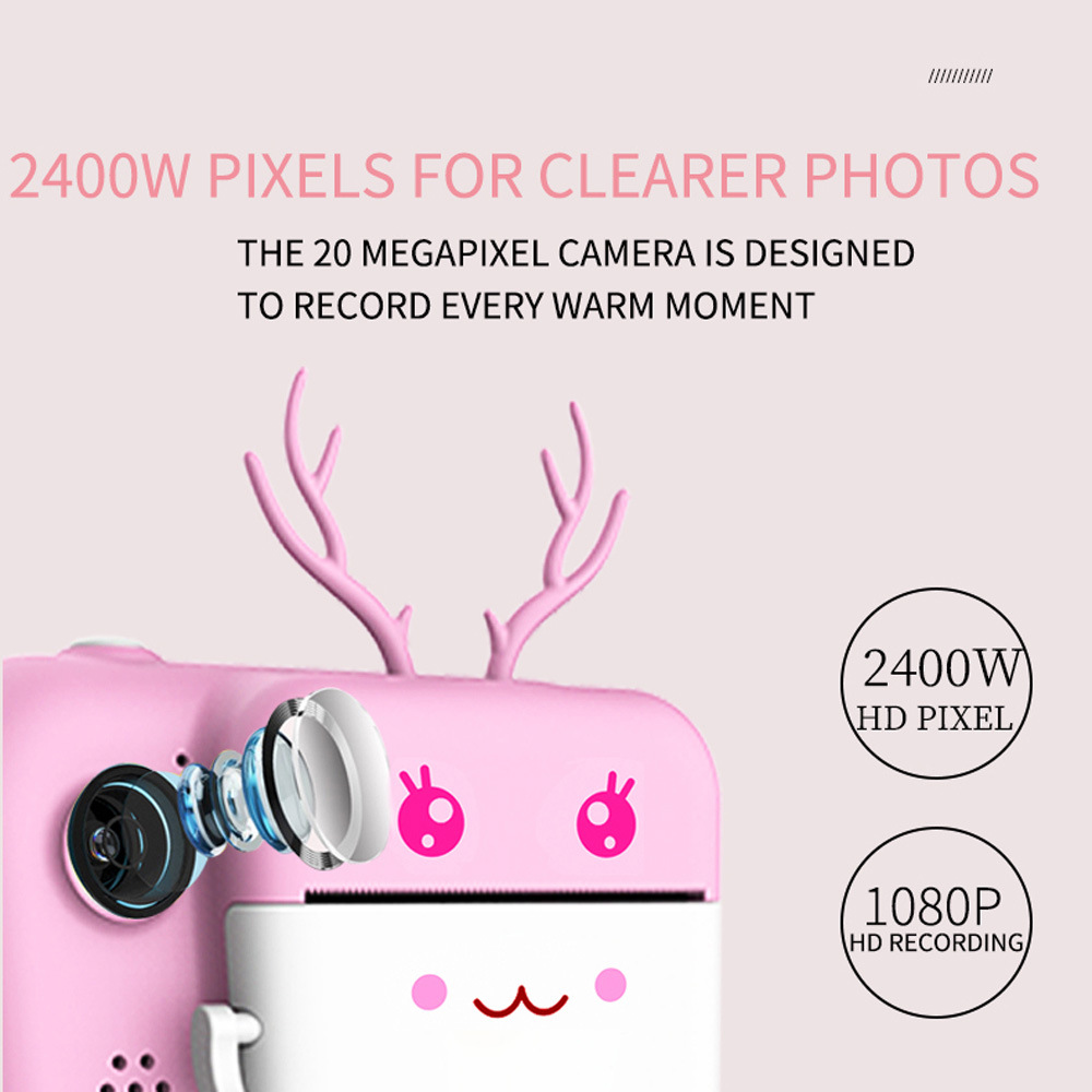 • 사슴 2.4 인치 핑크 카메라 + 3 롤 종이