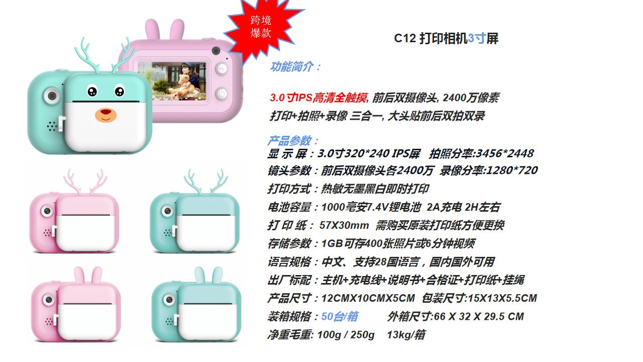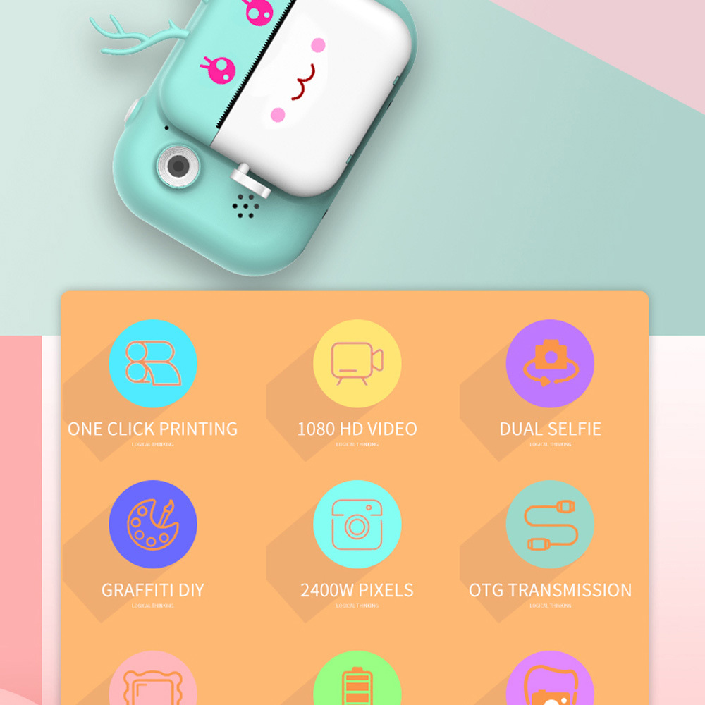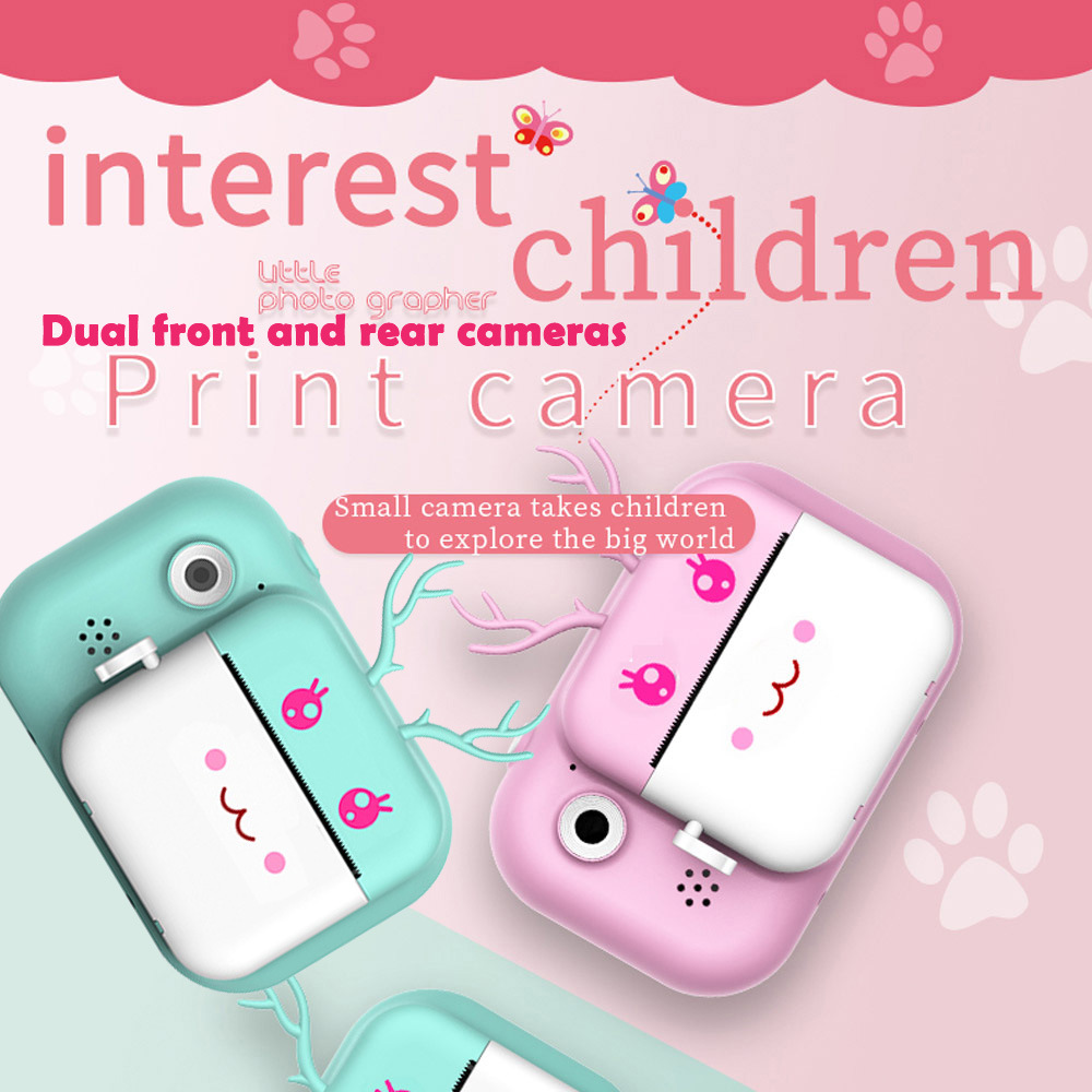 국경 간 어린이 카메라 폴라로이드 열 인쇄 카메라 미니 듀얼 렌즈 스포츠 사진 선물 장난감 인쇄