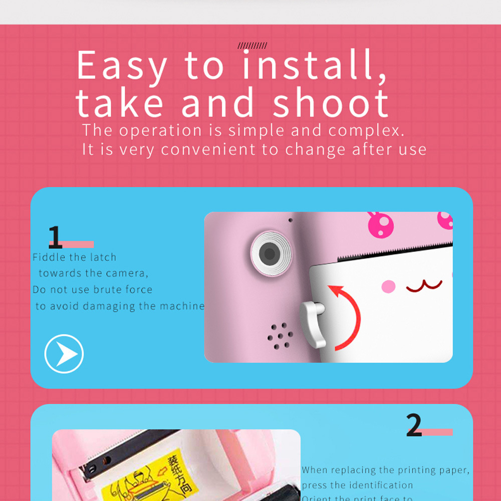 • 토끼 2.4 인치 핑크 카메라 + 3 롤 종이
