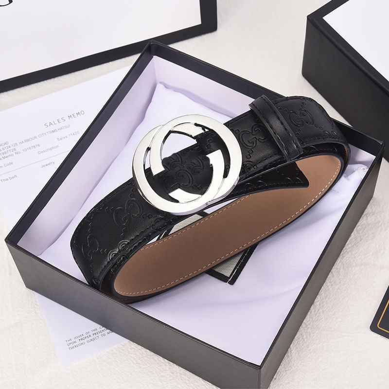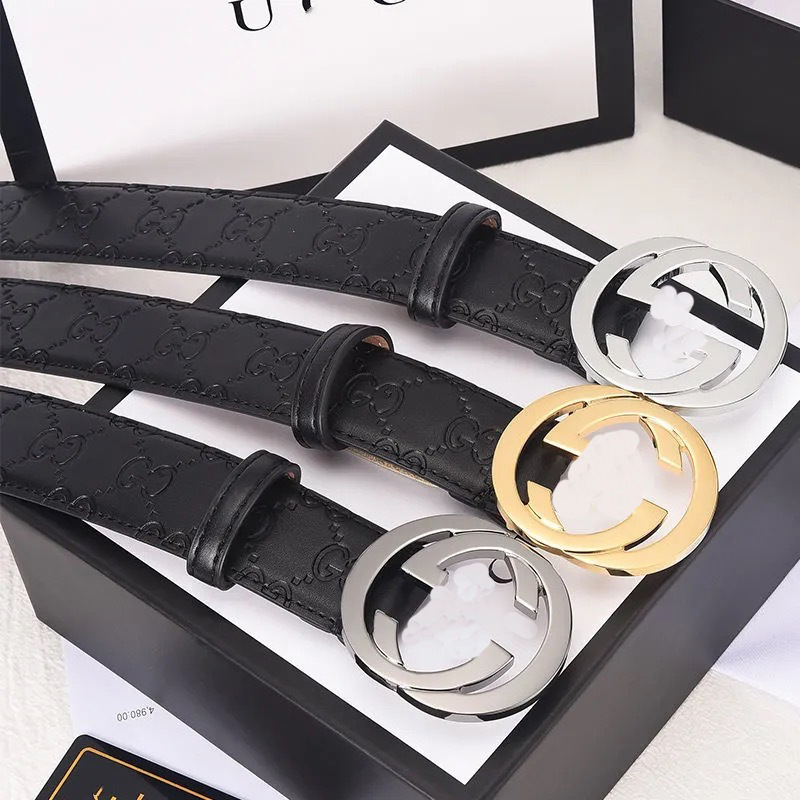 신형 한국 스타일 남성용 가죽 벨트 더블 G 플랫 버클 가죽 벨트 알파벳 패션 트렌드 다용도 바지 벨트 공장 직판스토어 가기