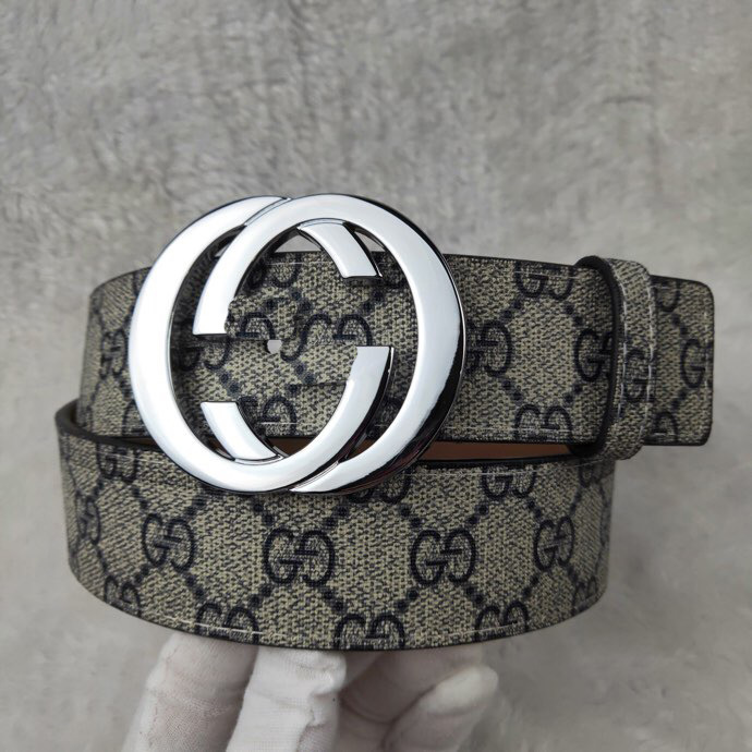 • G 천 패턴 흰색 실버 버클