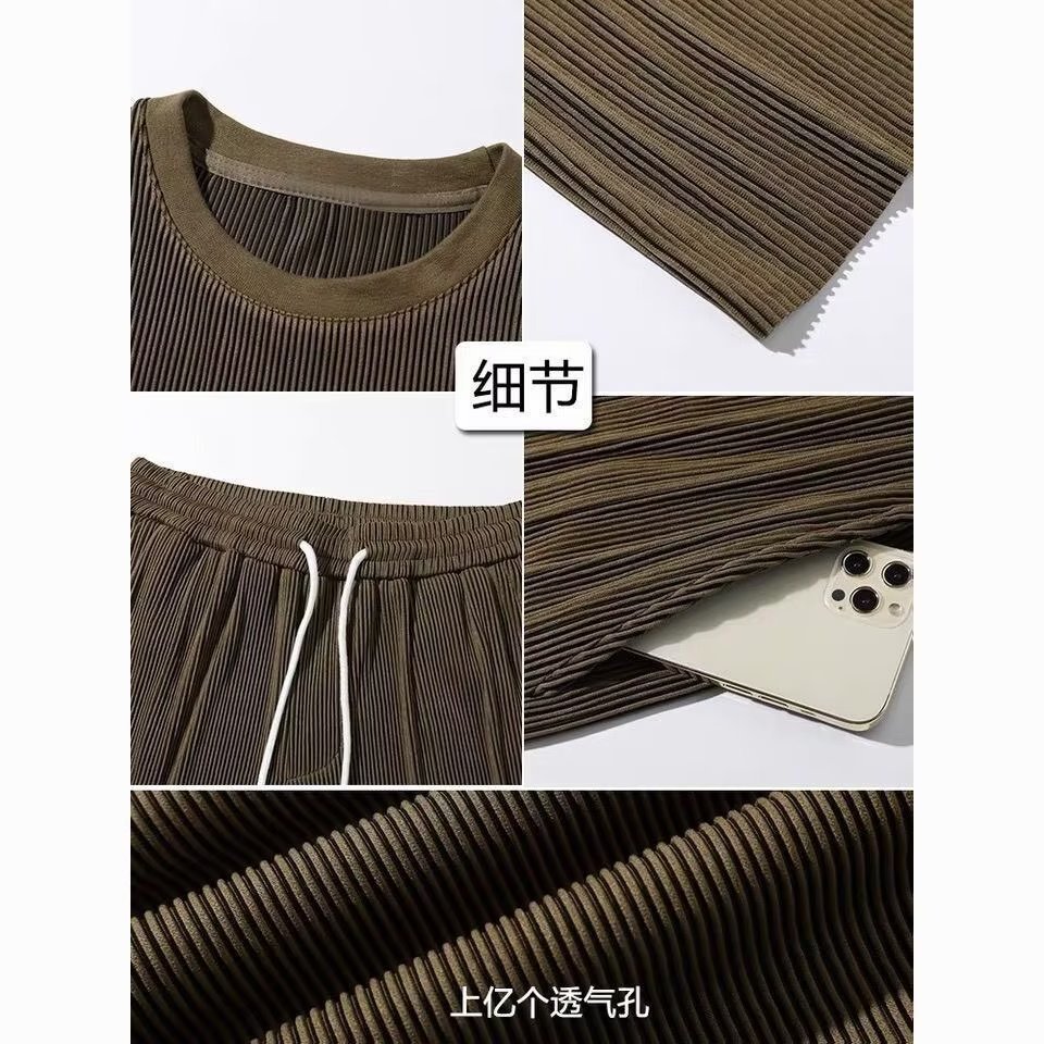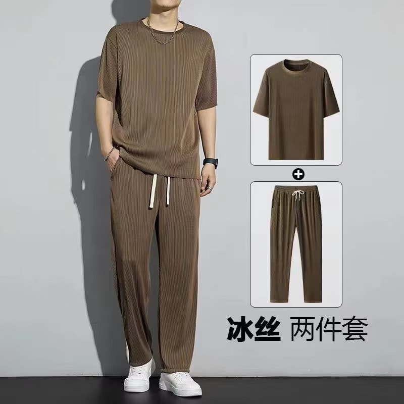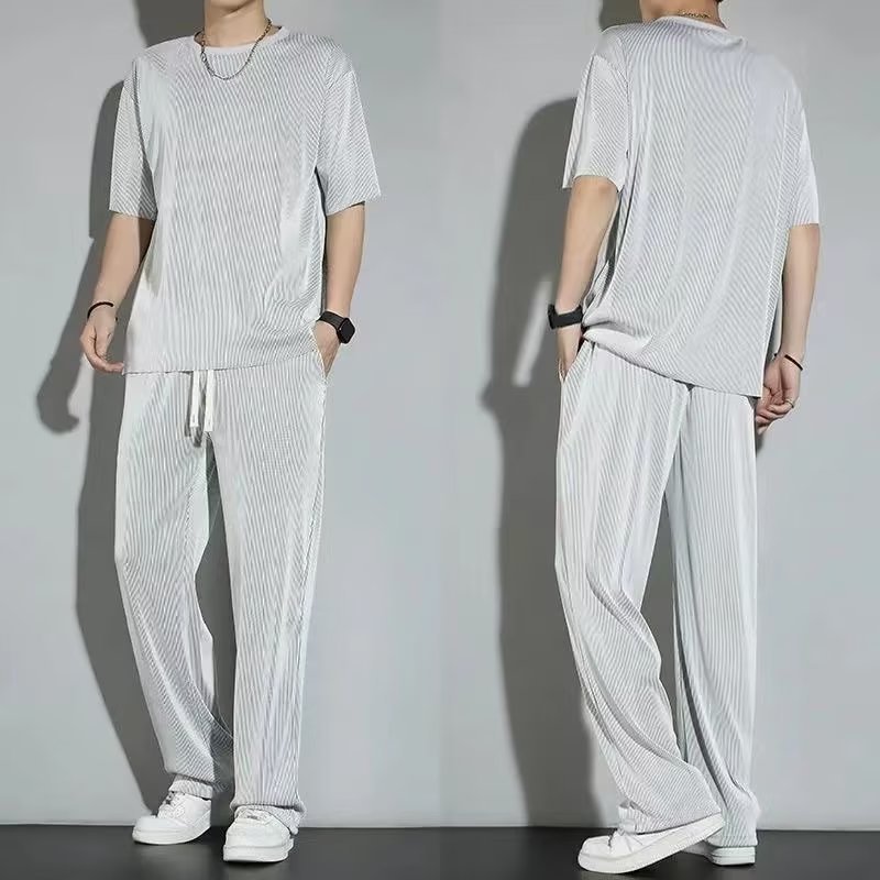 2023 새로운 스포츠 세트 남성 여름 얇은 캐주얼 긴 바지 반팔 티셔츠 빠른 건조 옷 세트