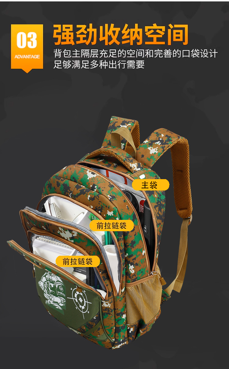 국경 간 위장 닭 3 단계 가방 초등학생 배낭 위장 어린이 책가방 남성 1-3-6 학년 배낭