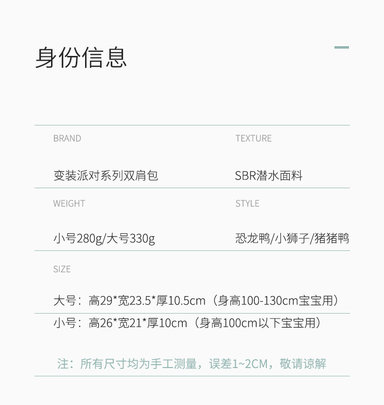 • 공룡 오리 스몰 사이즈 (100cm 미만의 아기에게 적합)