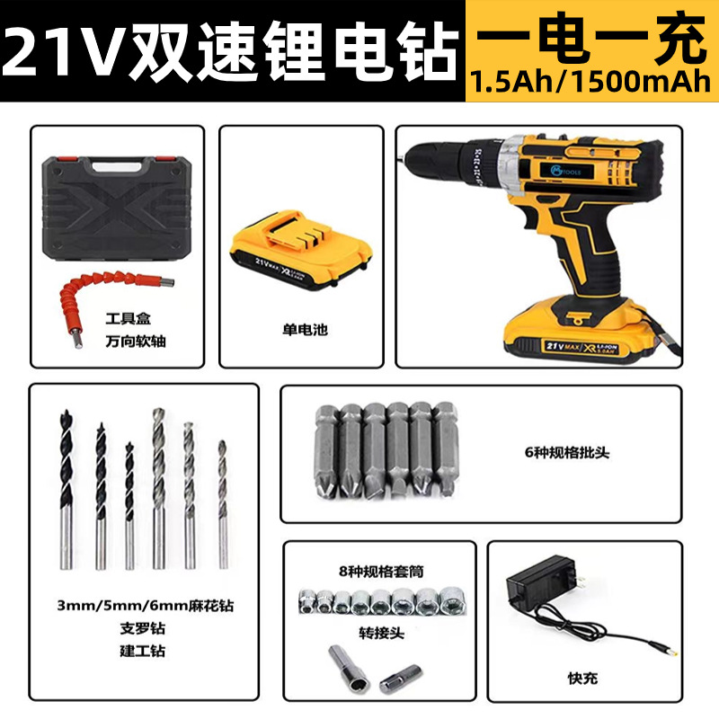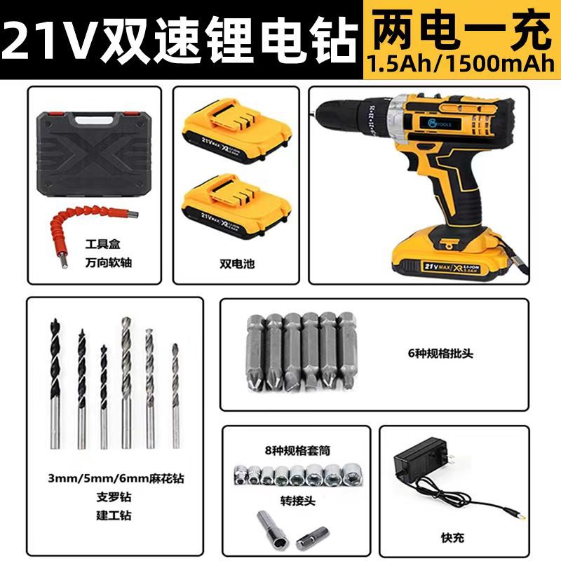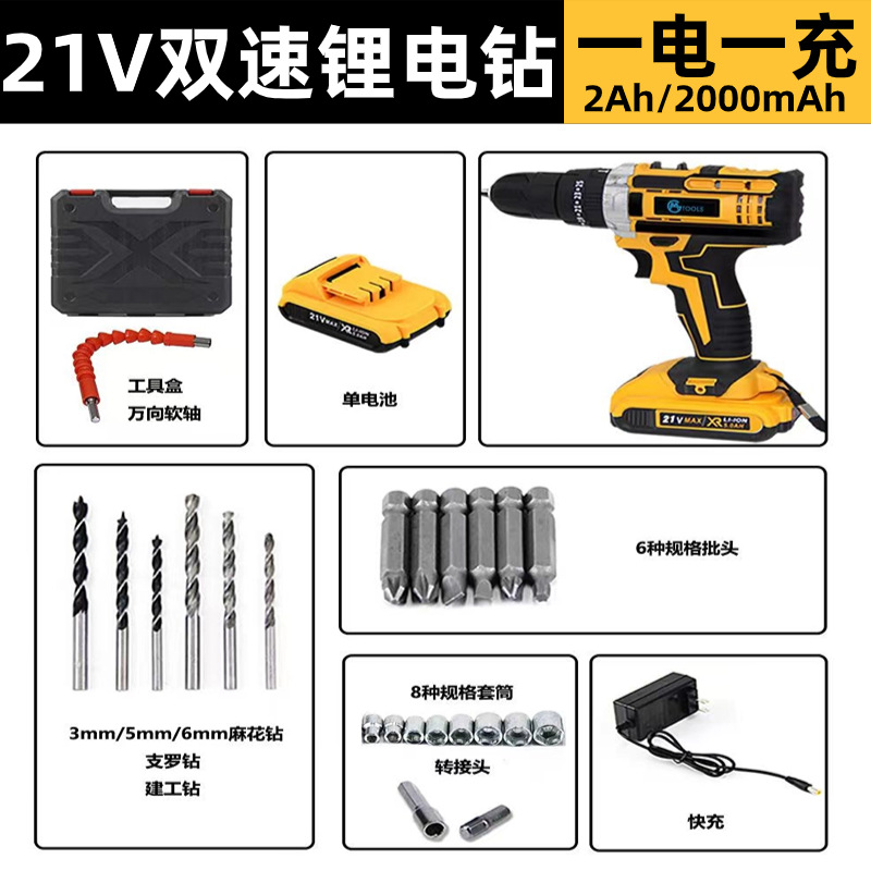 21v 다기능 2단 속도 리튬 배터리 충전식 드릴, 전동 드라이버, 핸드 드릴, 무단 속도 조절스토어 가기