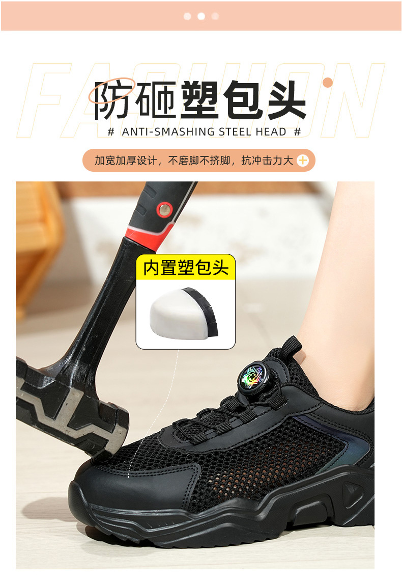 새로운 국경 로터리 버튼 노동 보호 신발 가볍고 편안한 스매싱 방지 플라스틱 헤드 안전 신발 제조 업체 도매