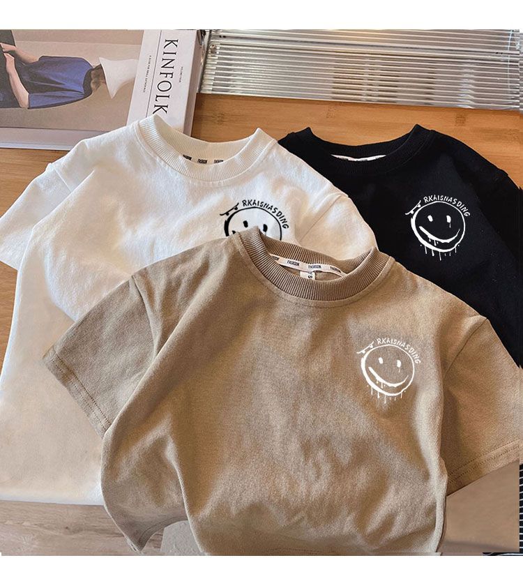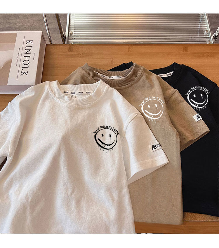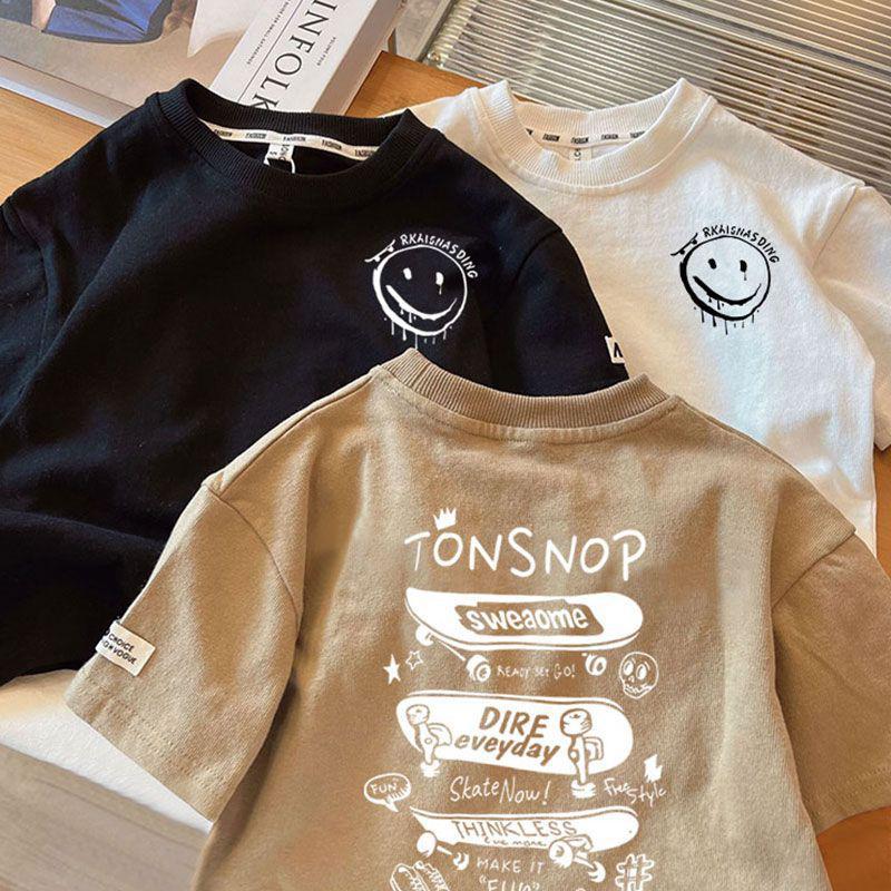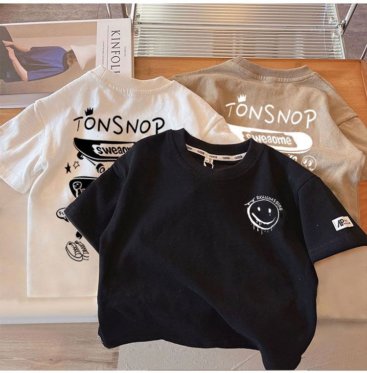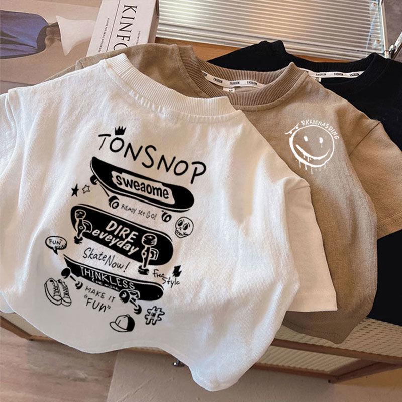 어린이 여름 소년의 반팔 티셔츠 순수한면 아기 트렌디 한 멋진 탑 2024 여름 새 소년의 느슨한 트렌디 t스토어 가기