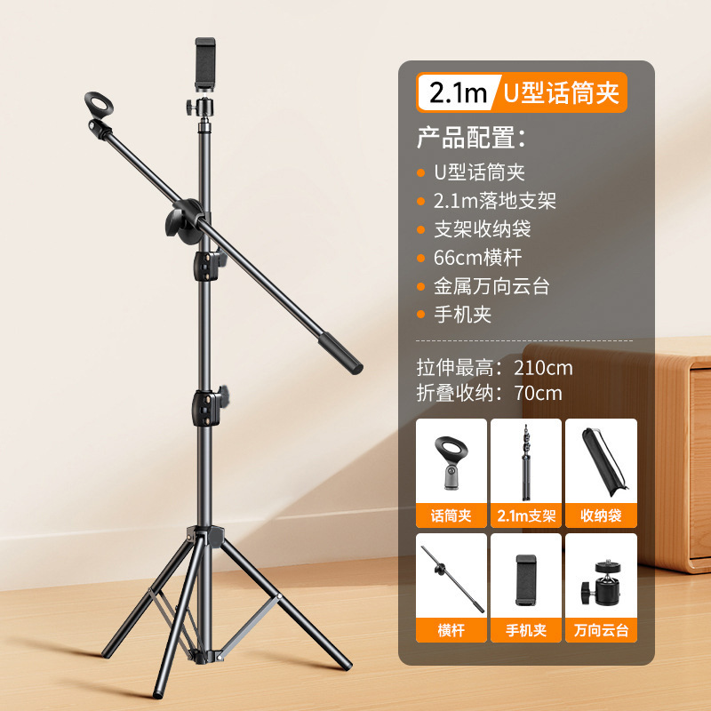 플로어 스탠드 마이크 스탠드 데스크탑 삼각대 마이크 금속 스탠드 휴대폰 라이브 방송 다기능 올인원 스탠드