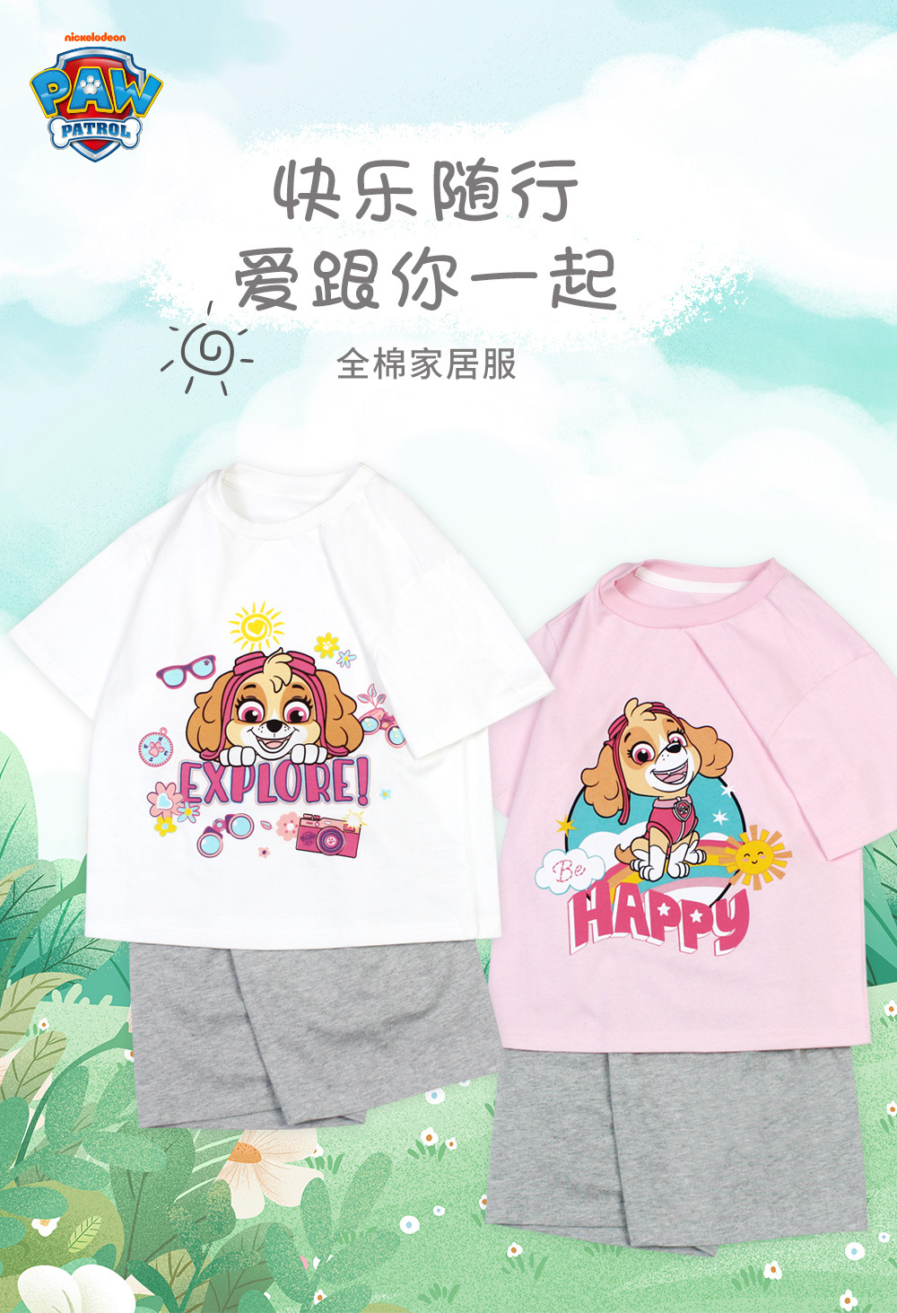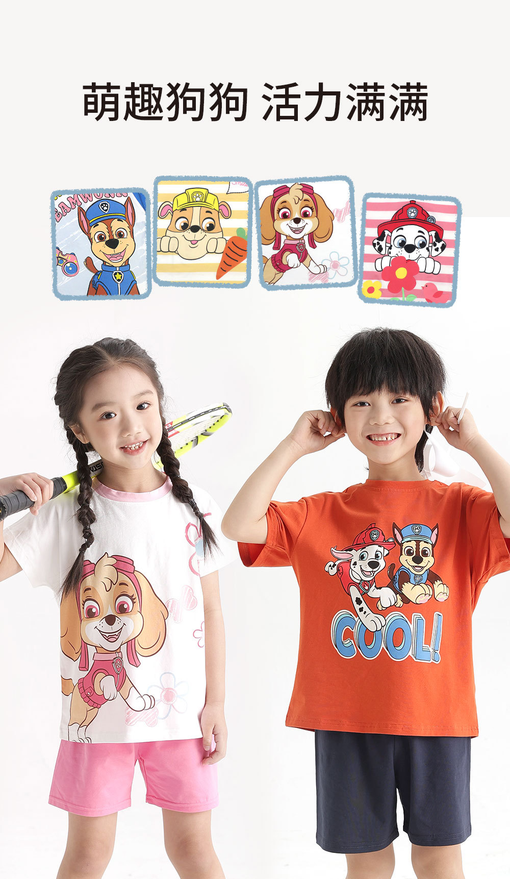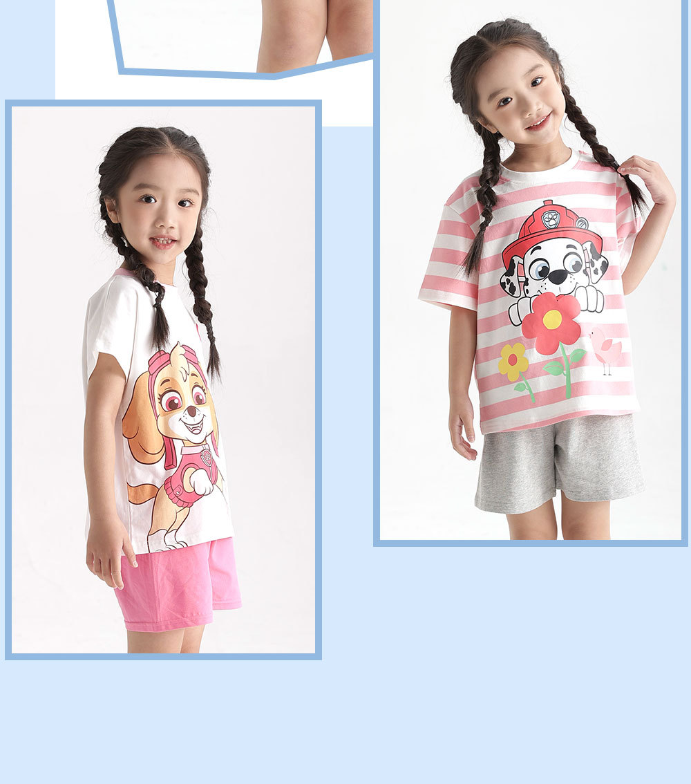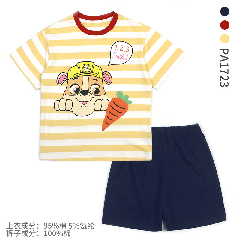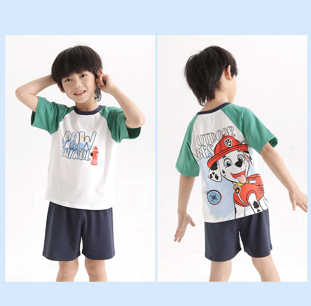 왕왕 어린이 잠옷 소년 반소매 면화 어린이 소녀 에어컨 옷 홈 의류 세트 도매스토어 가기