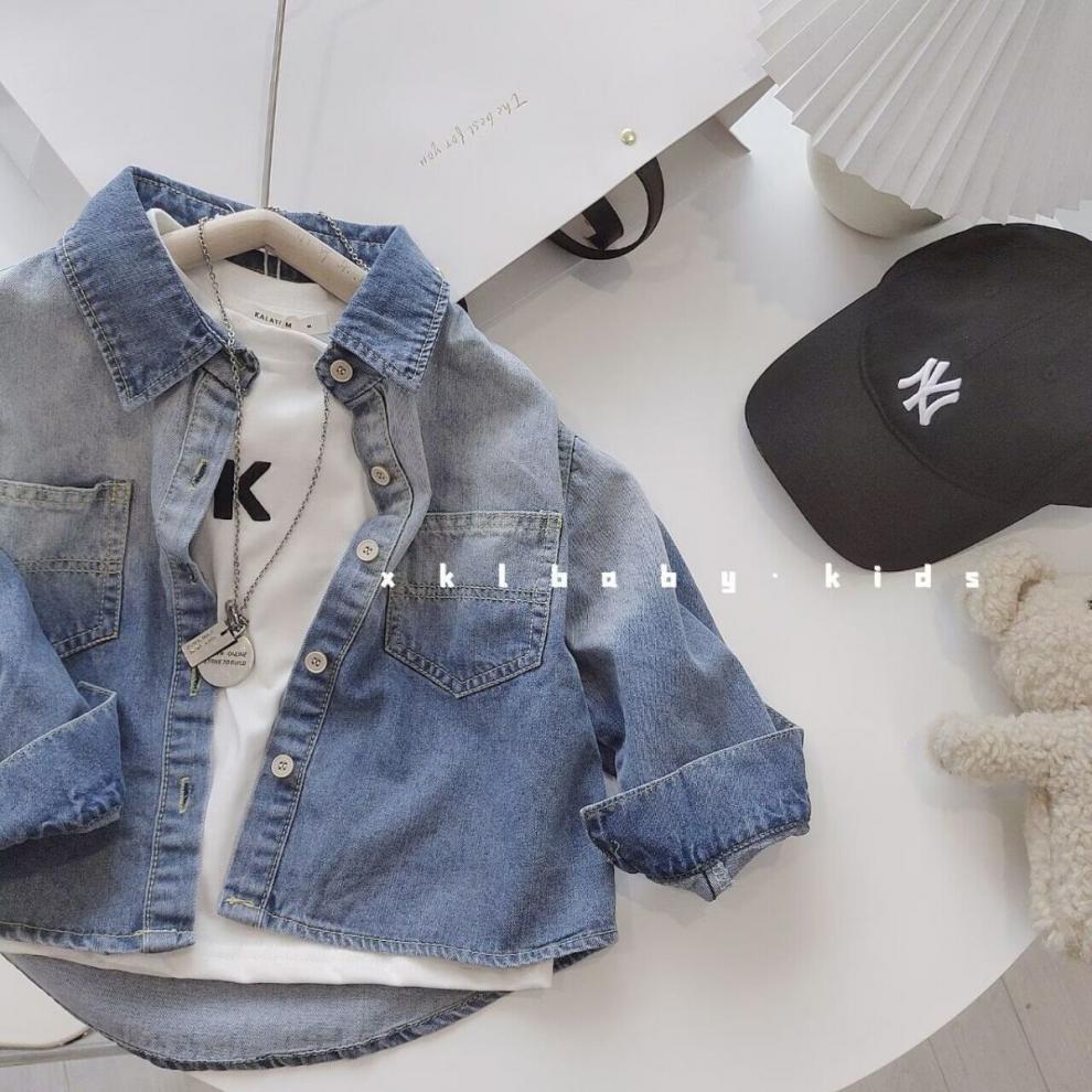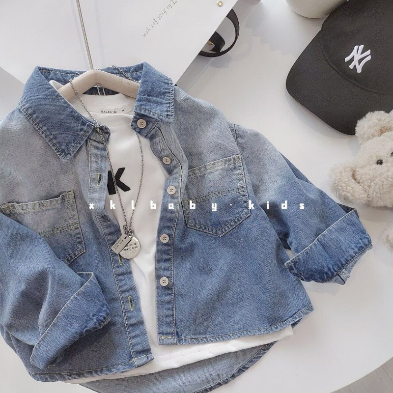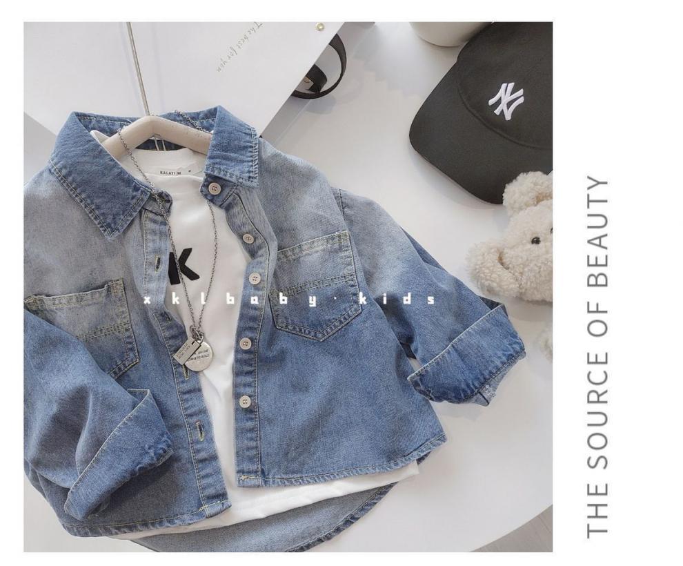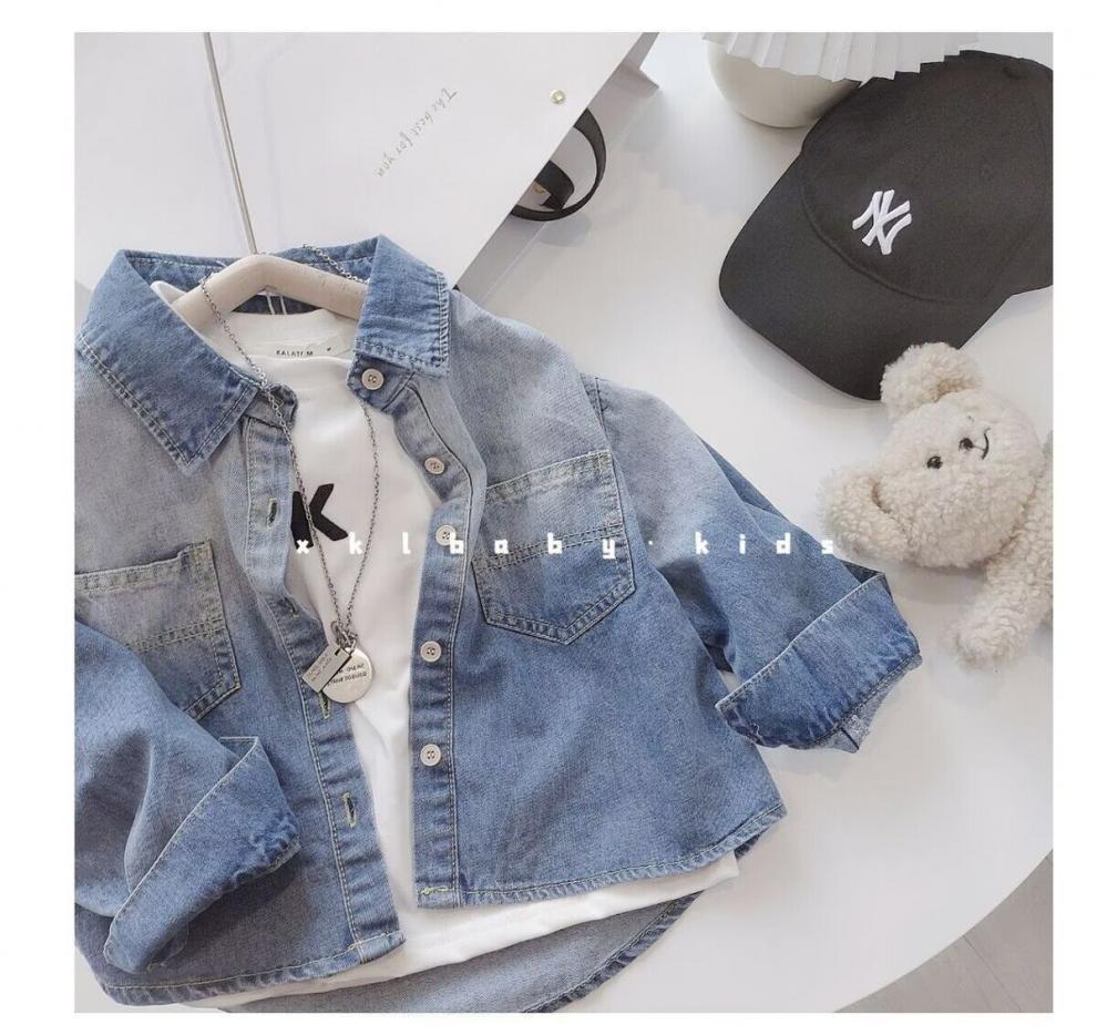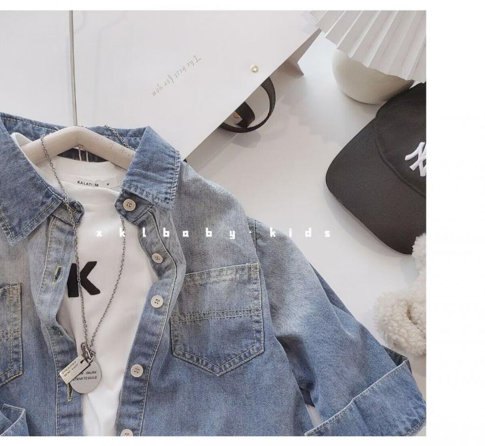아동 코트 소년 봄, 가을 그라데이션 색상 한국 스타일 데님 셔츠 새 아기 소년 코트 긴 소매 잘 생긴스토어 가기