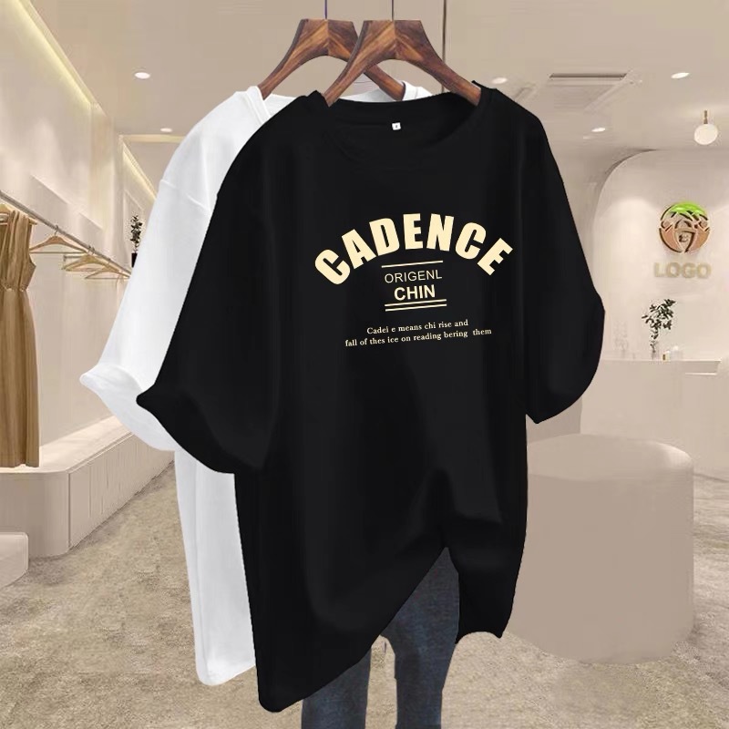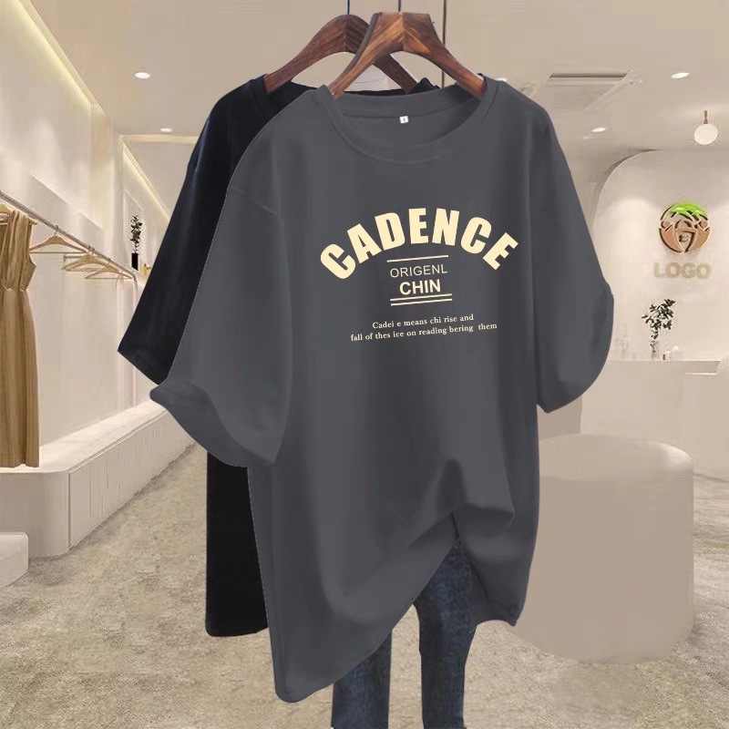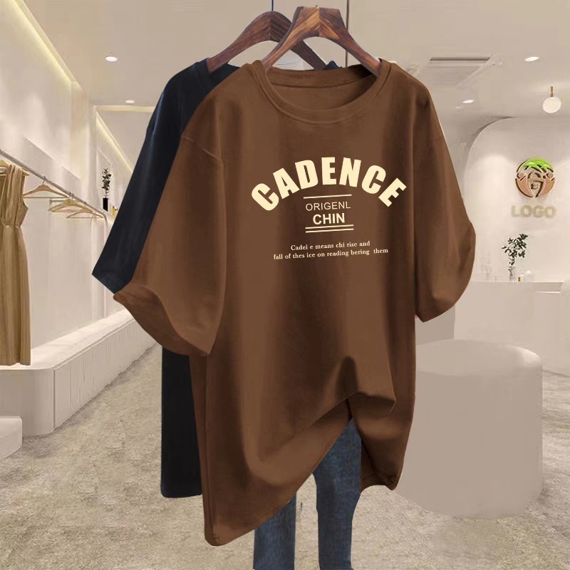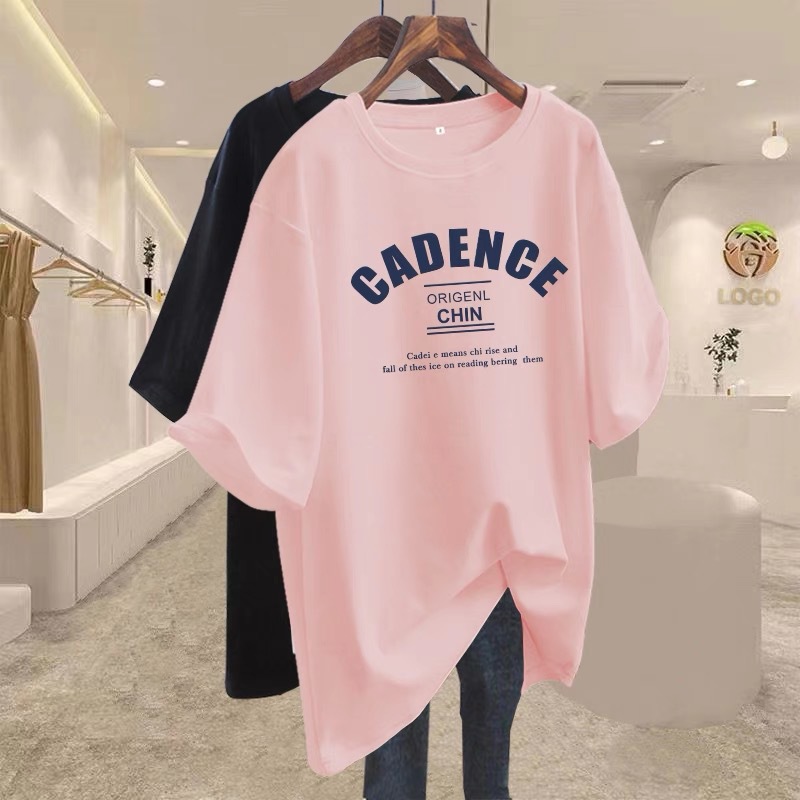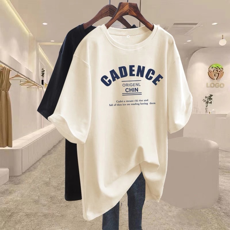 여성을위한 살구 느슨한 순수 코튼 중간 길이 틈새 반팔 티셔츠 2025 봄, 여름 새로운 유럽 제품 대형 버전 탑 인 트렌드스토어 가기